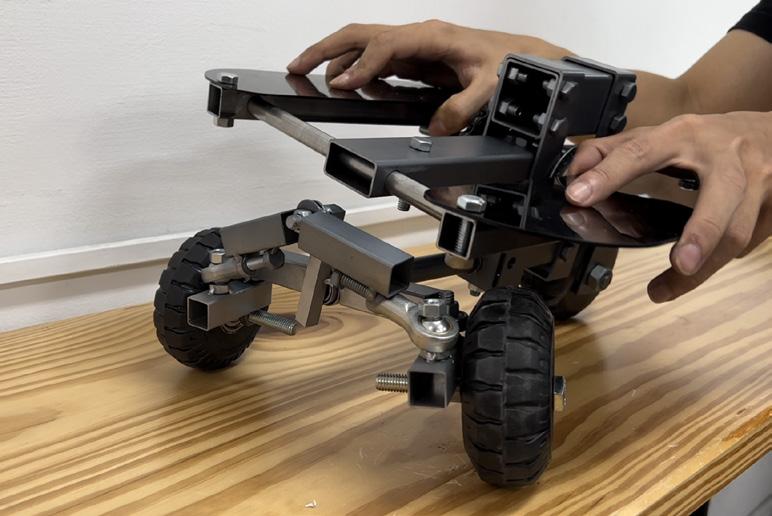 During the design process, multiple iterations of prototypes were created to develop the model. Additionally, to ensure that the prototype could support the weight of the user, we collaborated with manufacturers and metal welders to develop the necessary mechanisms.