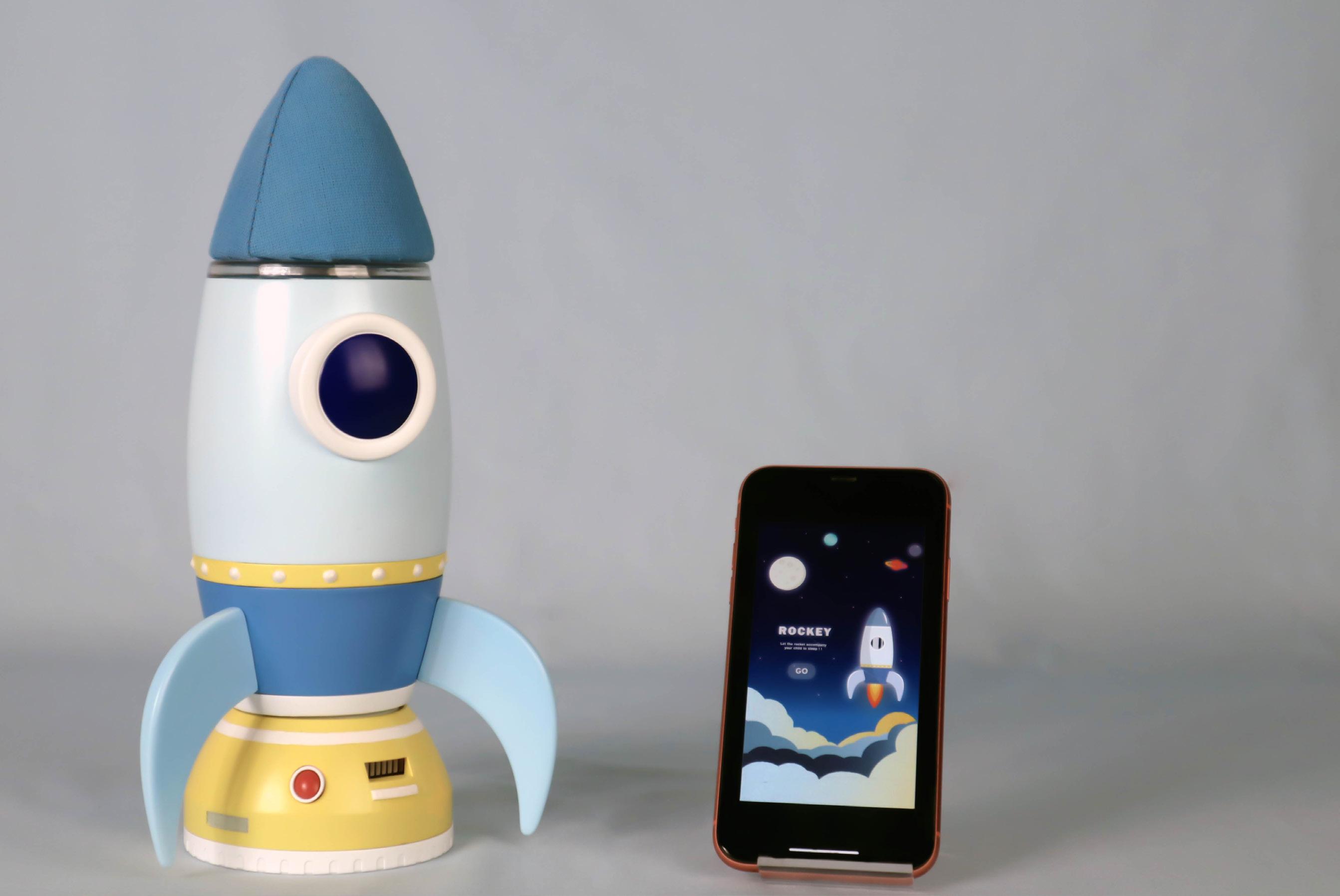 ROCKEY helps children learn independence and sleep better. Connected to a parent's device, it converts ambient sound into soothing light and sound to assist with falling asleep.