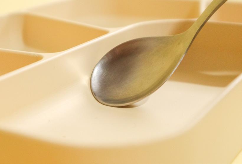 The radian of the edge of the box corresponds with the radian of the spoon, to make scoop the food more convenient.