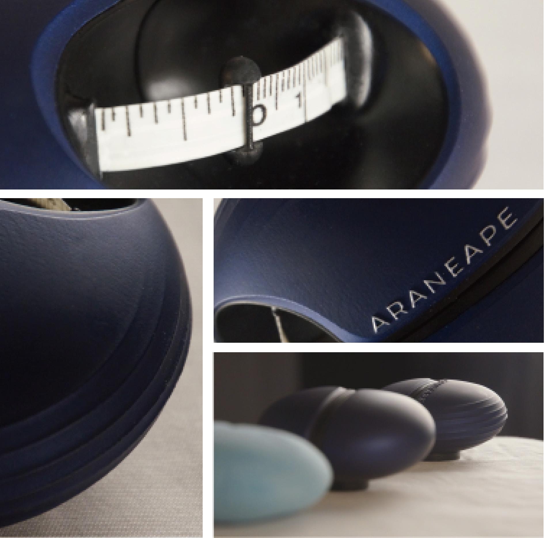 Araneape is a tape measure for tailors that reduces the danger of injury when finishing its use, as people are often afraid of being hurt by the tape flying back to them.