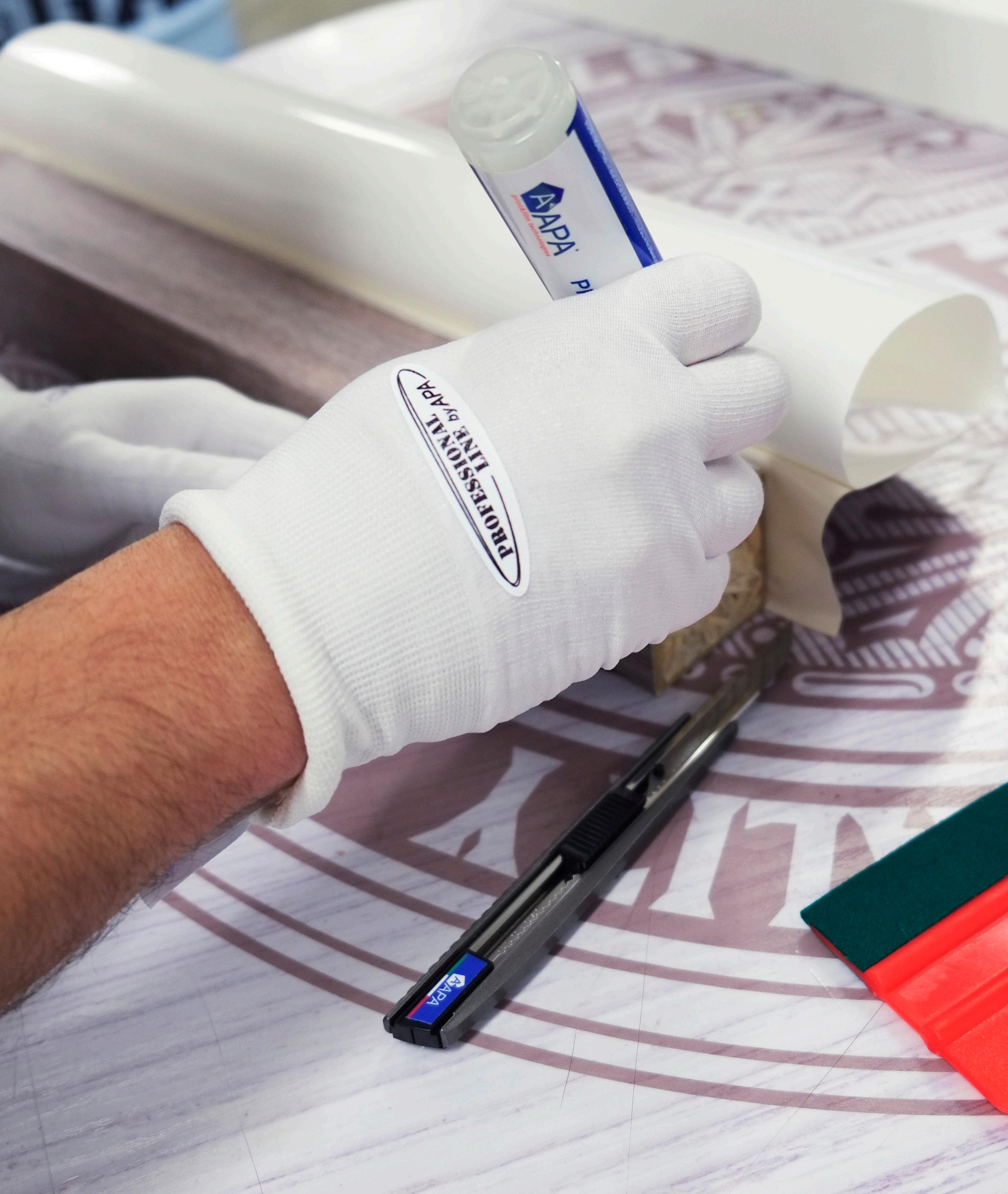 Pour toutes les surfaces, il y a APA: planes, irrégulières, courbées, poreuses, transparentes… APA propose le film pour plotter de découpe adapté pour décorer tout type de surface. Films coulés de qualité supérieure et films calandrés, amovibles, semi-permanents, permanents et à très haute adhérence afin de répondre à tous les besoins en matière de décoration. Permettant une découpe facile et un détourage rapide, la plupart des films sont dotés de la technologie Air-Free afin de faciliter l’application et d’empêcher la formation de bulles.