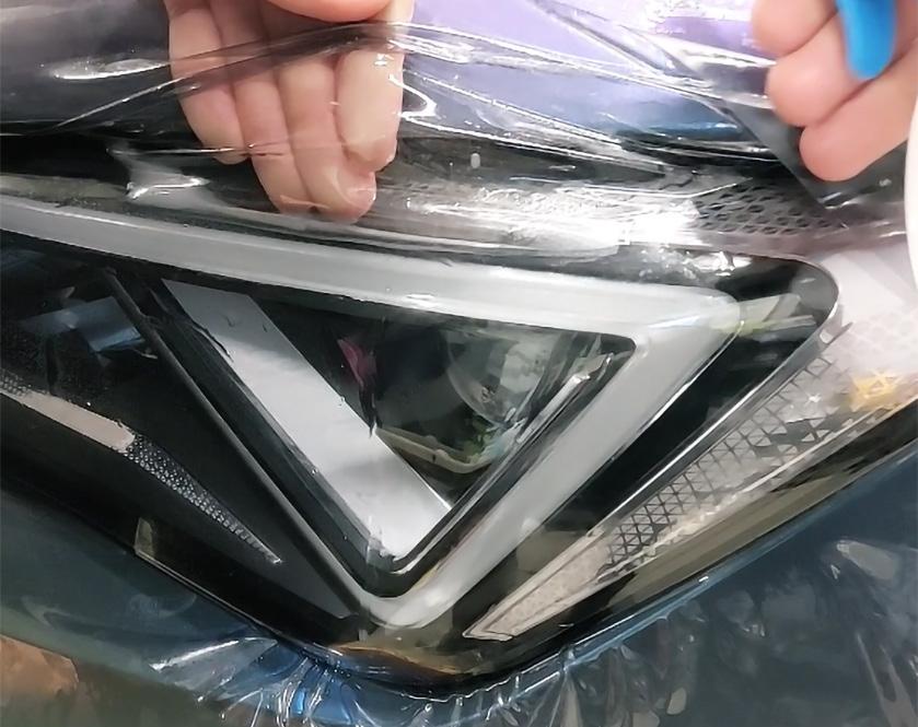 Raclette pour la pose de film solairesur les véhicules avec les vitres fixés