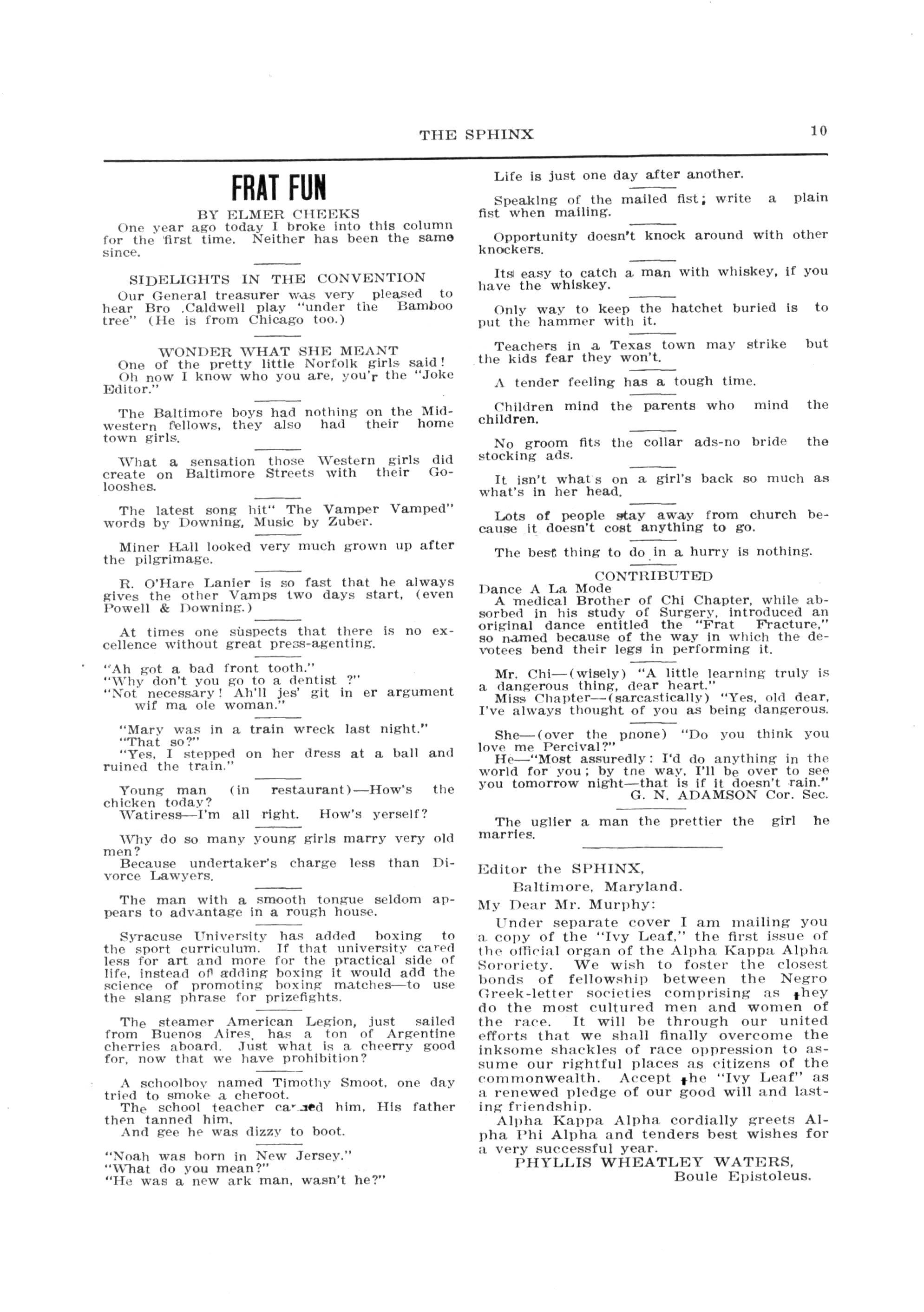 "Frat Fun"—Elmer Cheeks, 10912 Quincy Heights, Cleveland, O