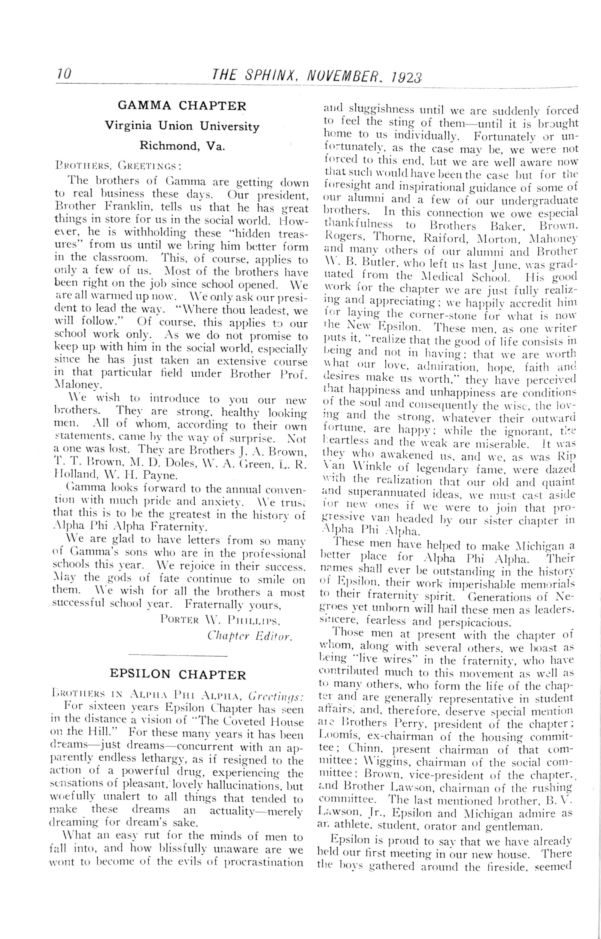 CorrespondingSecretary,WEHenry,VirginiaUnionUniversity DELTACHAPTER,Montreal,Canada(inactive) EPSILONCHAPTER,UniversityofMichigan,AnnArbor,-Mich. President,LBPerry