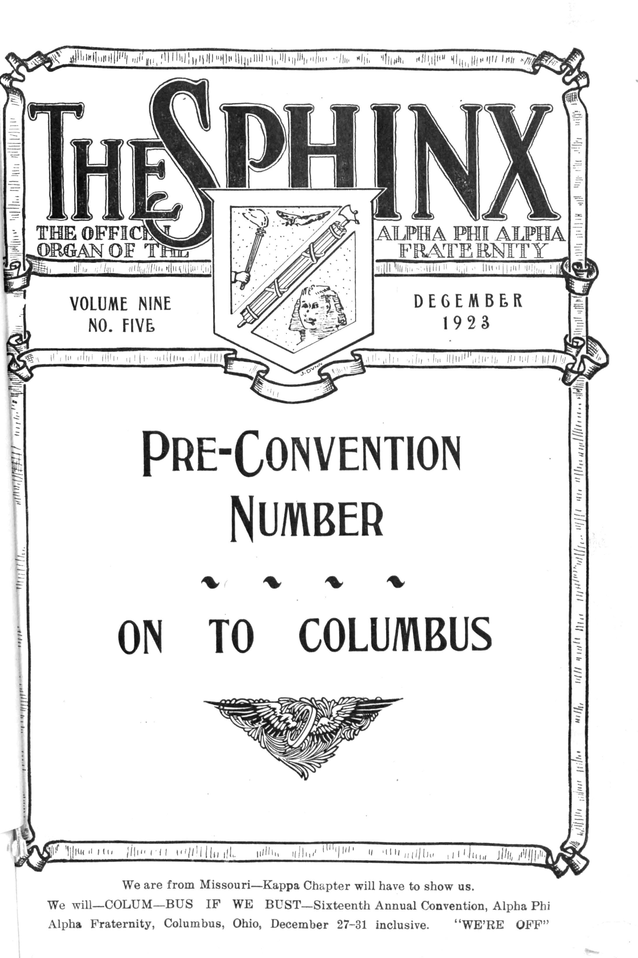 The thoughts of every member of our beloved Fraternity should be focused on the Convention in Columbus. From all indications,itwillbethebiggestinourannals,bringingtogethernotonlythelargestgroupof Fraternity men, but also the largest numbers of visitors. From far and near, incollegiate as weHassocialcircles,theecho"Onto Columbus" resounds in unmistakable clearness proportion. Agroupthathasgained enviable who remain away will bethe poorer in their experiences for sodoing
