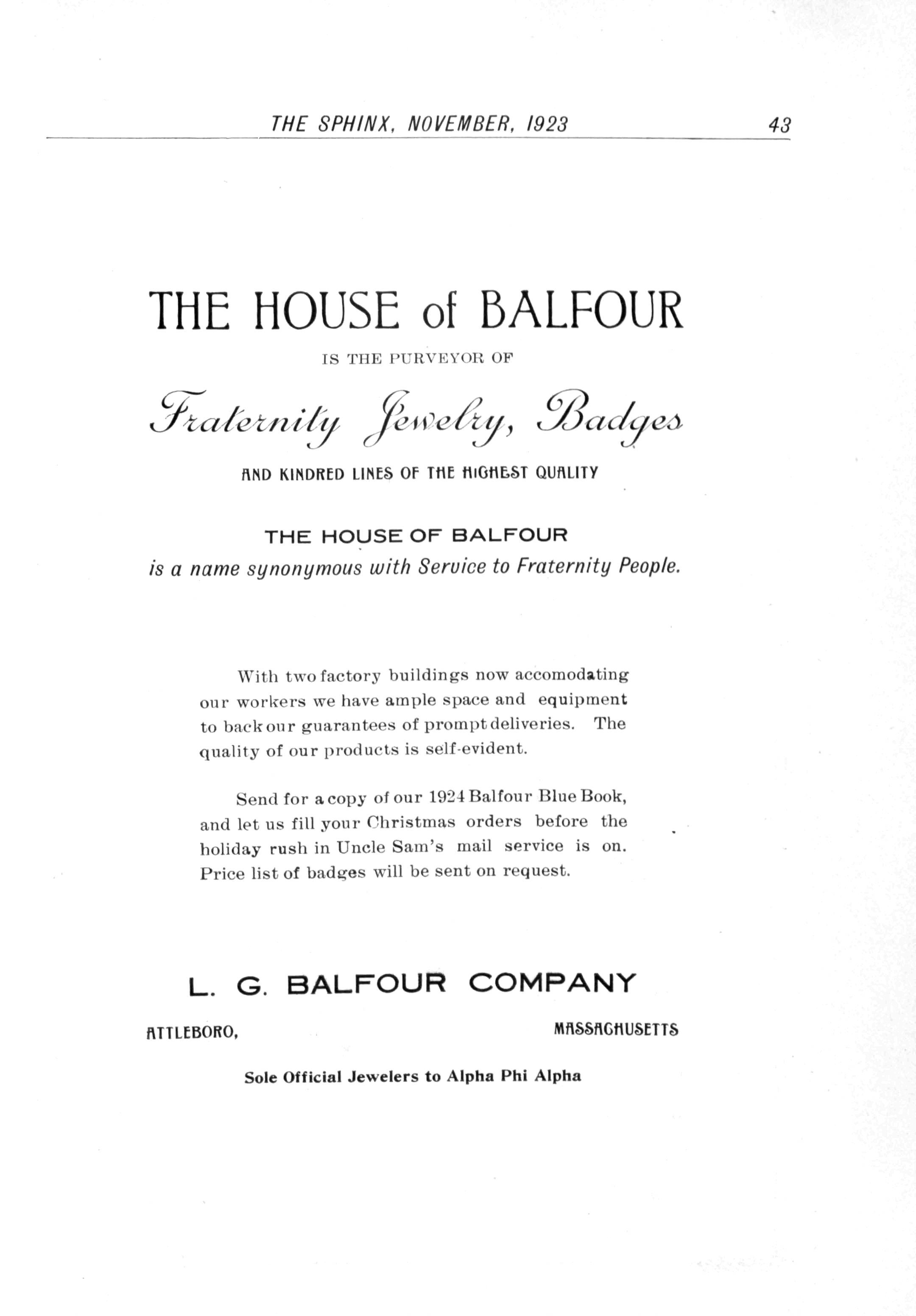 Send for a copy of our 1924 Balfour Blue Book, and let us fill your Christmas orders before the holiday rush in Uncle Sam's mail service is on Price list of badges will be sent on request