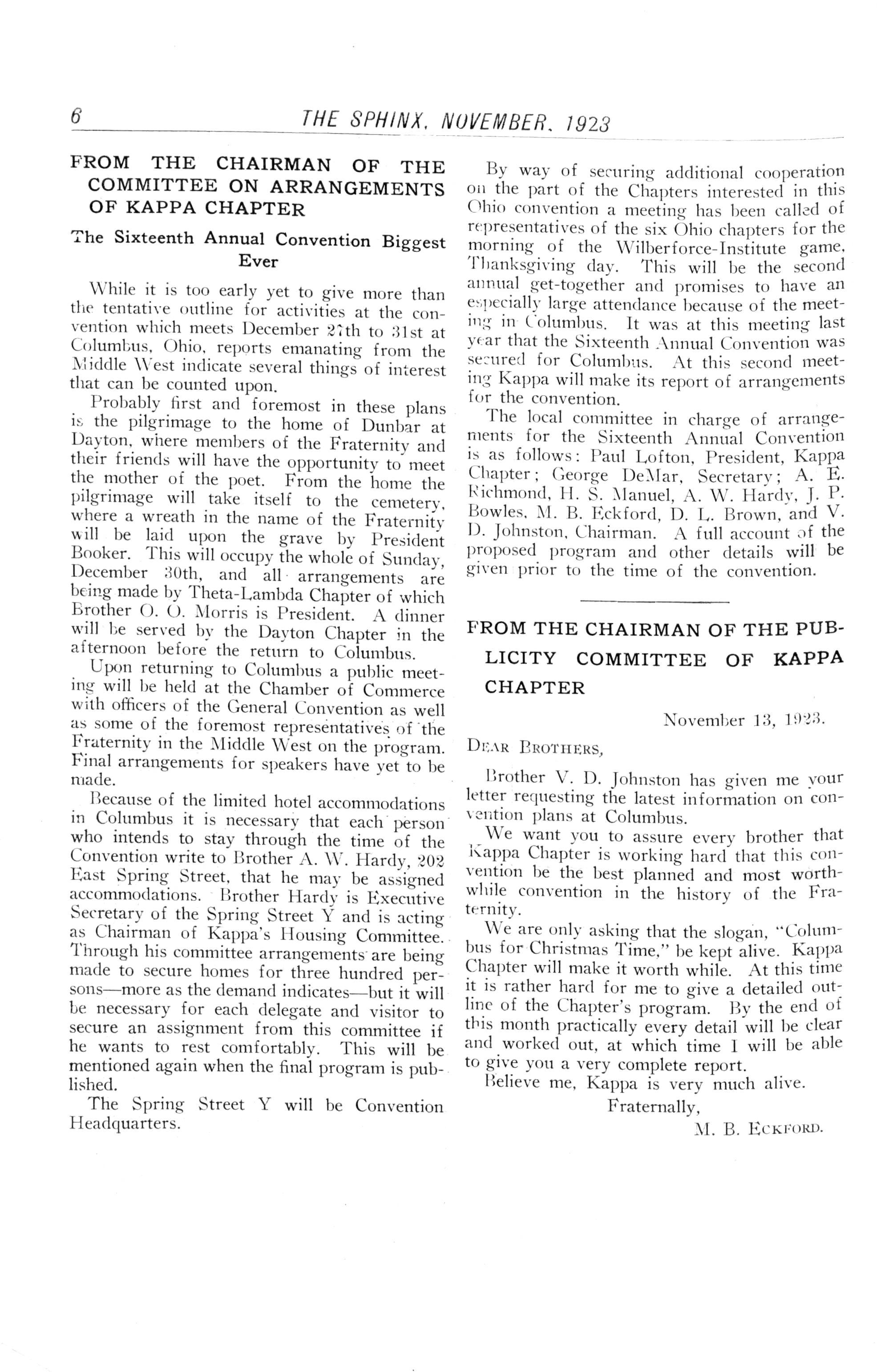 From Chairman of the Committee on Arrangements of Kappa Chapter (i rom the Chairman of the Publicity Committee of Kappa Chapter 6