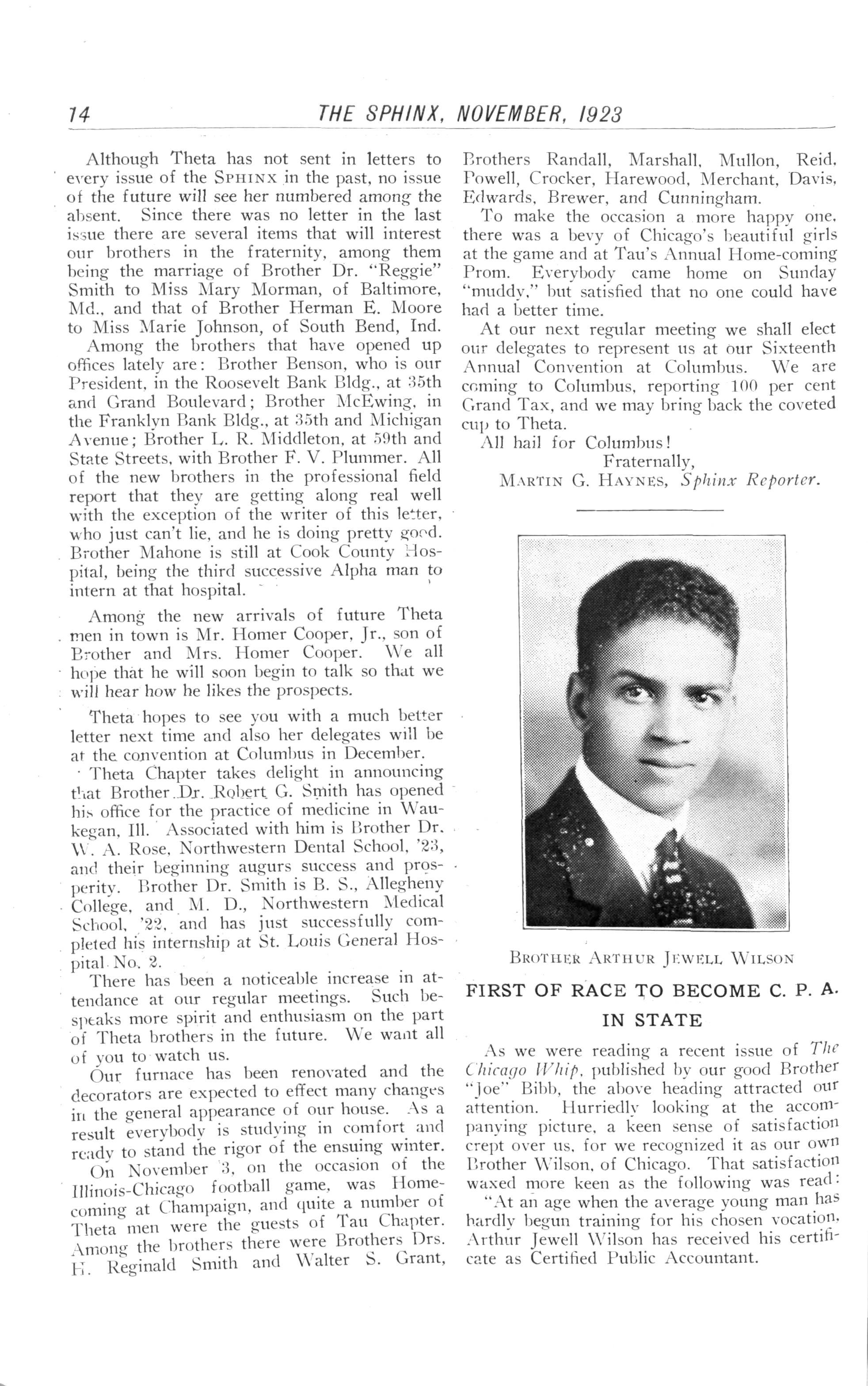 The newest arrival of future Theta men in Chicago is Master Homer Cooper Jr., son ot Brother and Mrs. Homer Cooper. BrotherCooper is glad to have an assistant general treasurer of Alpha Phi Alpha Alpha is glad of this, for we know that there will always be plenty of room for his Coopers.