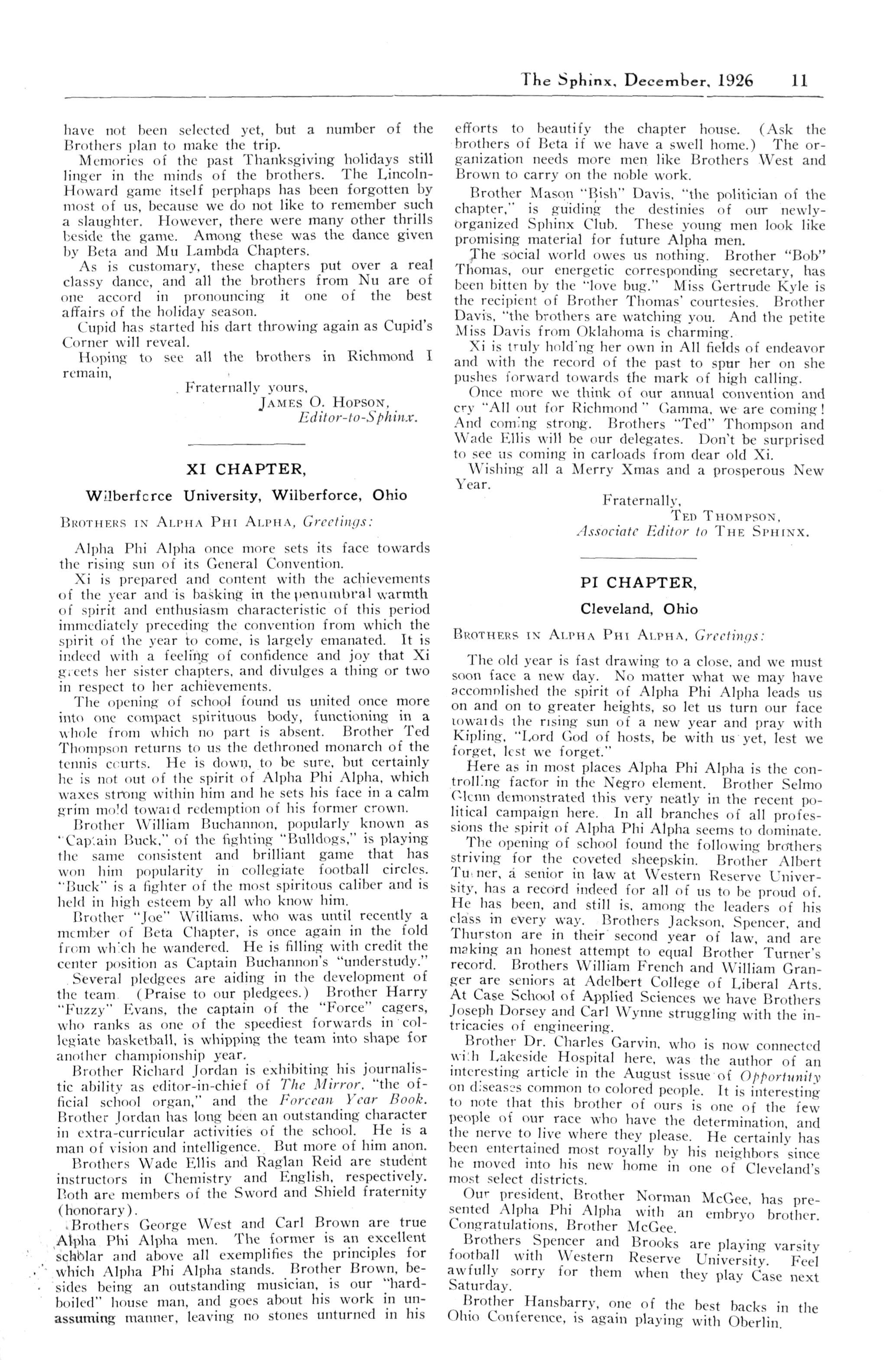 XI CHAPTER, Wilberforce University, Wilberforce Ohio