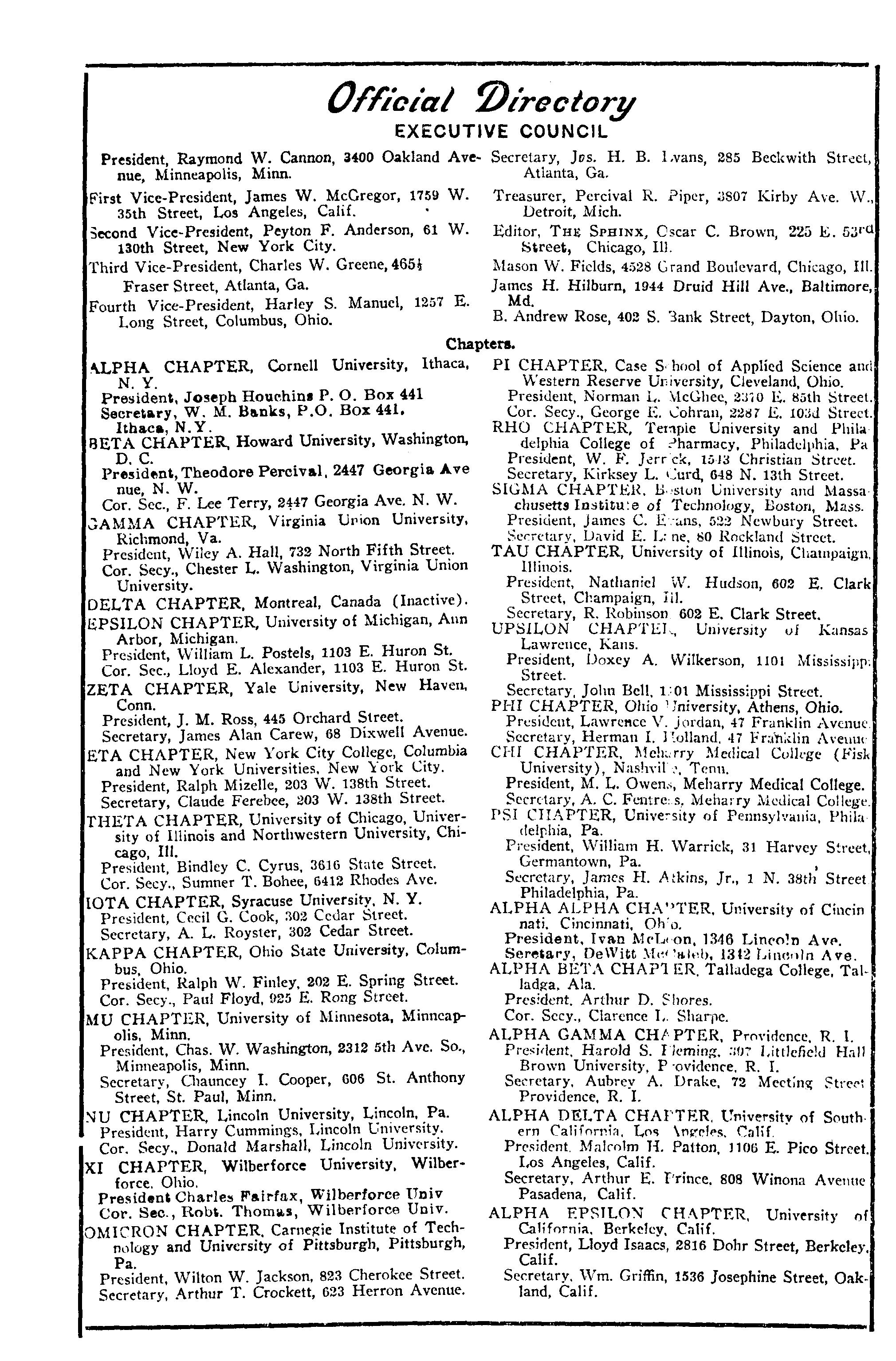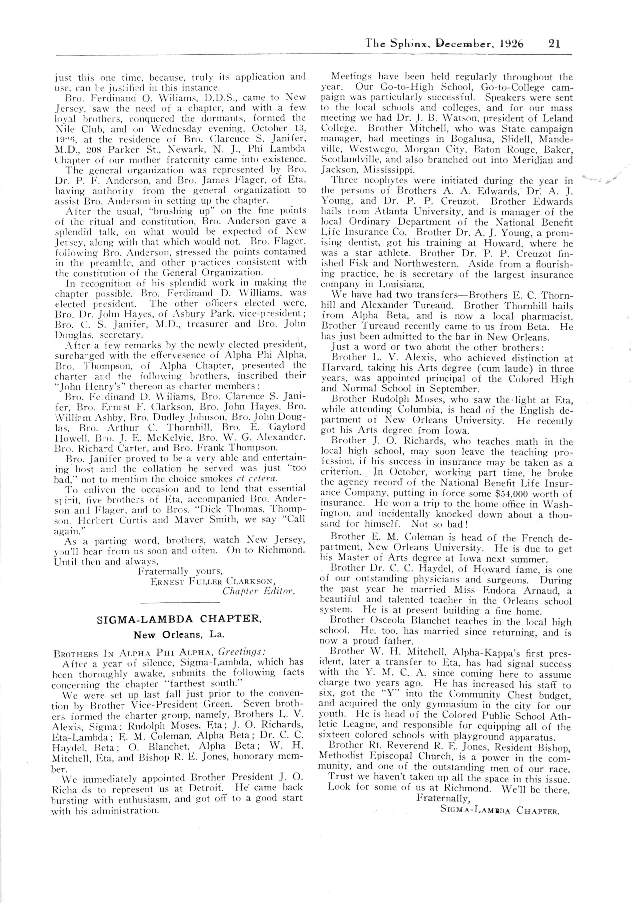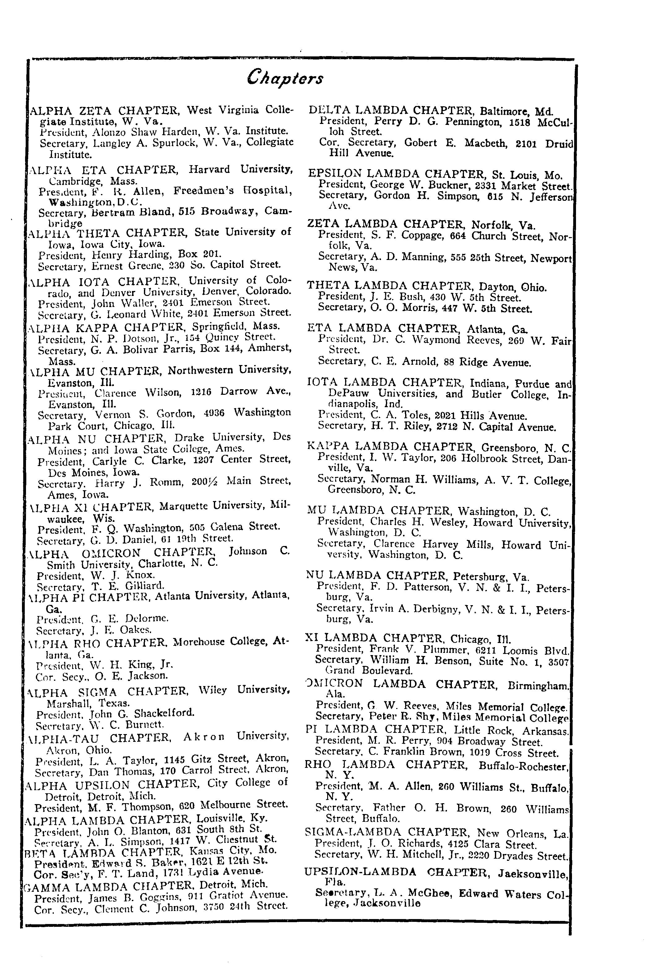 SIGMA-LAMBDA CHAPTER, New Orleans La President, J O Richards, 4125 Clara Street