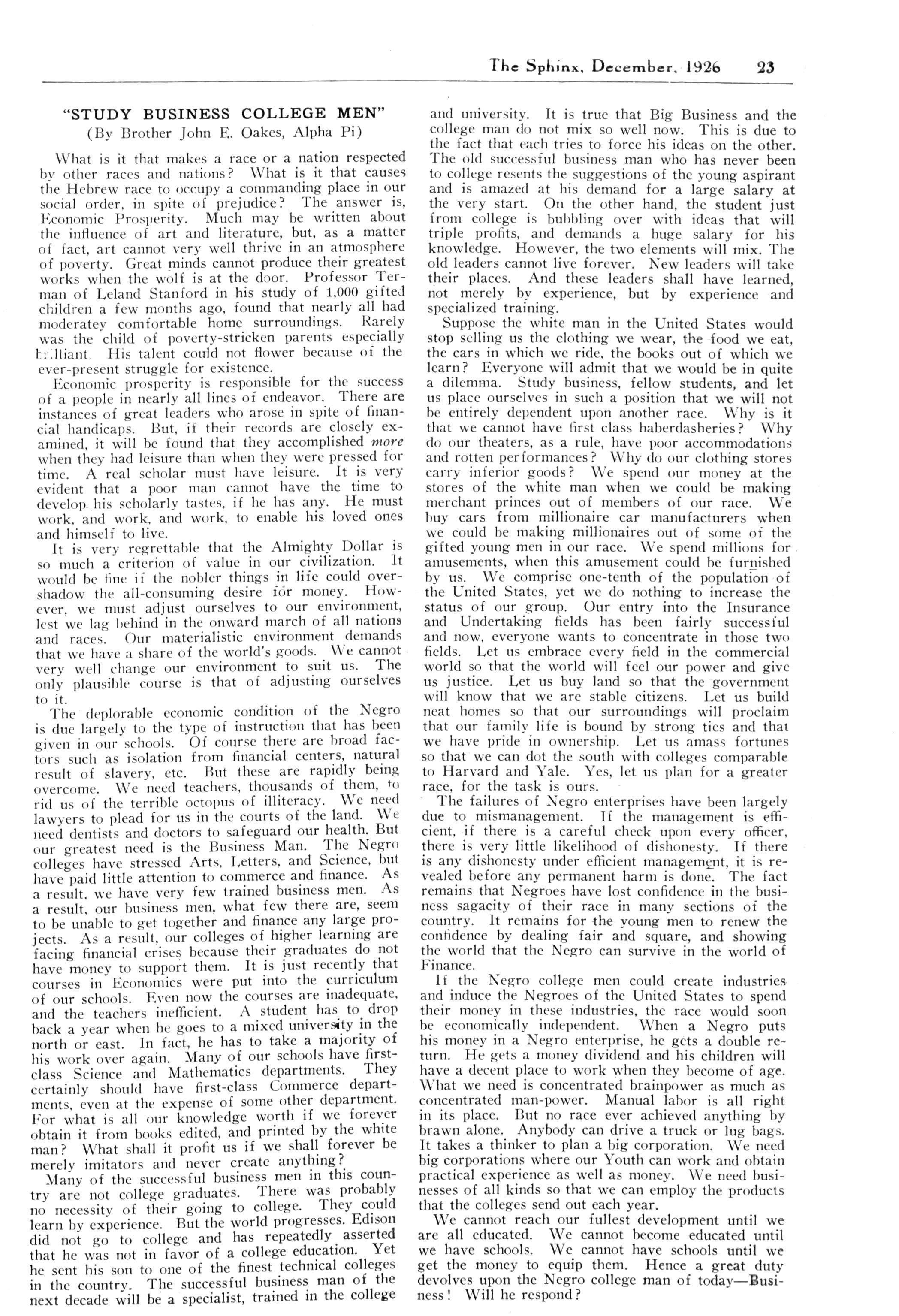 OSCAR C BROWN, 225 E 53rd Street, Chicago, 111 "Who Is WhoT" GEORGE B KELLY, 113th Street, Troy, N Y "Editorials"