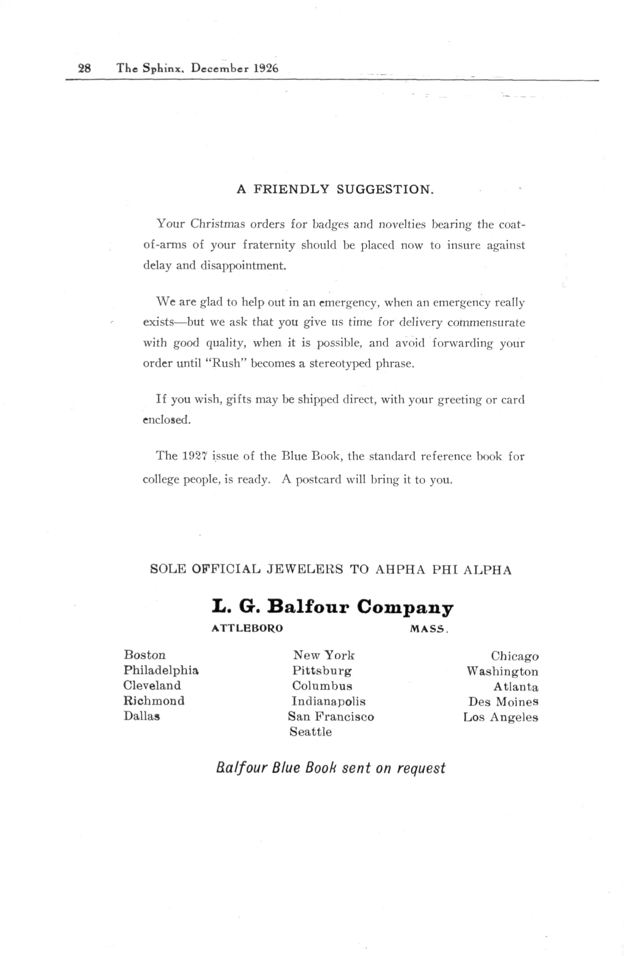L. G. Balfour Company ATTLEBORO MASS.