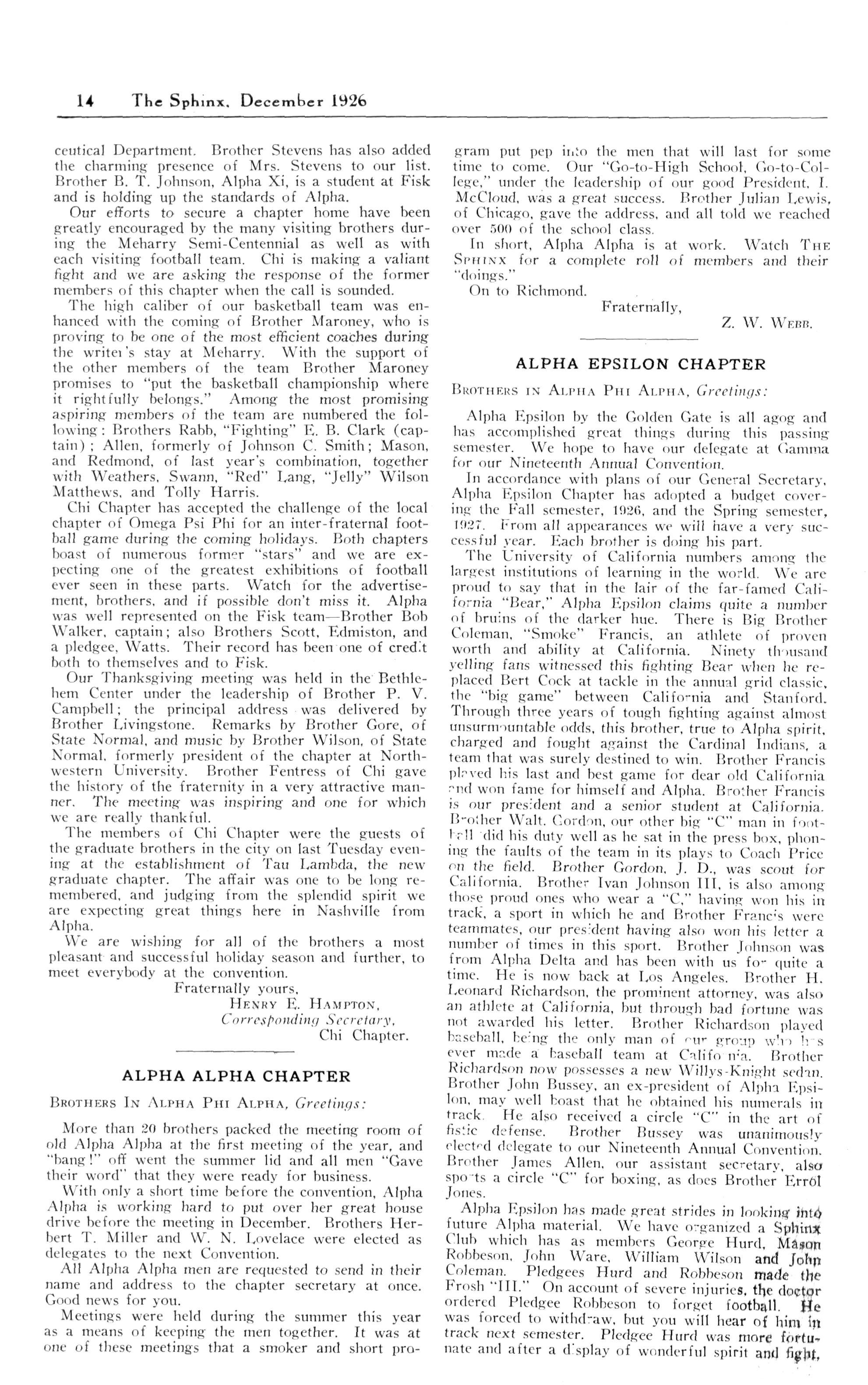 ALPHA EPSILON CHAPTER, University of California, Berkeley, Calif