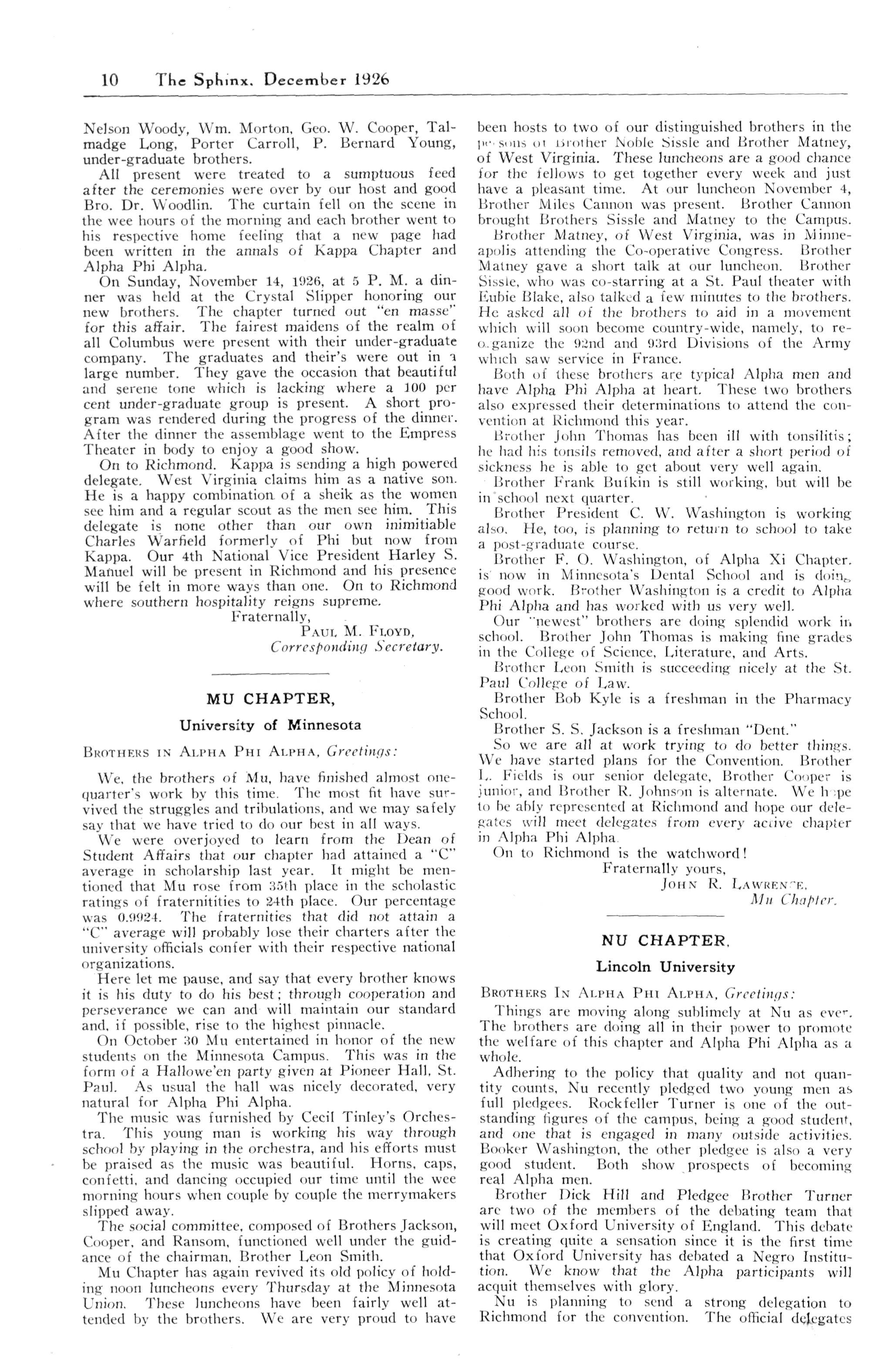 MU CHAPTER, University of Minnesota, Minneapolis Minn