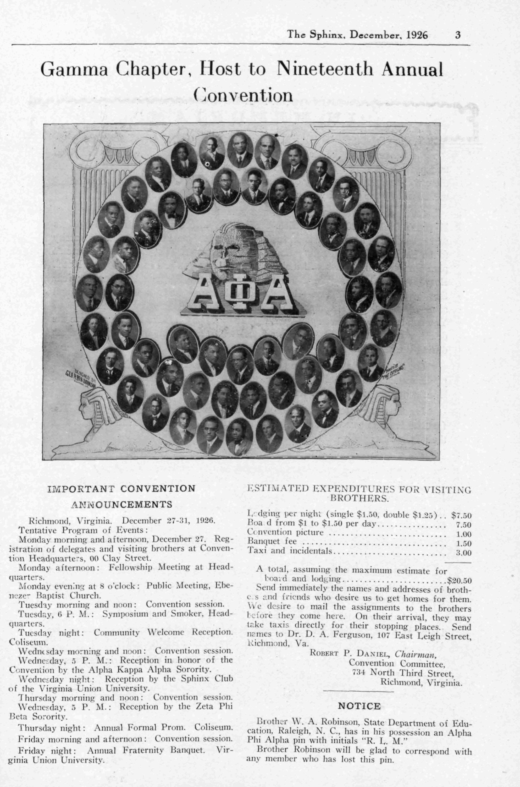 Richmond, Virginia December 87-31, 1926, Tentative Program "t" Events:
