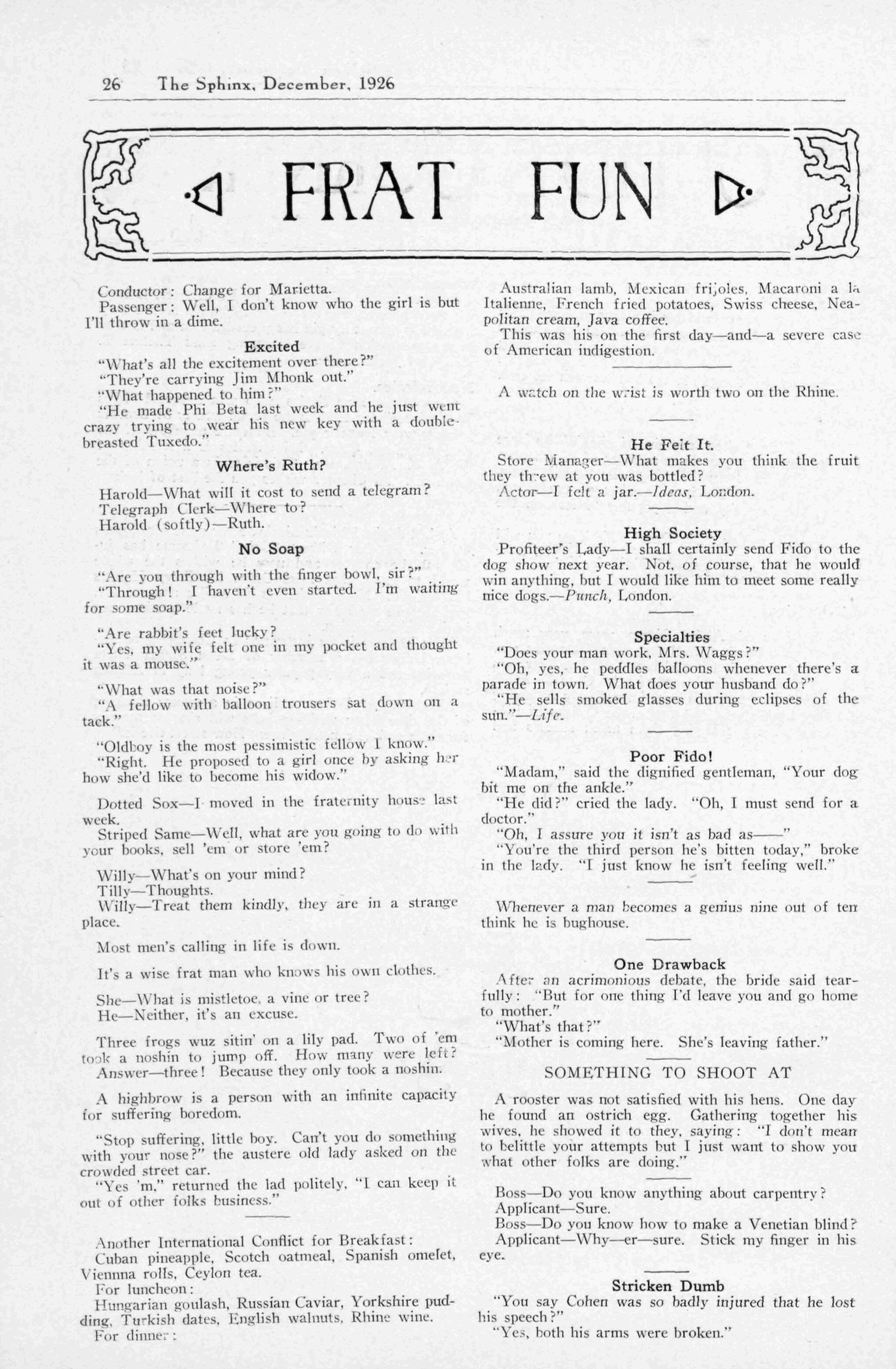 VICTOR R. DALY 715 Florida Ave., N. W., Washington, D.C. "Frat Fun"