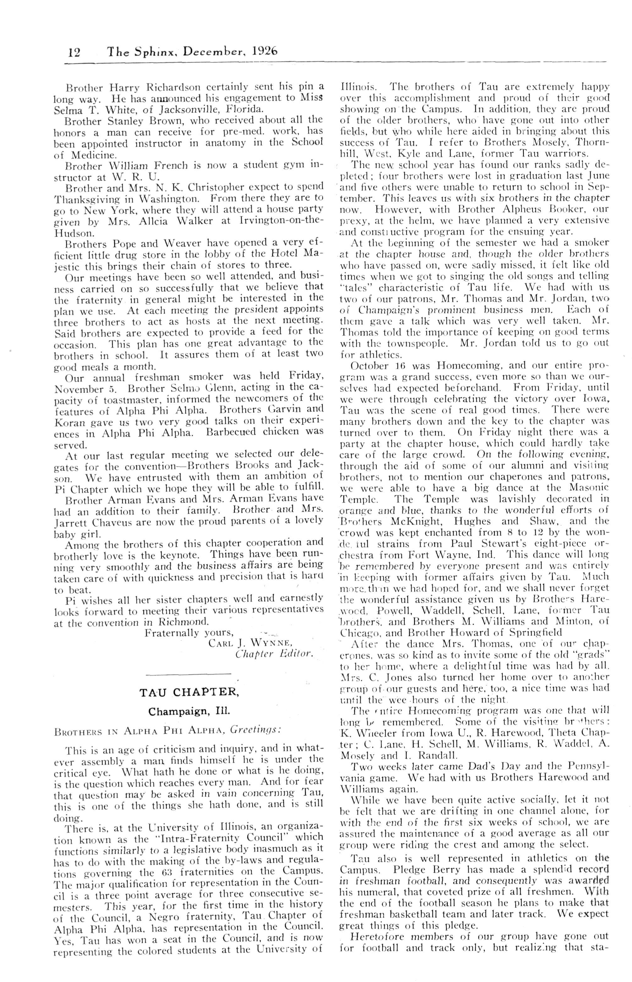 TAU CHAPTER, y of Illinois, Champaign Illinois