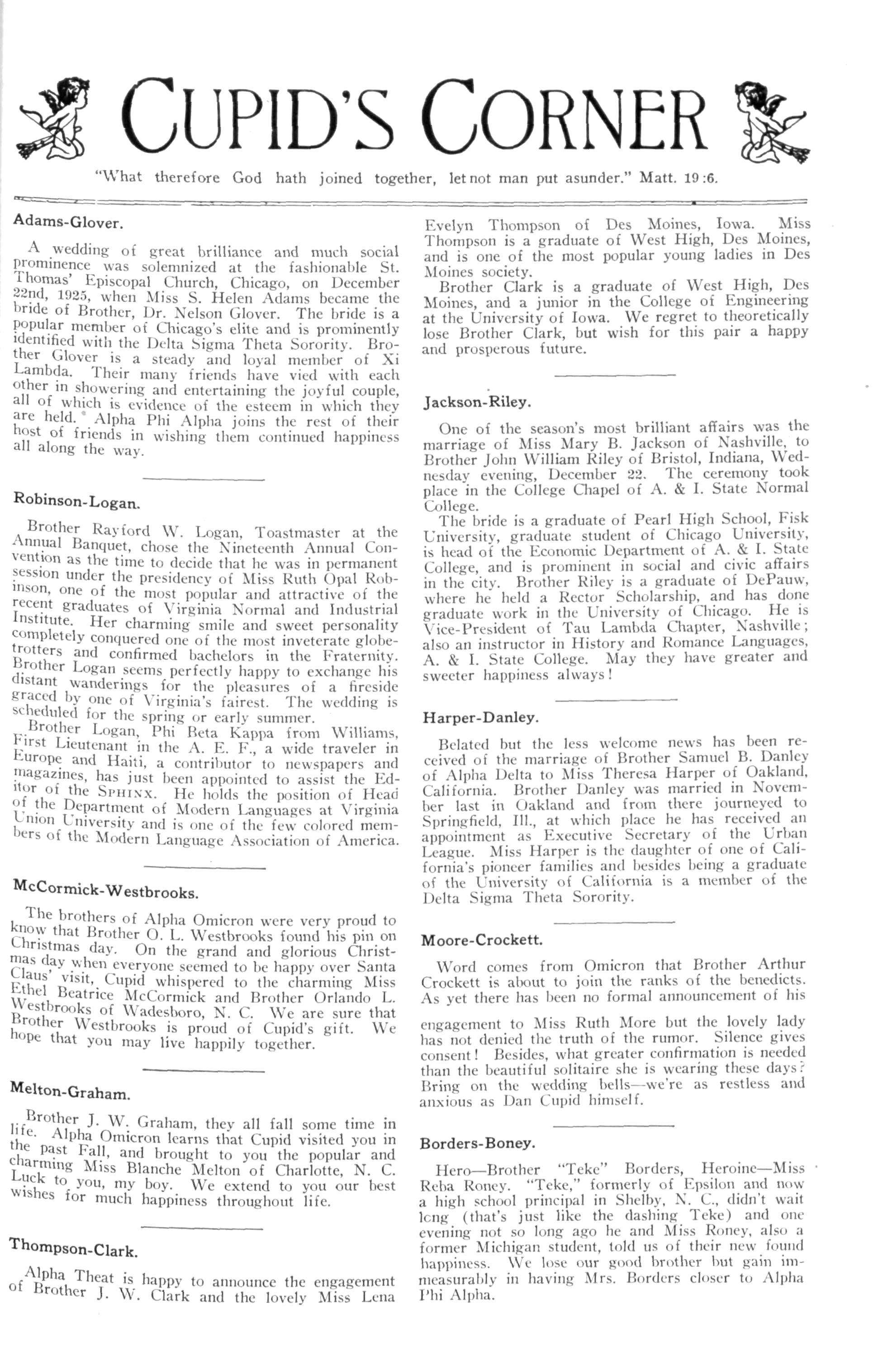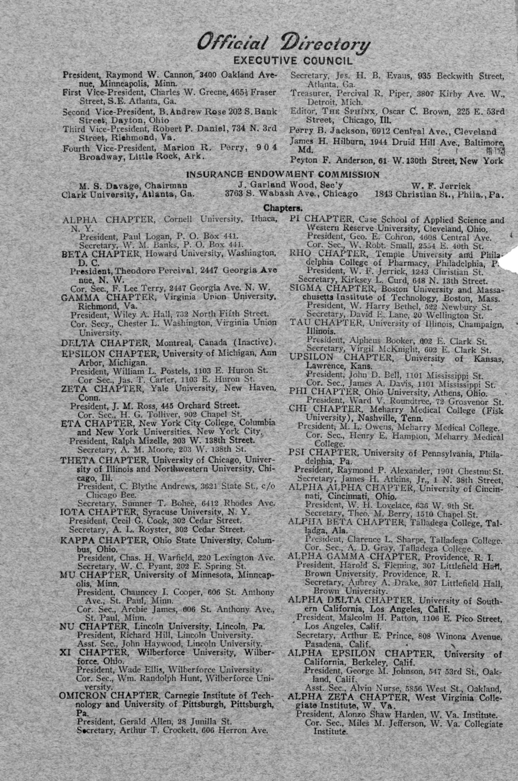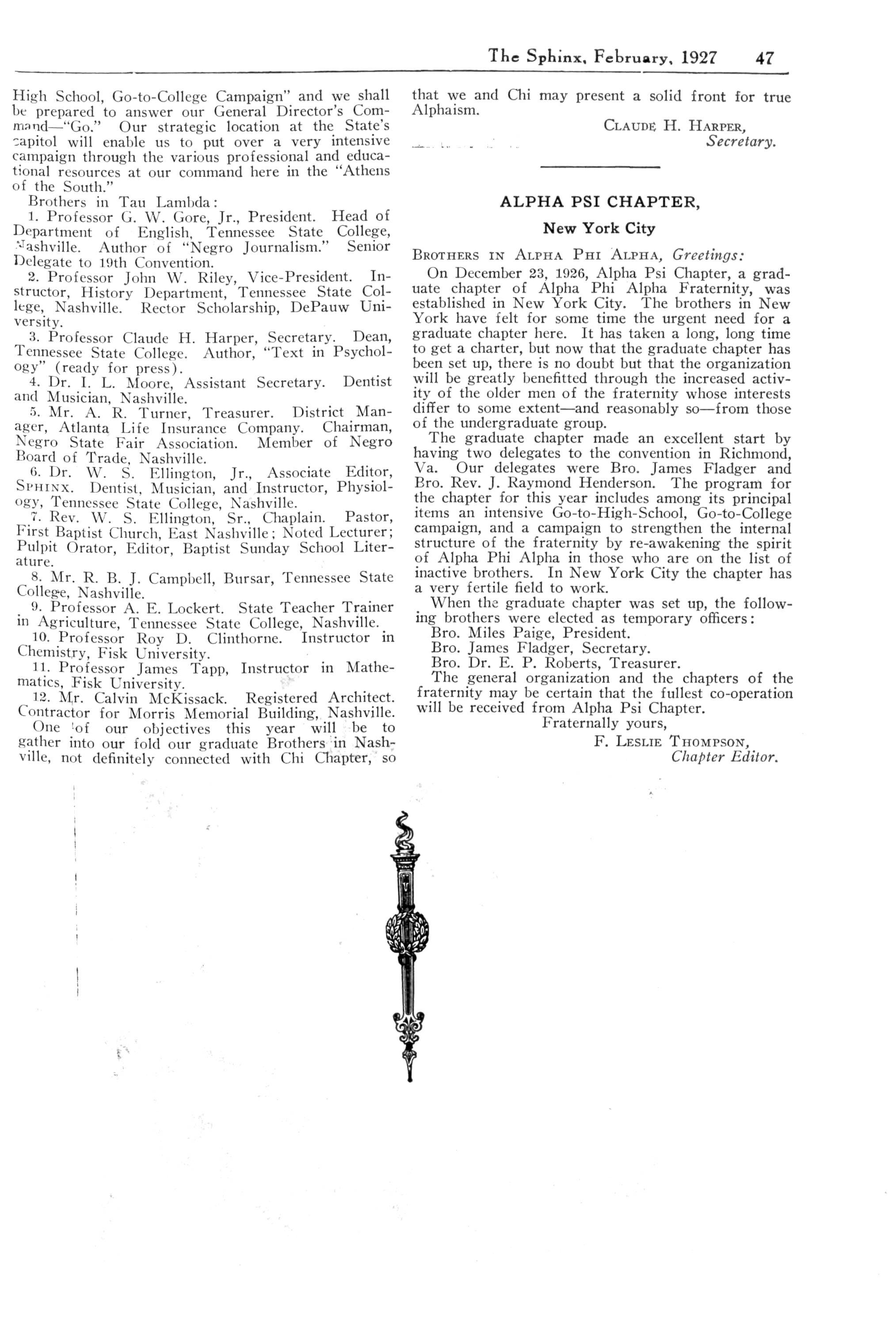 ALPHA GAMMA LAMBDA, New York City President, Myles A. Paige, 203 W. 138th St. Secretary, James E Fla<