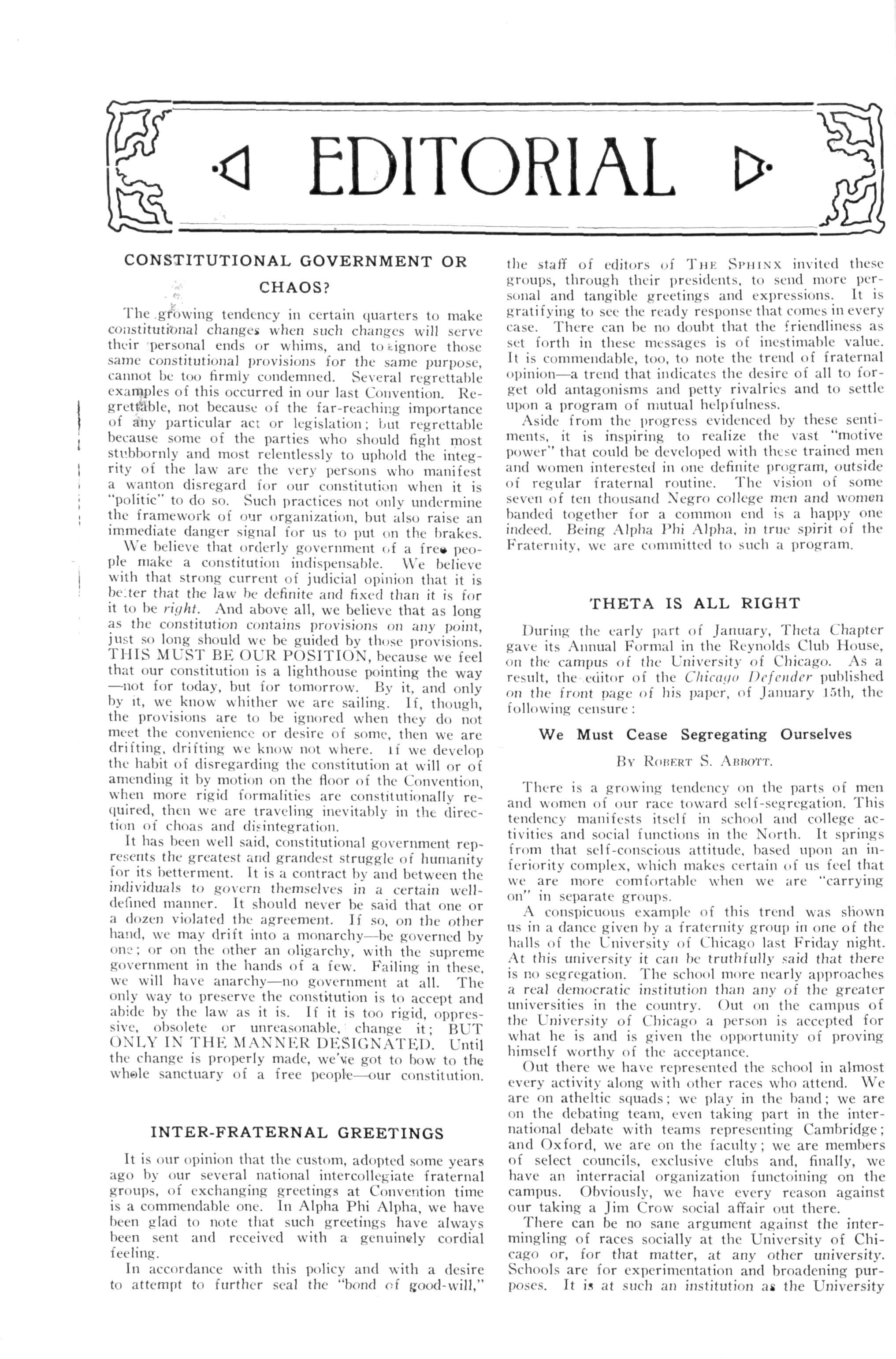 Editor, THIC SPHINX, Oscar C Brown, 225 E 53rd Street, Chicago, 111