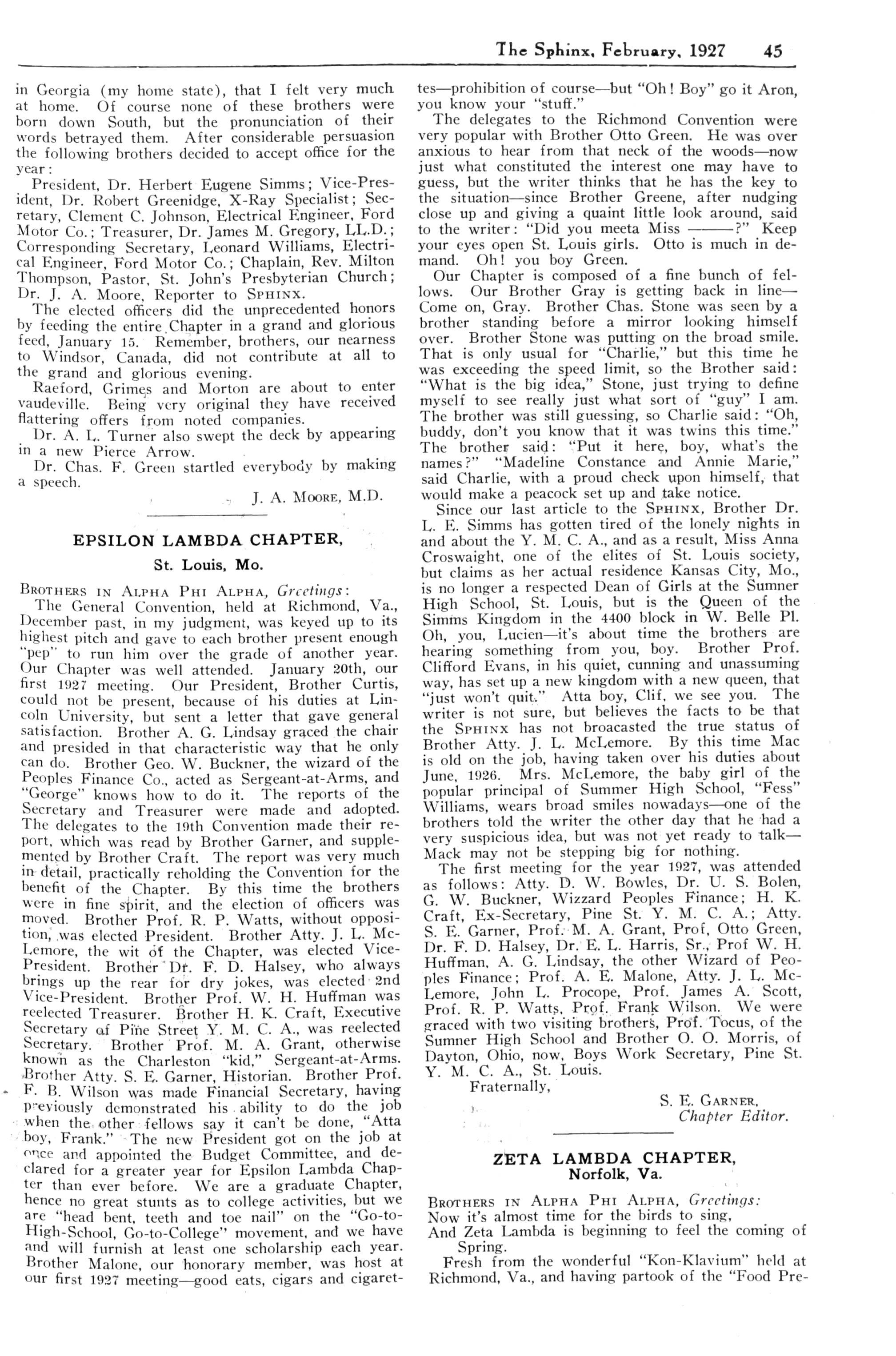 SIGMA-tAMBDA CHAPTER, New Orleans, La President, I O Richards, 4125 Clara Street Secretary, W H Mitchell, Jr., 2:?:20 Dryades Street