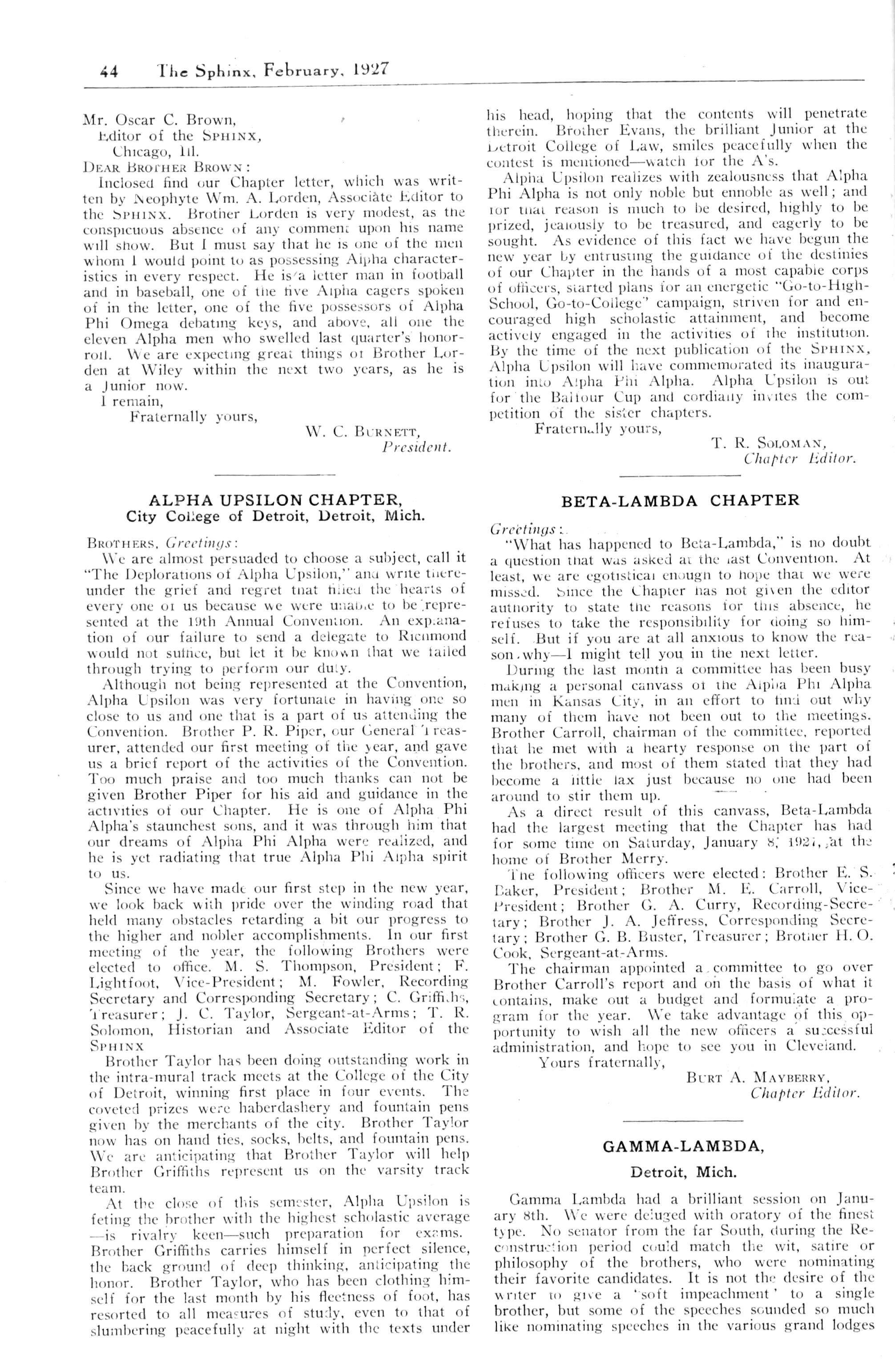 ALPHA UPSII.ON CHAPTER, City College of Detroit, Detroit, Mich