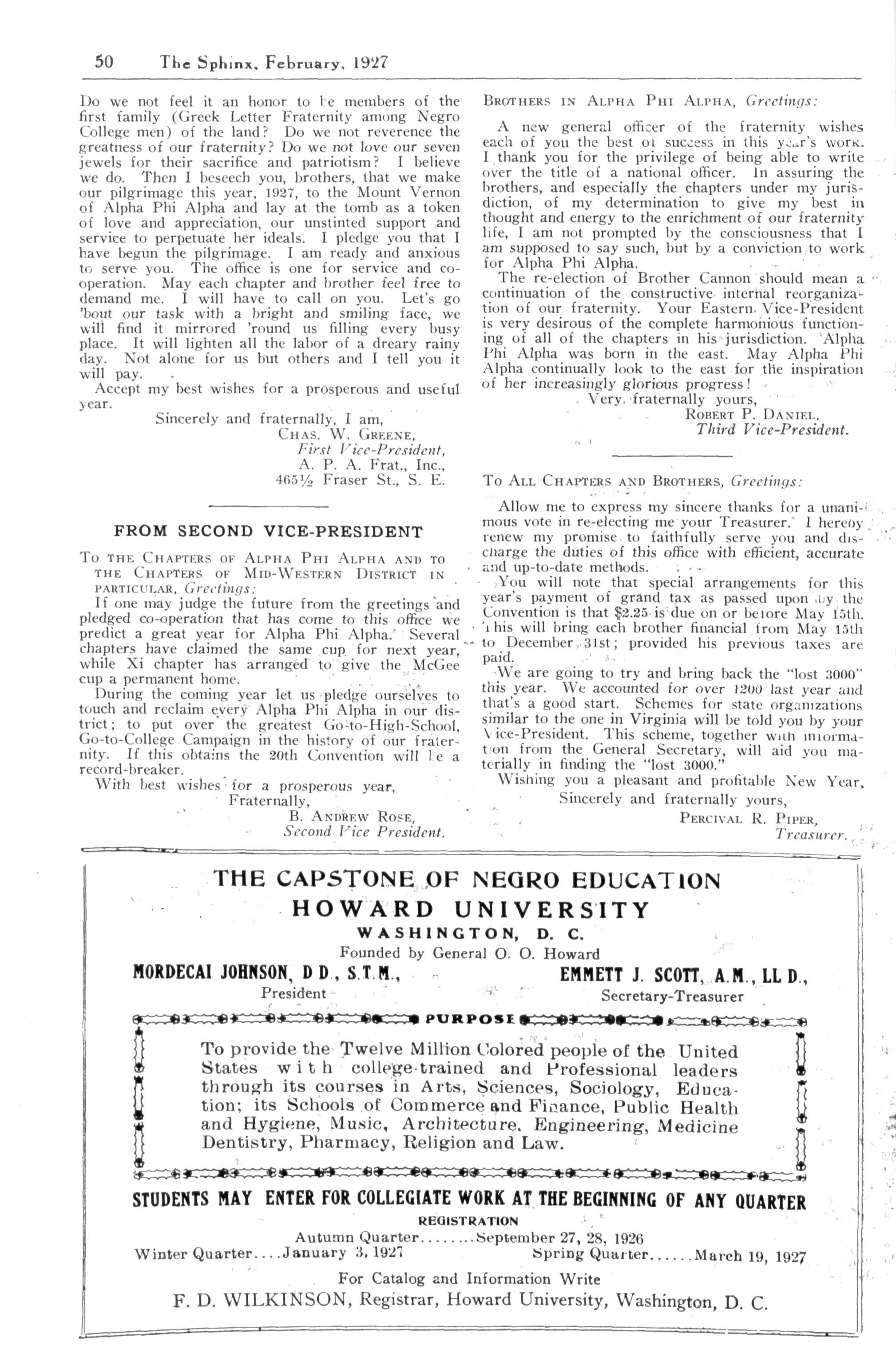 Secretary, Clarence Harvey Mills, Howard University, Washington, D C