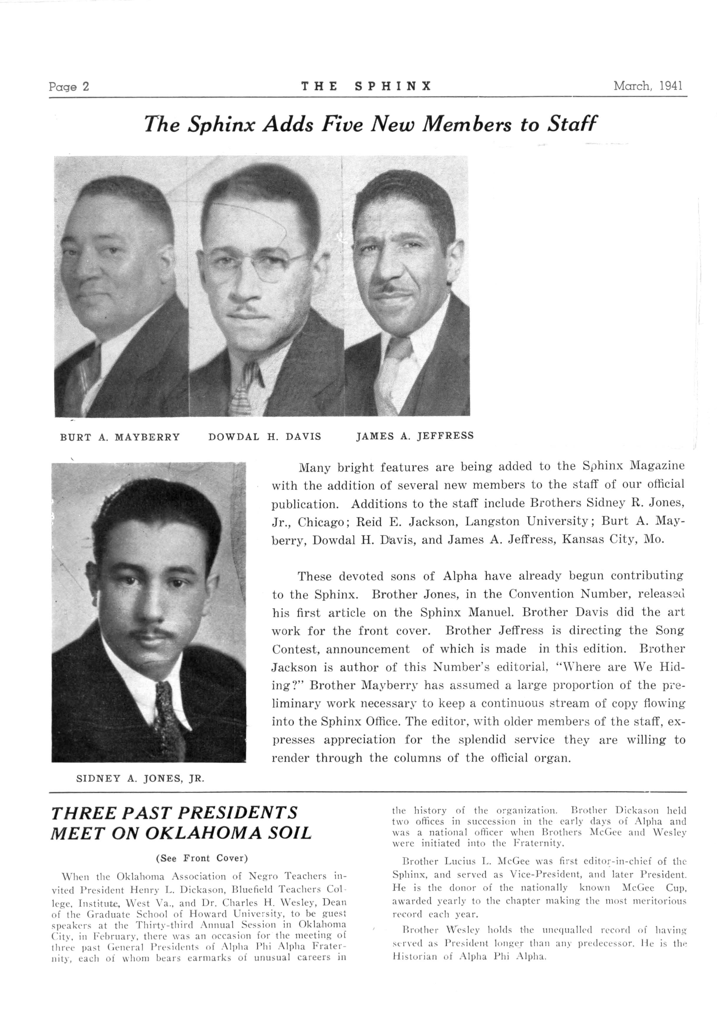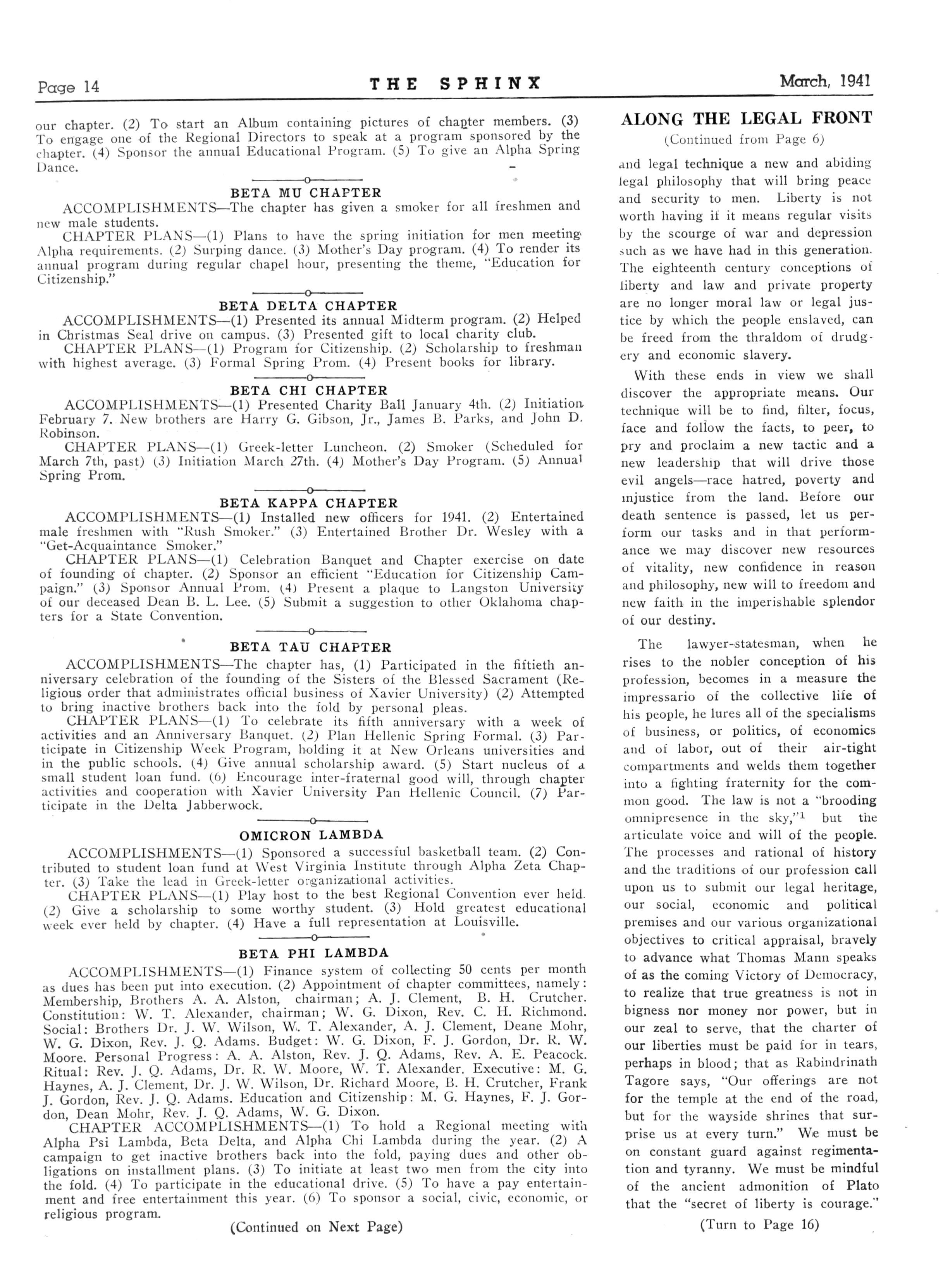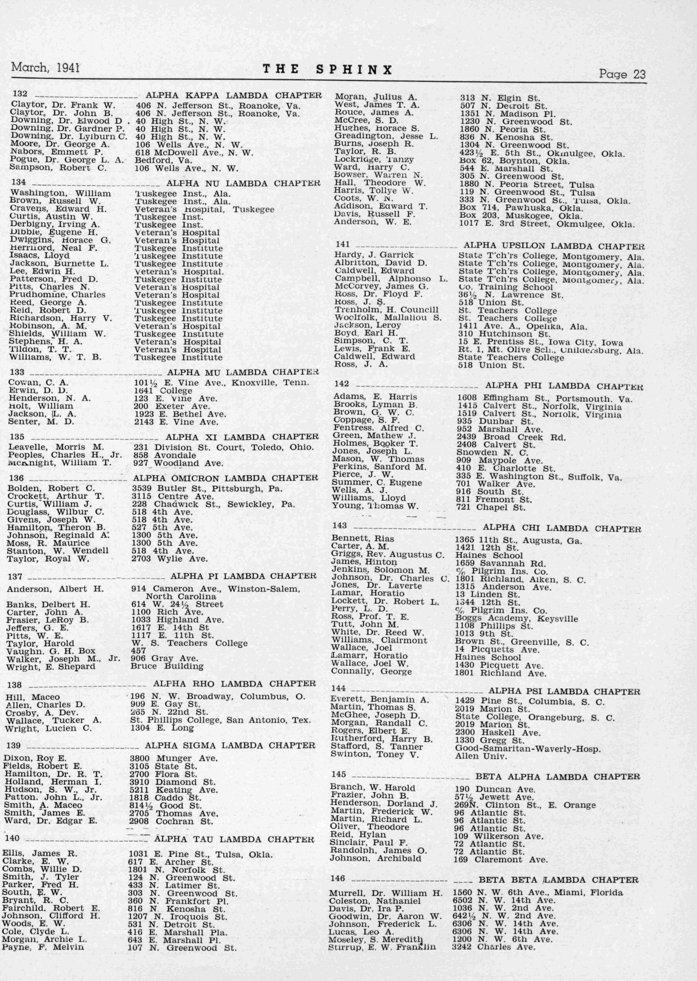 138 ALFHA RHO LAMBDA CHAPTER Hill, Maceo Allen, Charles D Crosby, A Dev Wallace, Tucker A Wright, Lucien C