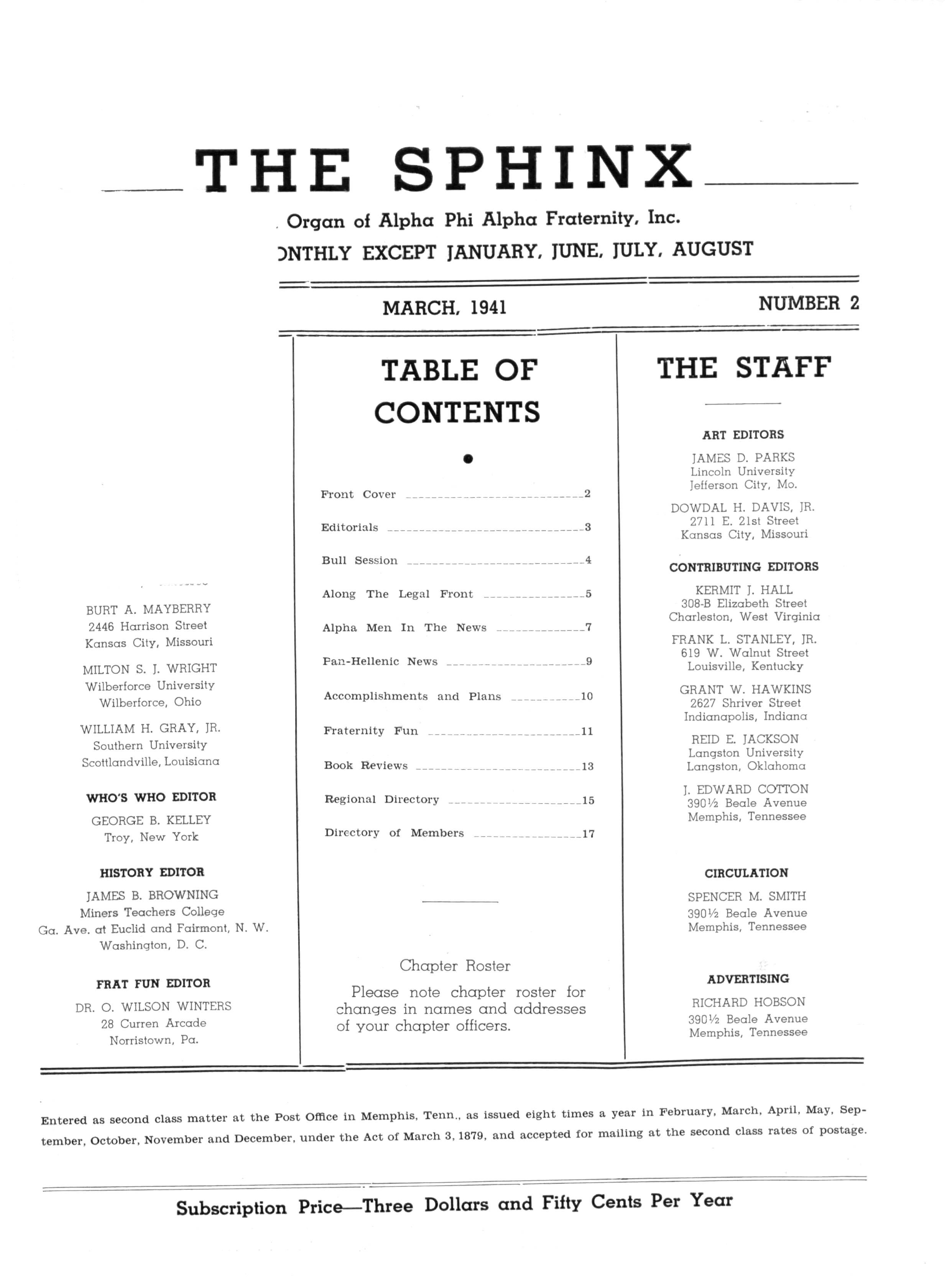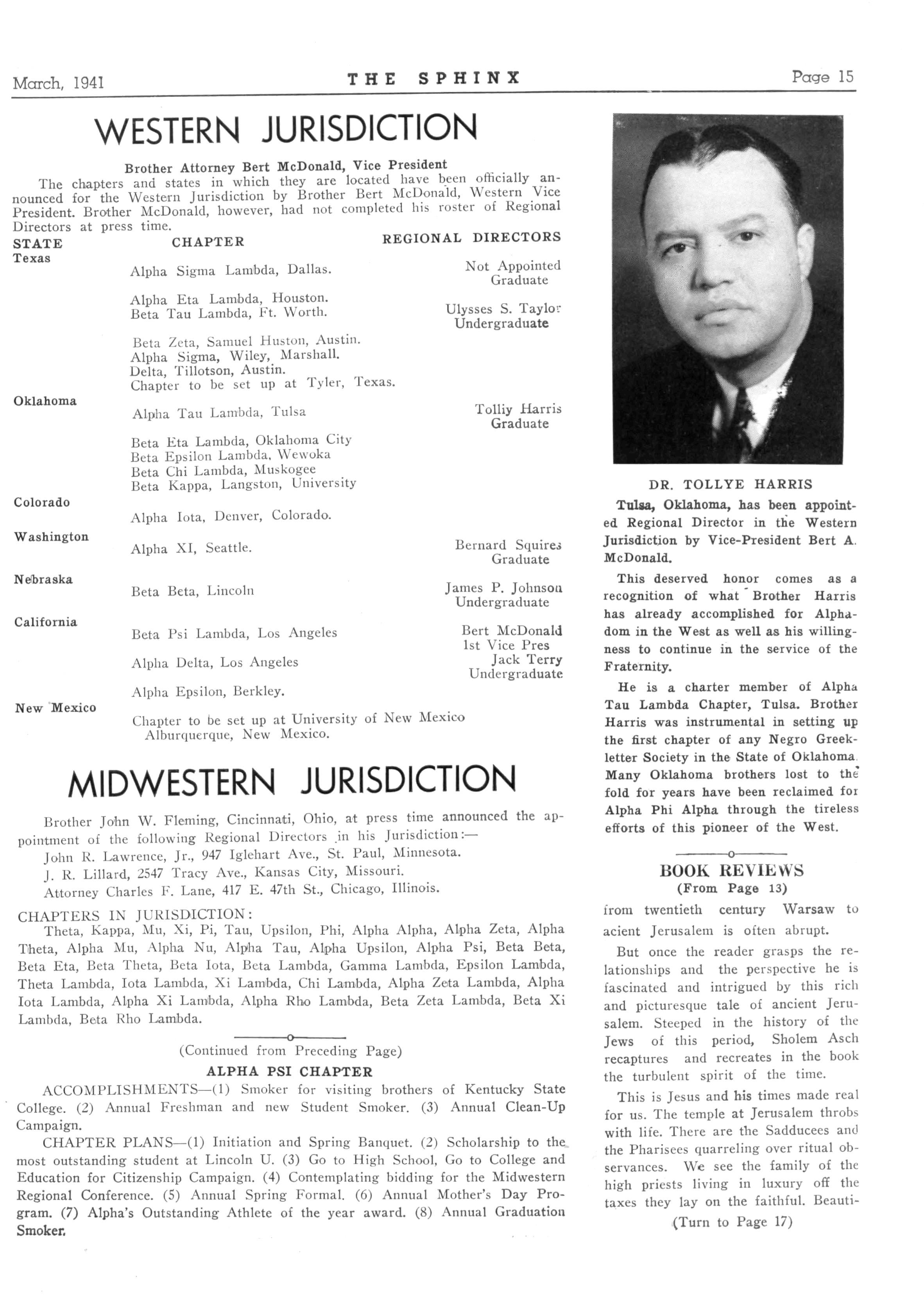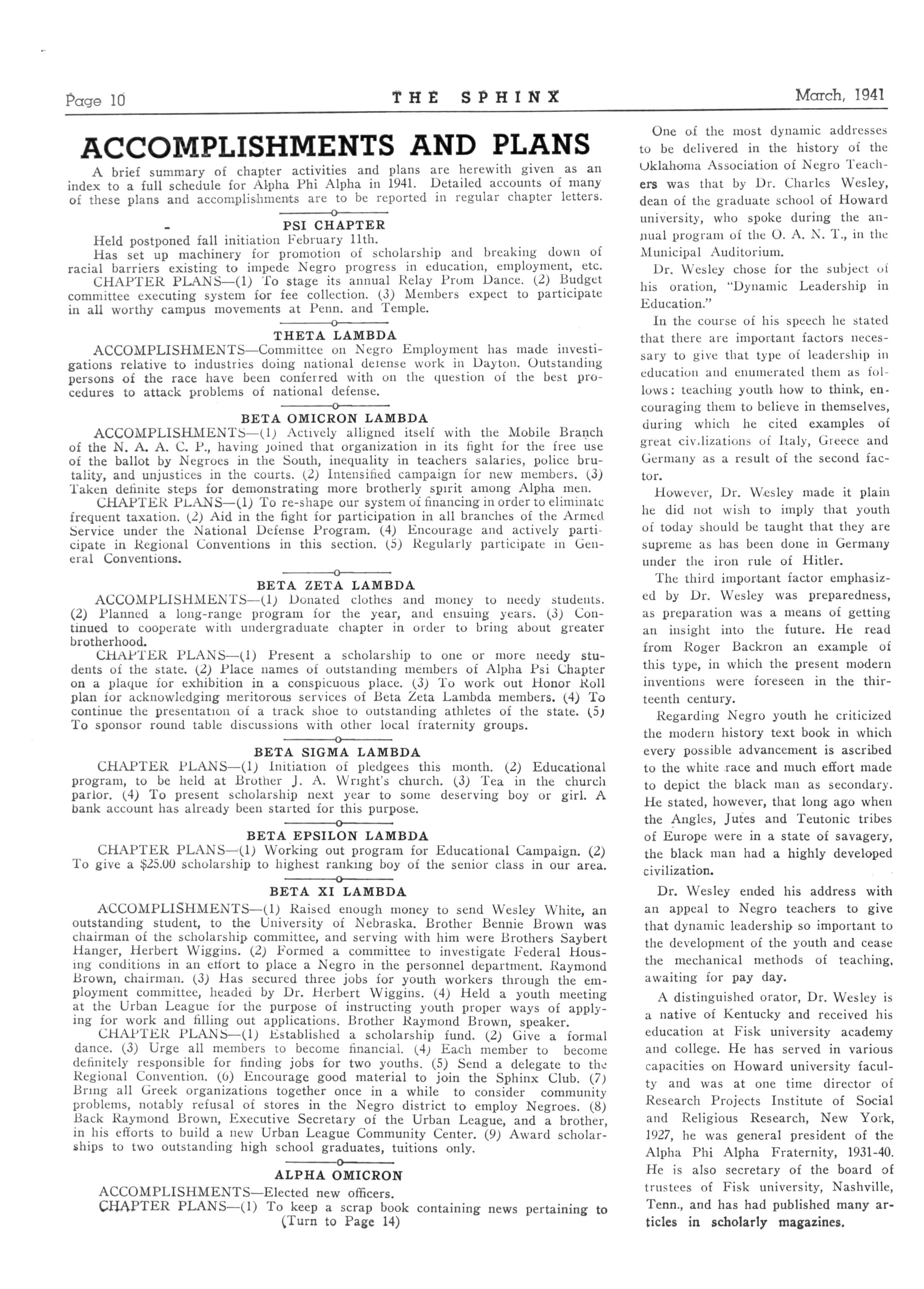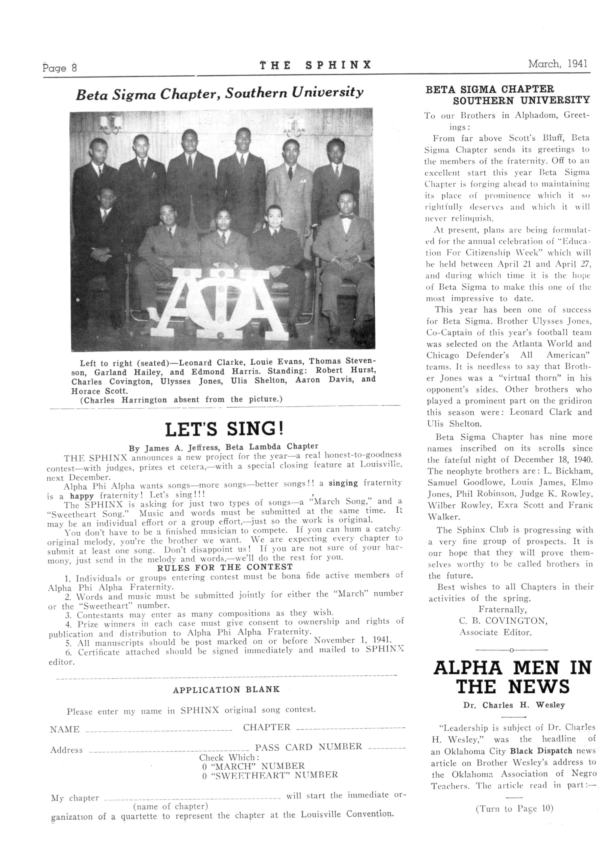 138 ALFHA RHO LAMBDA CHAPTER Hill, Maceo Allen, Charles D Crosby, A Dev Wallace, Tucker A Wright, Lucien C