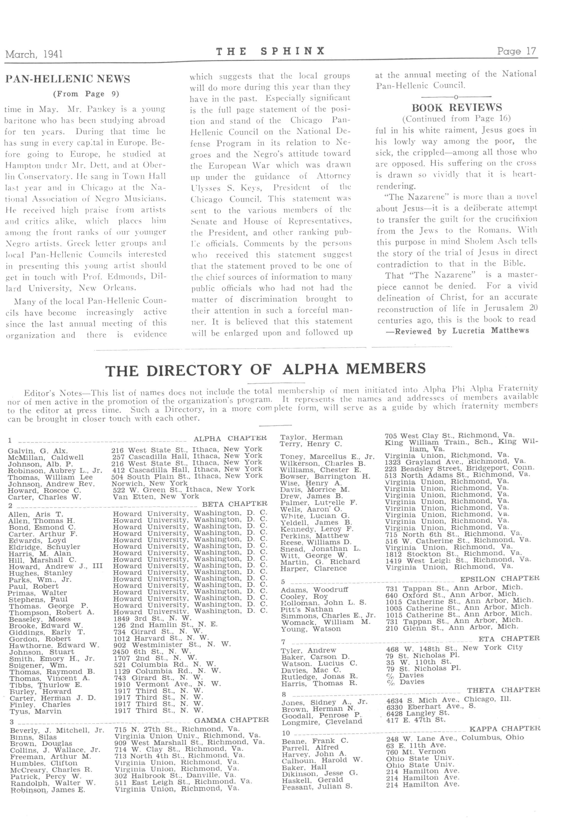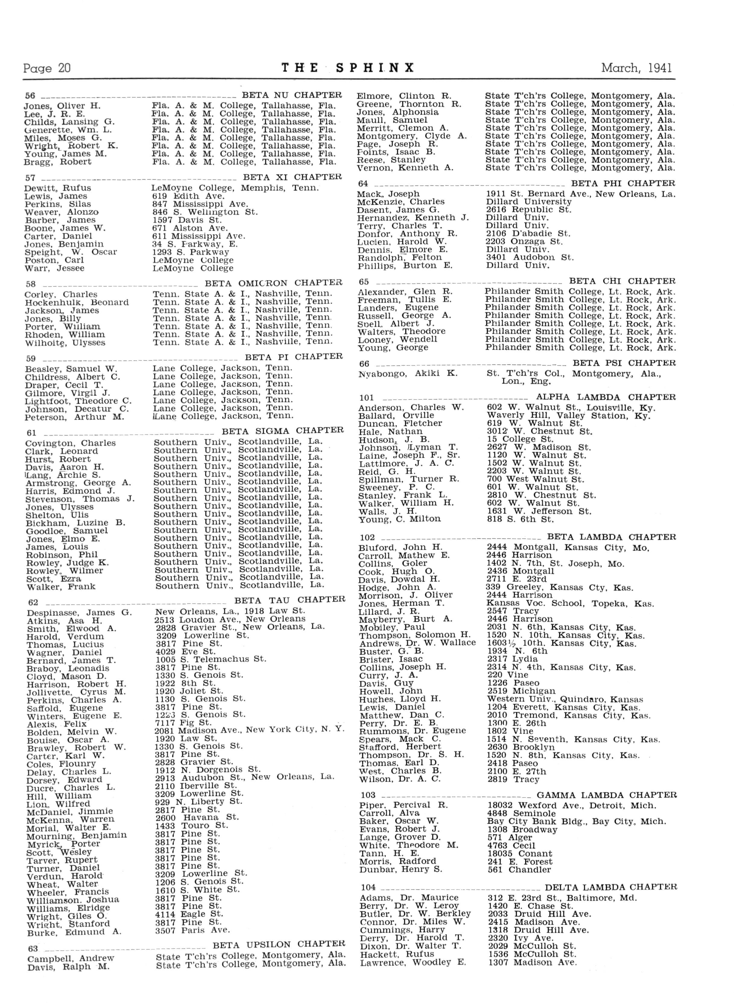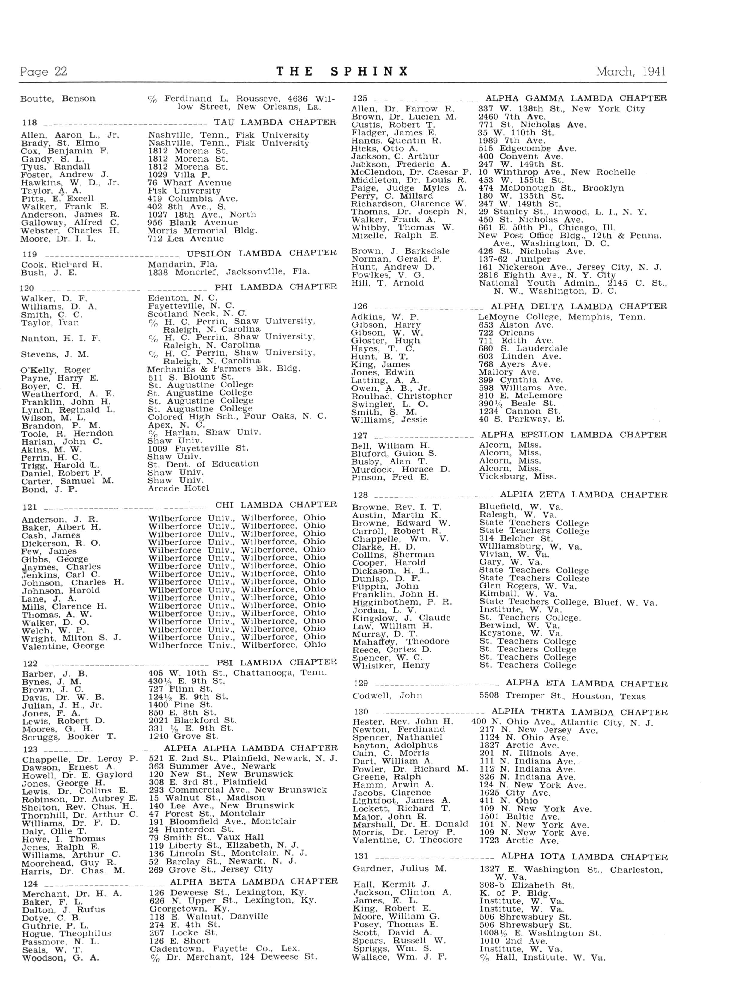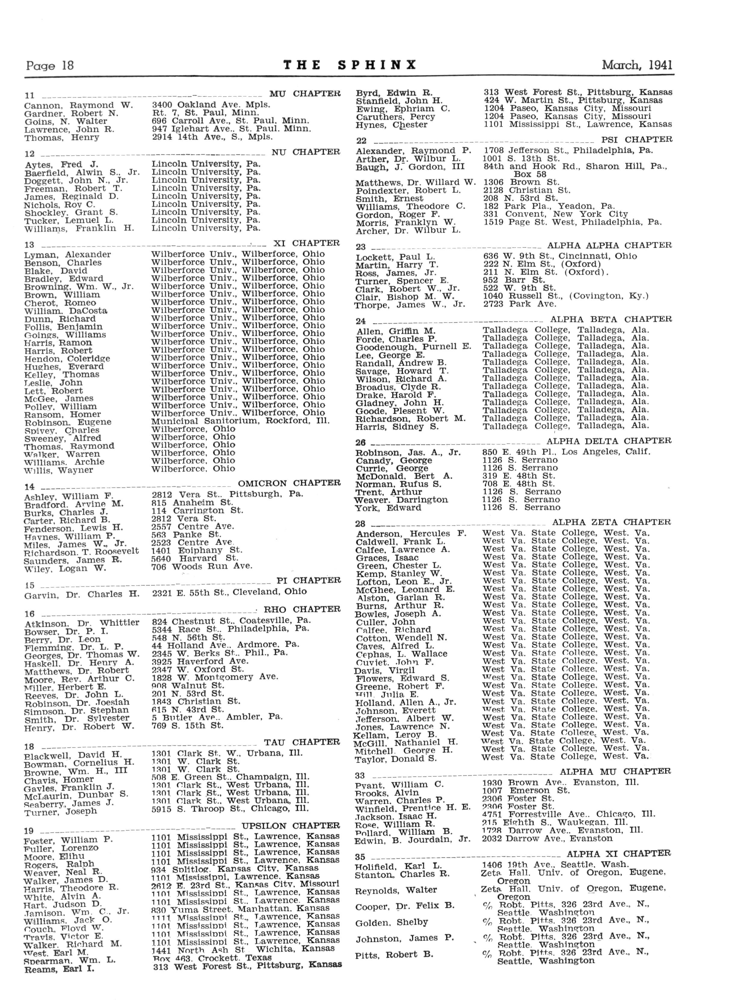 3 - GAMMA CHAPTER £°°gmire, Cleveland 41 7 E47t h St ' Beverly J Mitchell, Jr 715 N 27th St., Richmond, Va KAPPA CHAPTER Binns, Silas Virginia Union Univ., Richmond Va. ™ -- w L A Columbus, Ohio Brown, Douglas 909West Marshall St., Richmond, Va