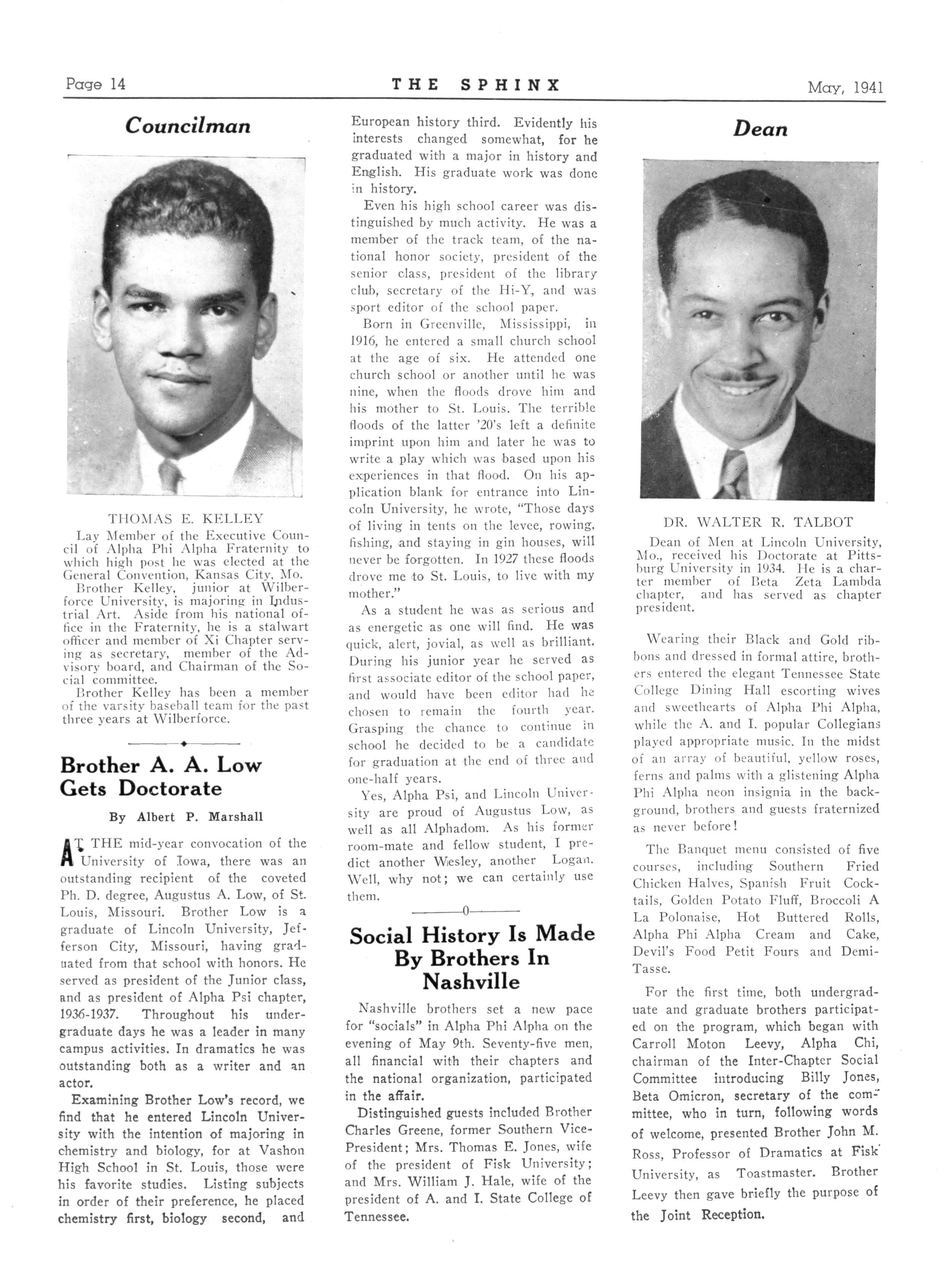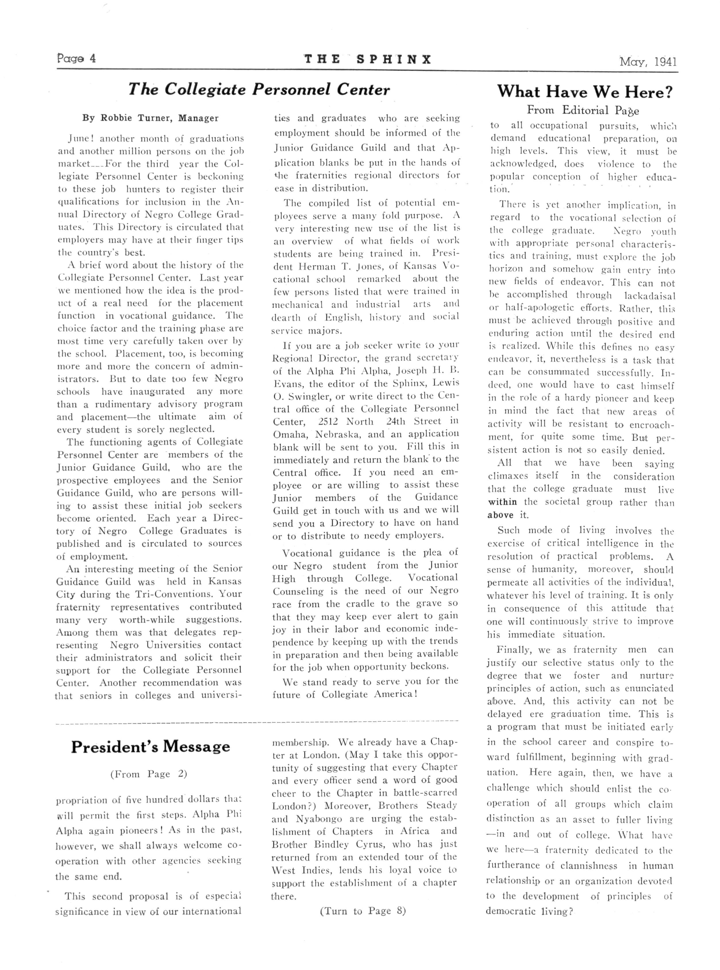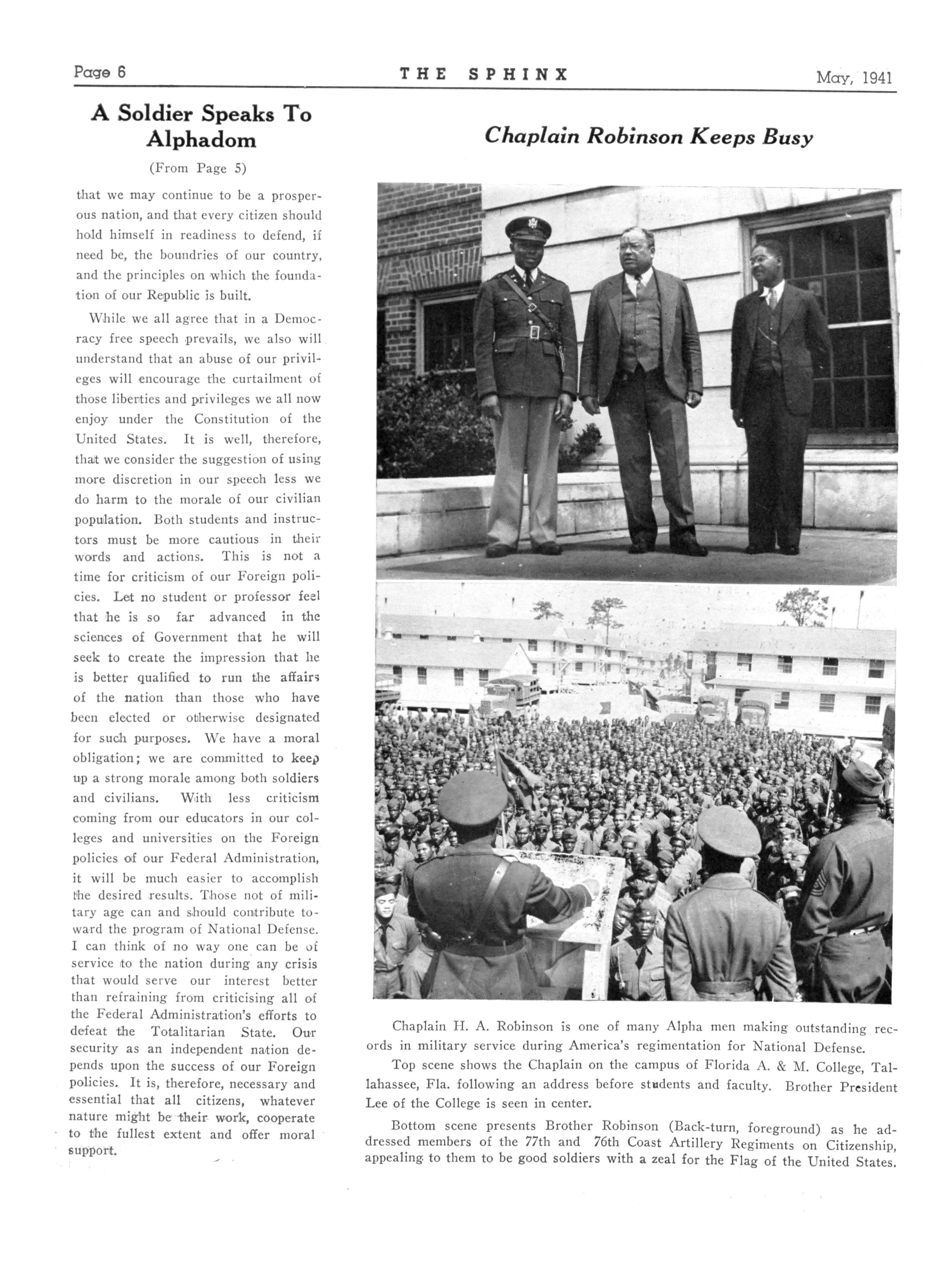 If the emergency lasts long enough and the replies warrant it, I shall urge a "History of Alpha Phi Alpha in the Sec.md World War" to be edited by ourFraternity Historian Brother Wesley was able, after great effort, to obtain enough material for his chapter, "THE WORLD WAR INTERLUDE" in his History of Alpha Phi Alpha By starting now to assemble information, we shall beable to complete a comprehensive account.