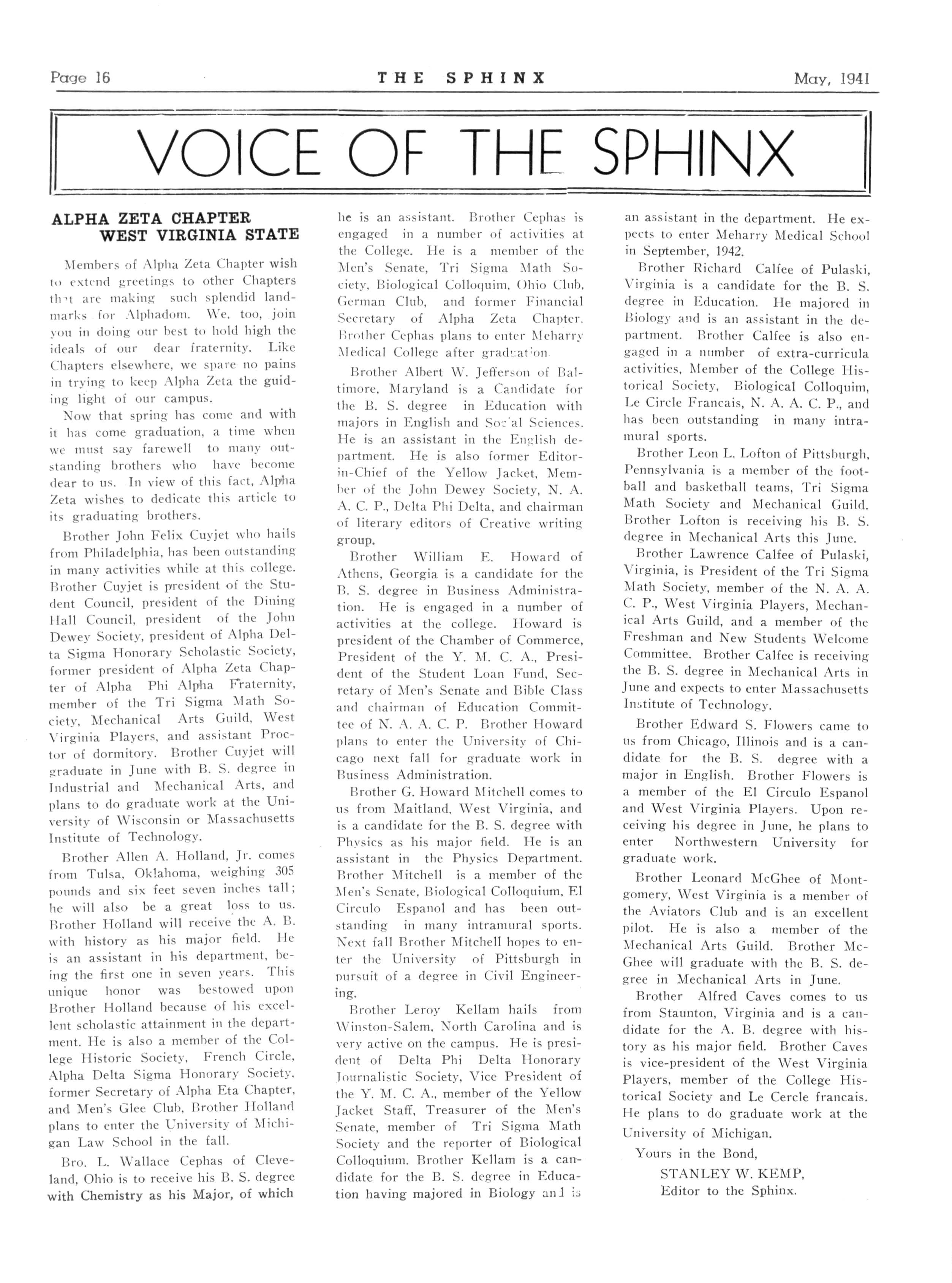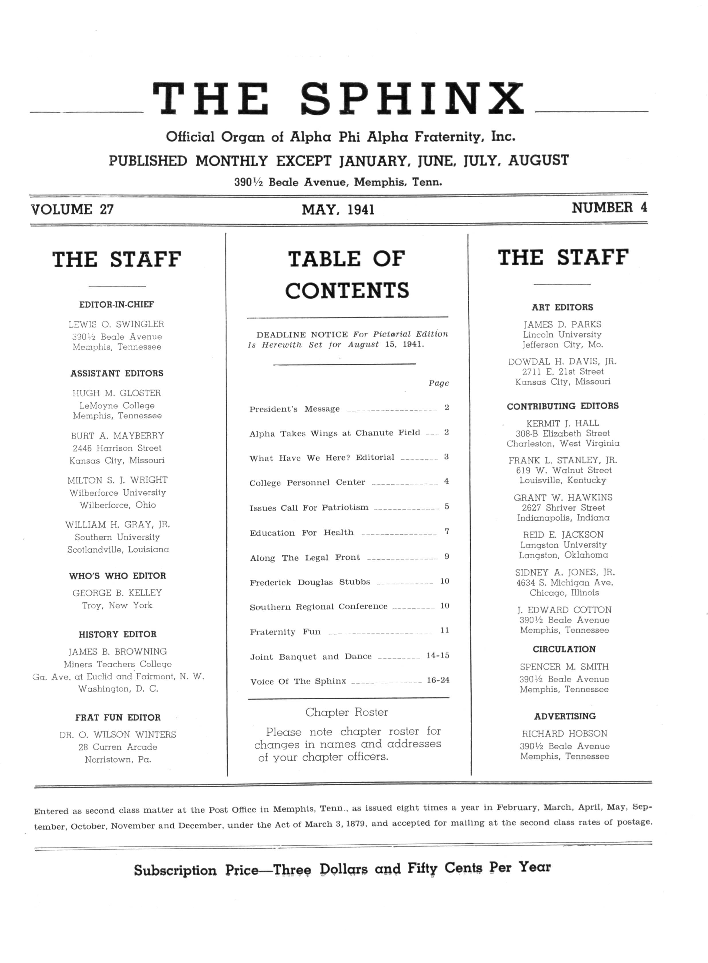 The SPHINX | Spring May 1941 | Volume 27 | Number 4 194102704