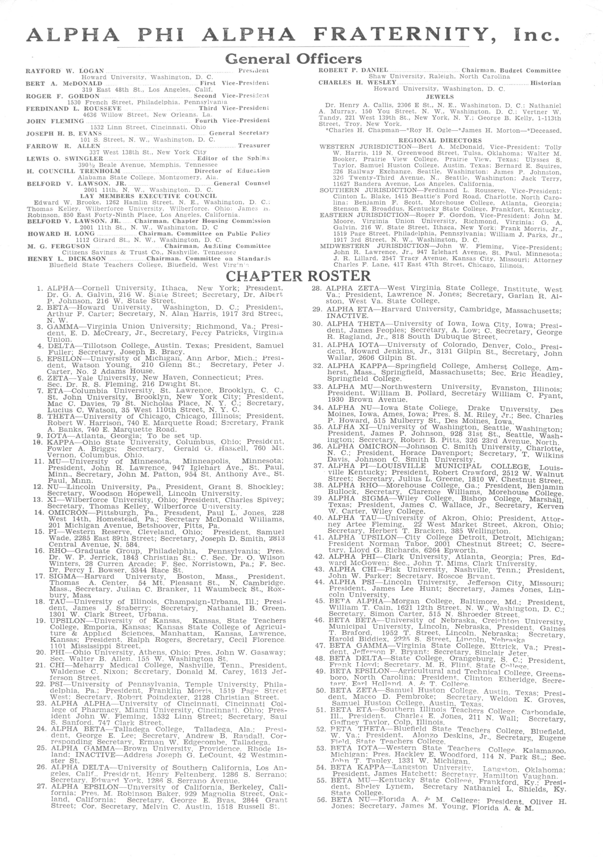 38 ALPHA RHO—Morehouse College, Ga.; President, Benjamin Bullock, Secretary, Clarence Williams, Morehouse College