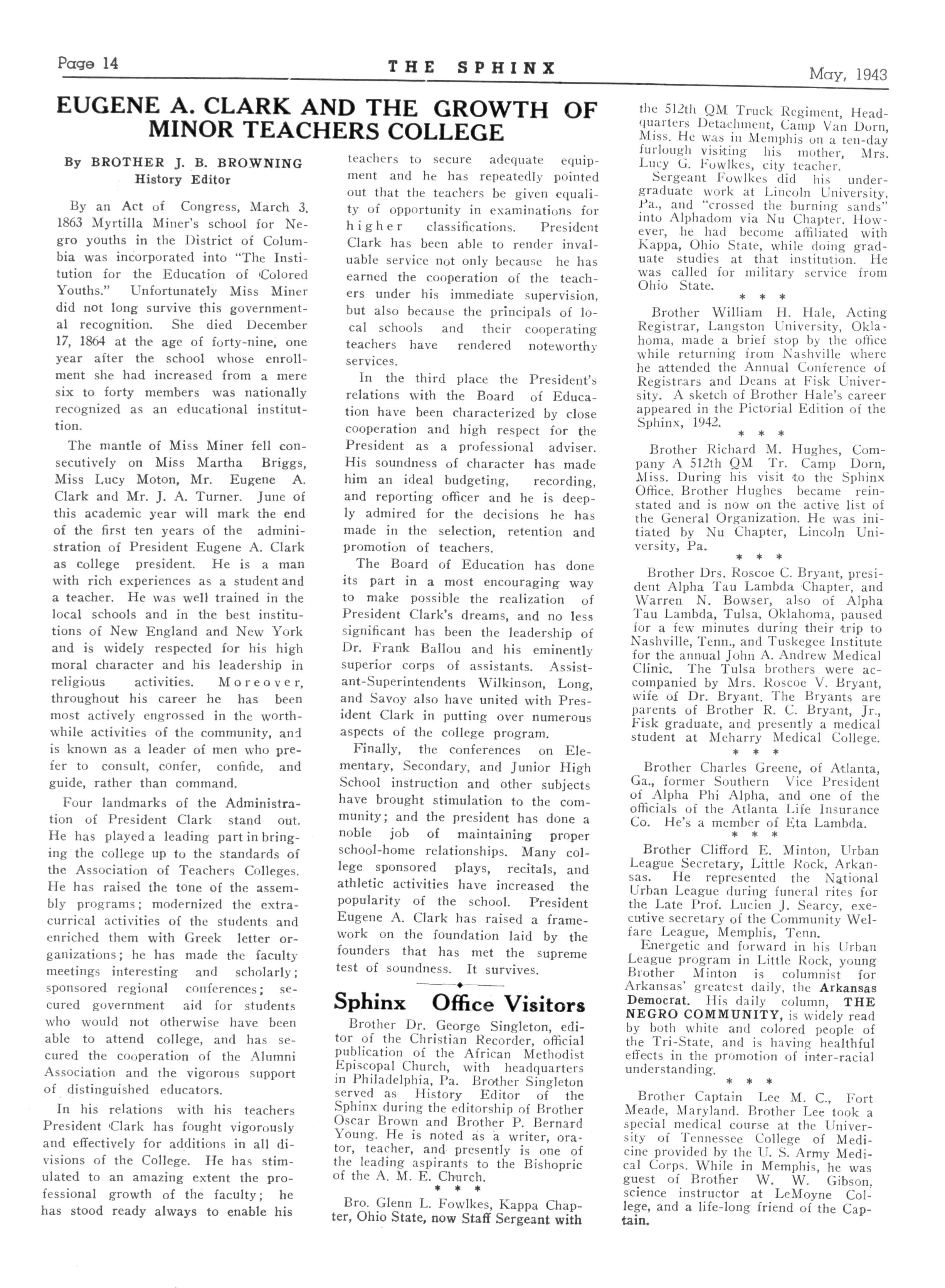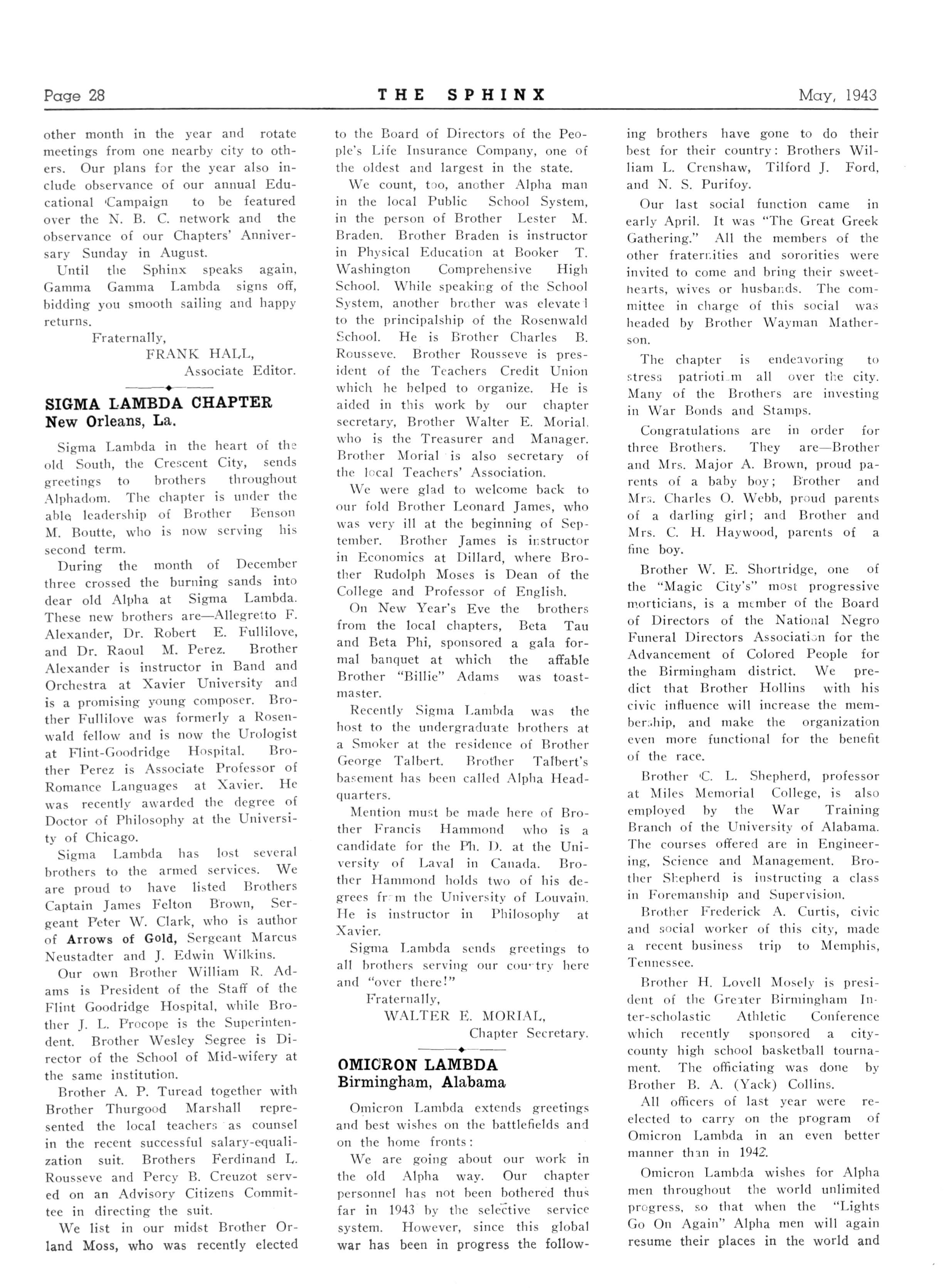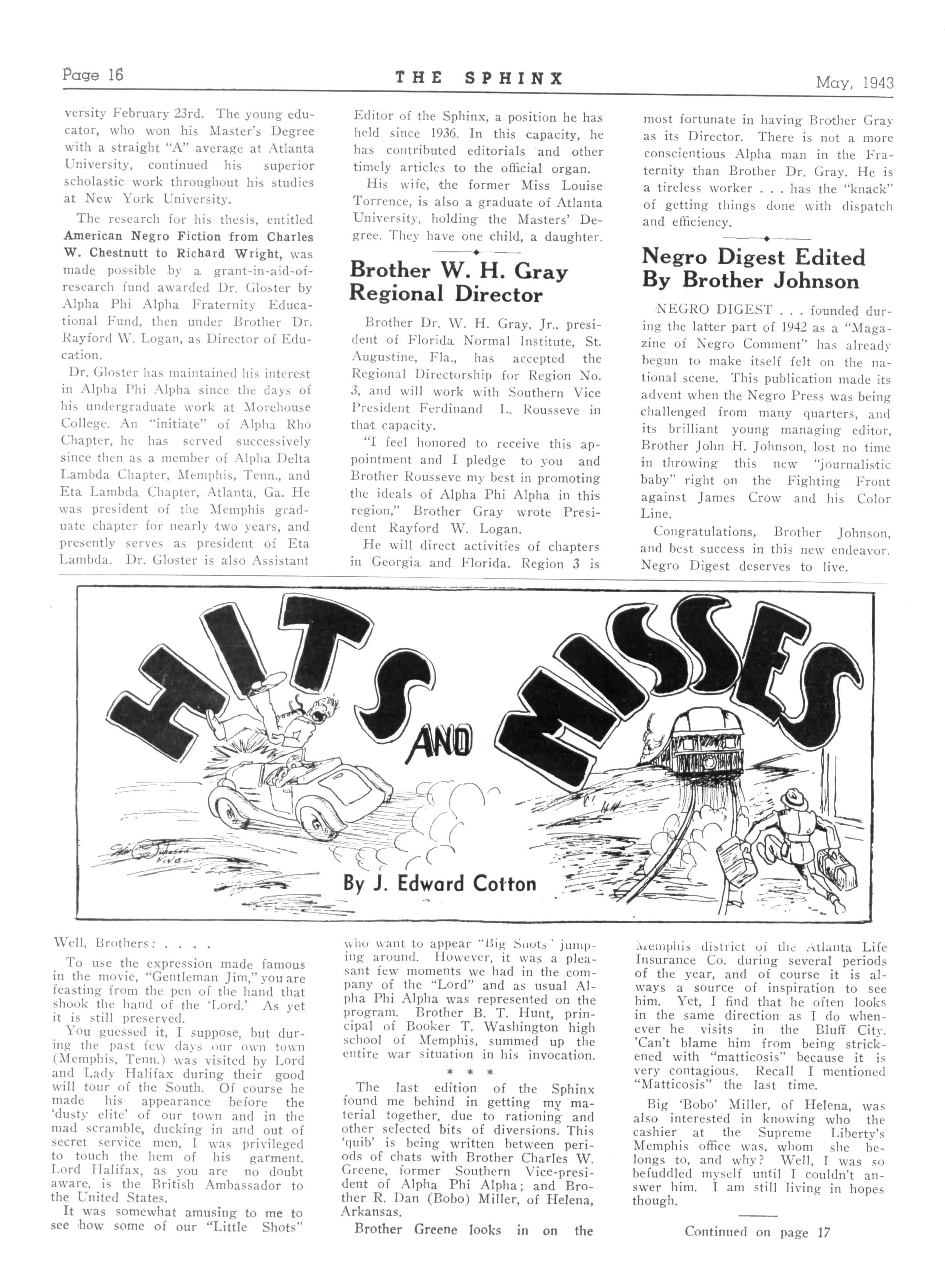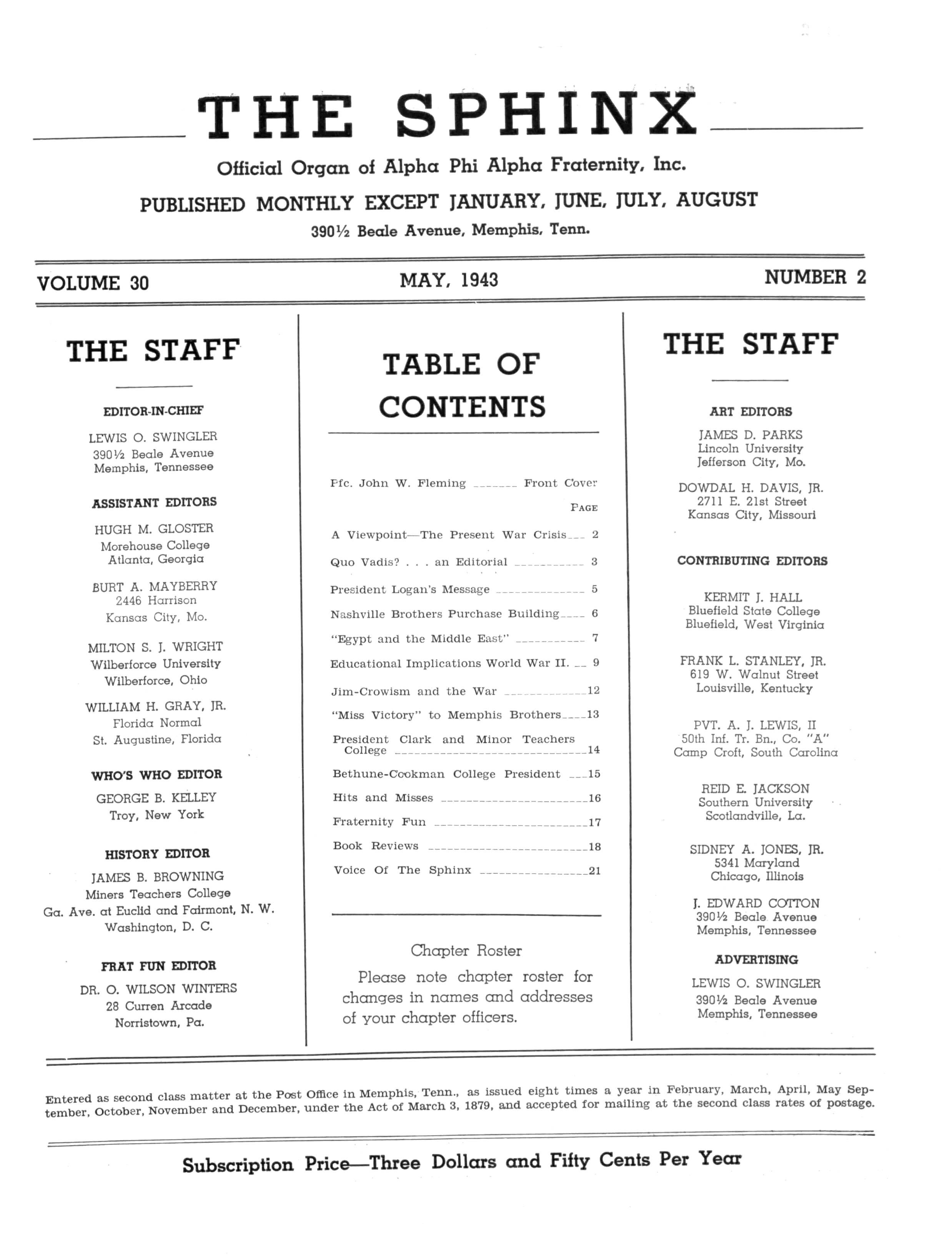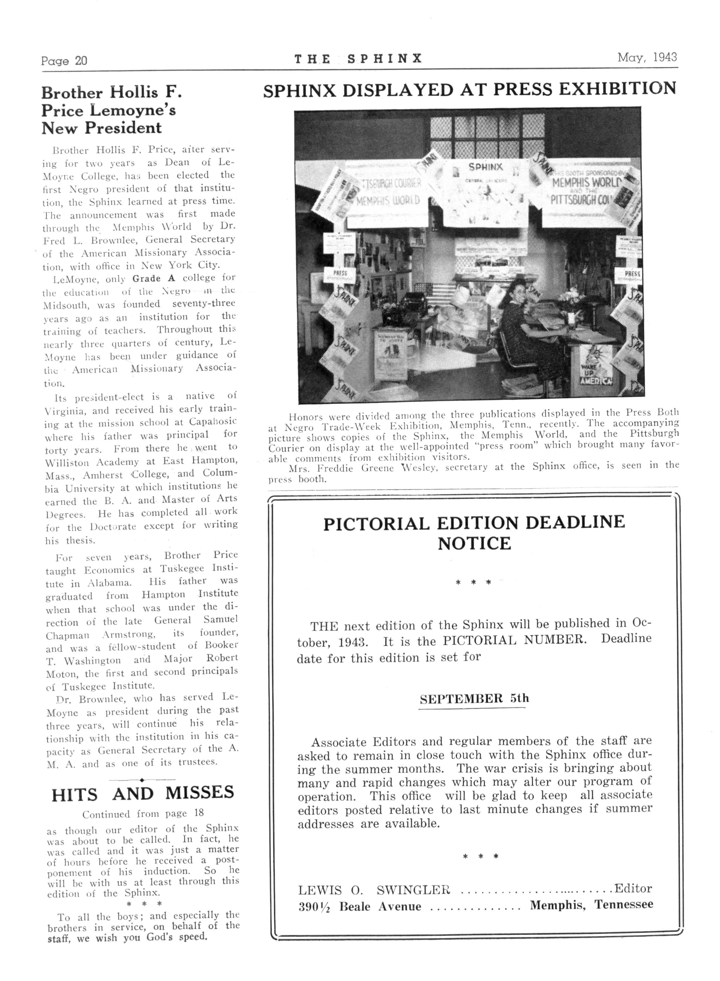 LEWIS O SWINGLER Editor of the Sphinx 390 Vi Beale Avenue, Memphis, Tennessee