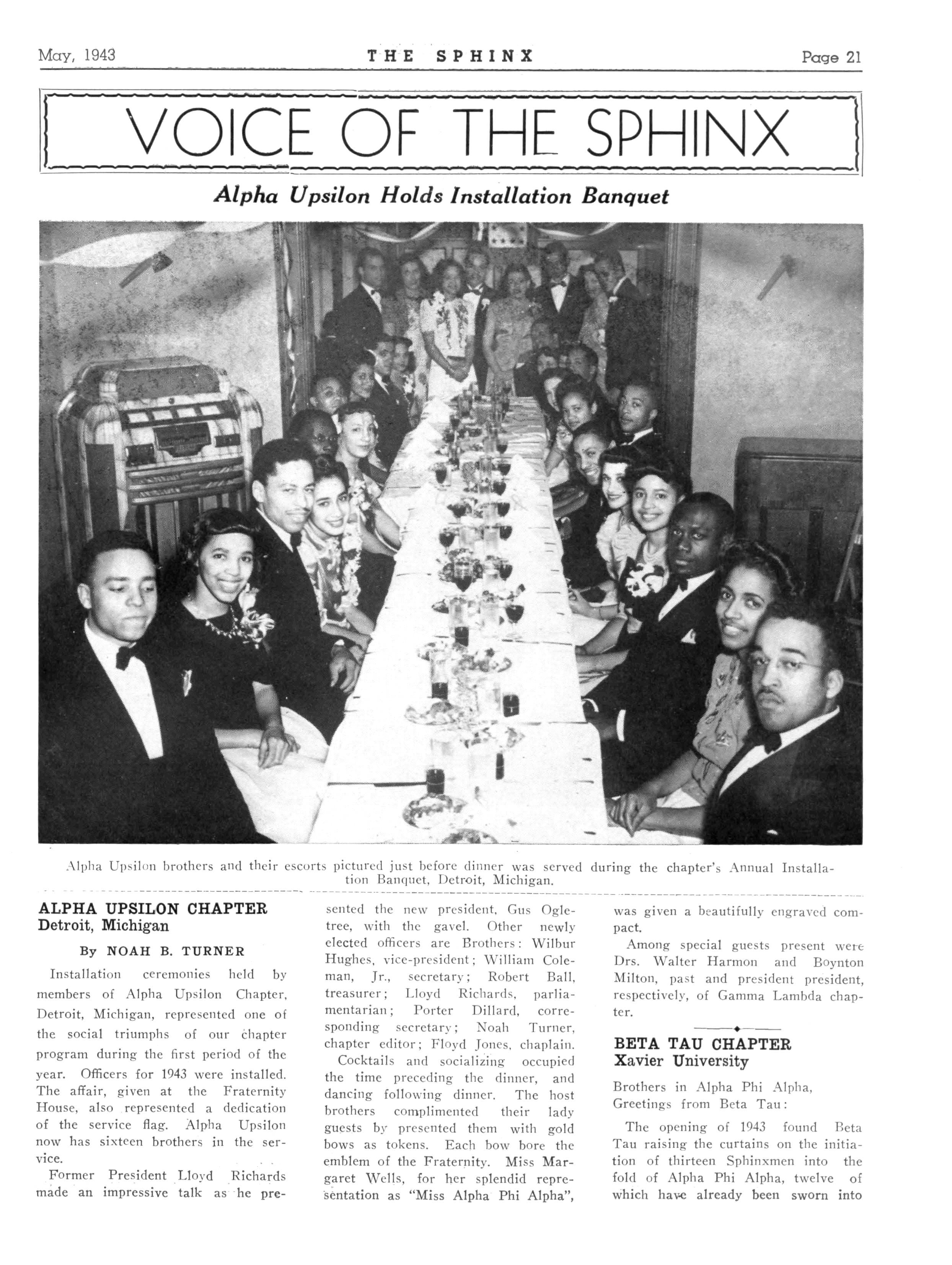 Mu has held very successful meetings at the homes of Brothers Earl Weber, Henry Thomas, Claiborne Hill, and William Casshis. We decided to meet only once a month after many of our brothers entered the armed forces, but so much enthusiasm developed that the brothers voted to return to the system of bi-monthly meetings.