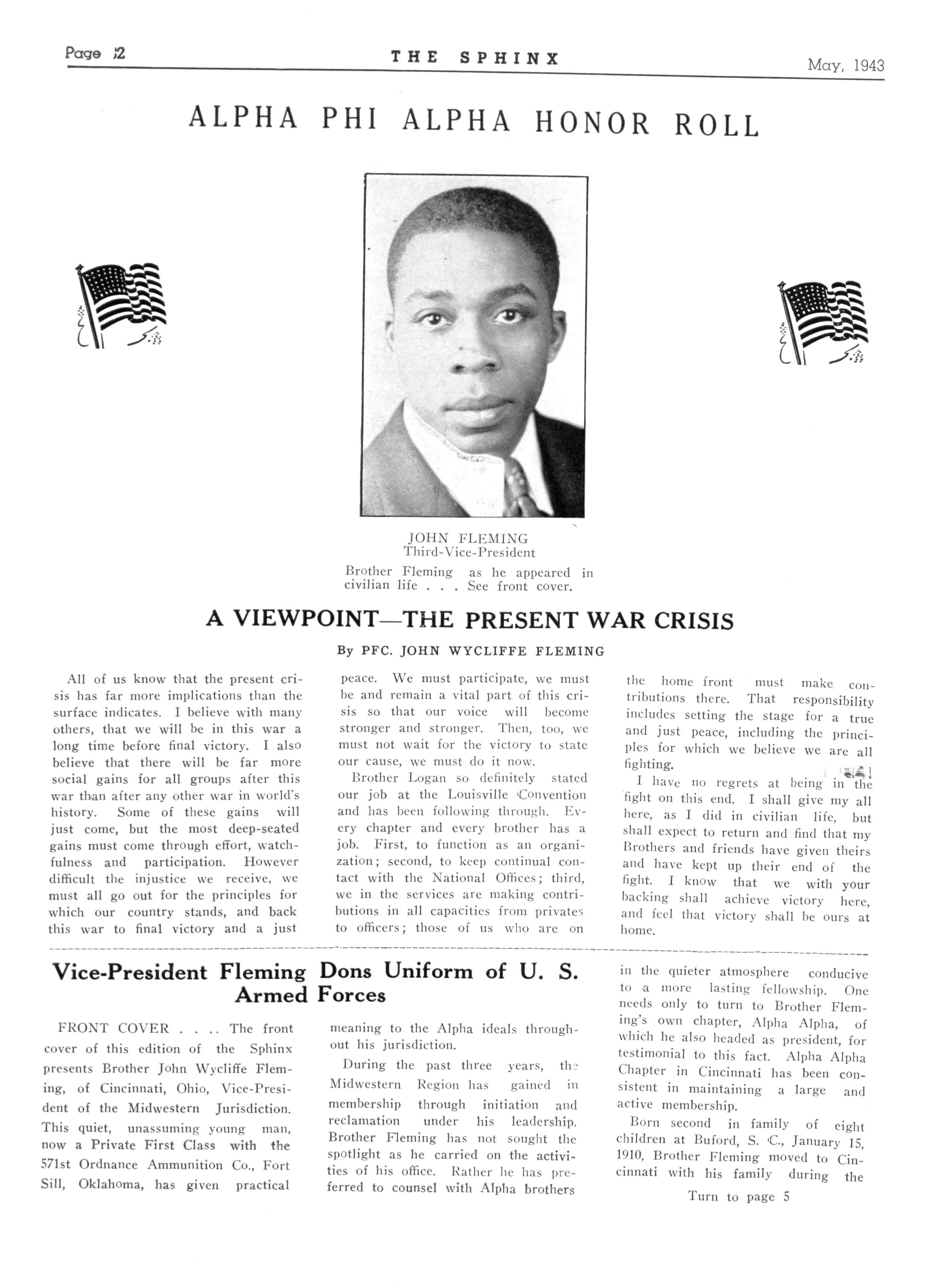 Wherever he goes, as a soldier in the onward march toward victory, the light of Alphadom will shine the brightest See Page 2 for Brother Fleming's view on the war crisis.