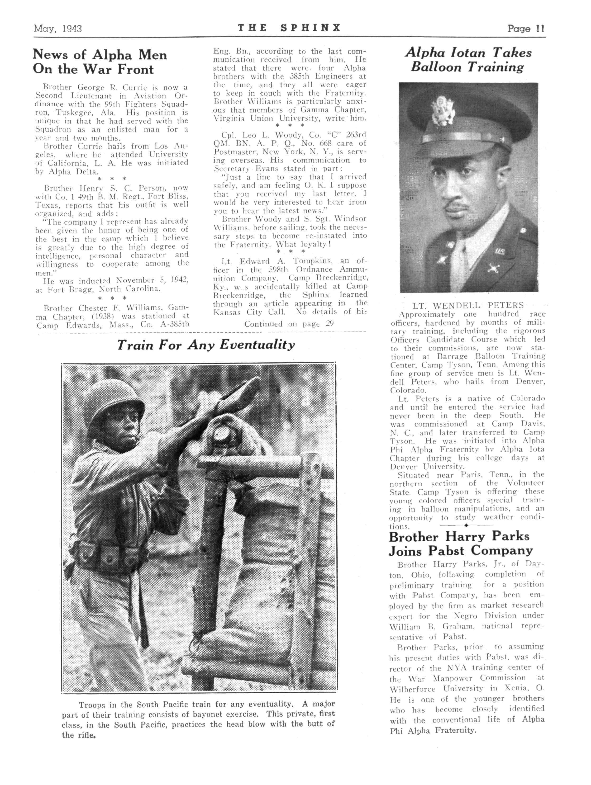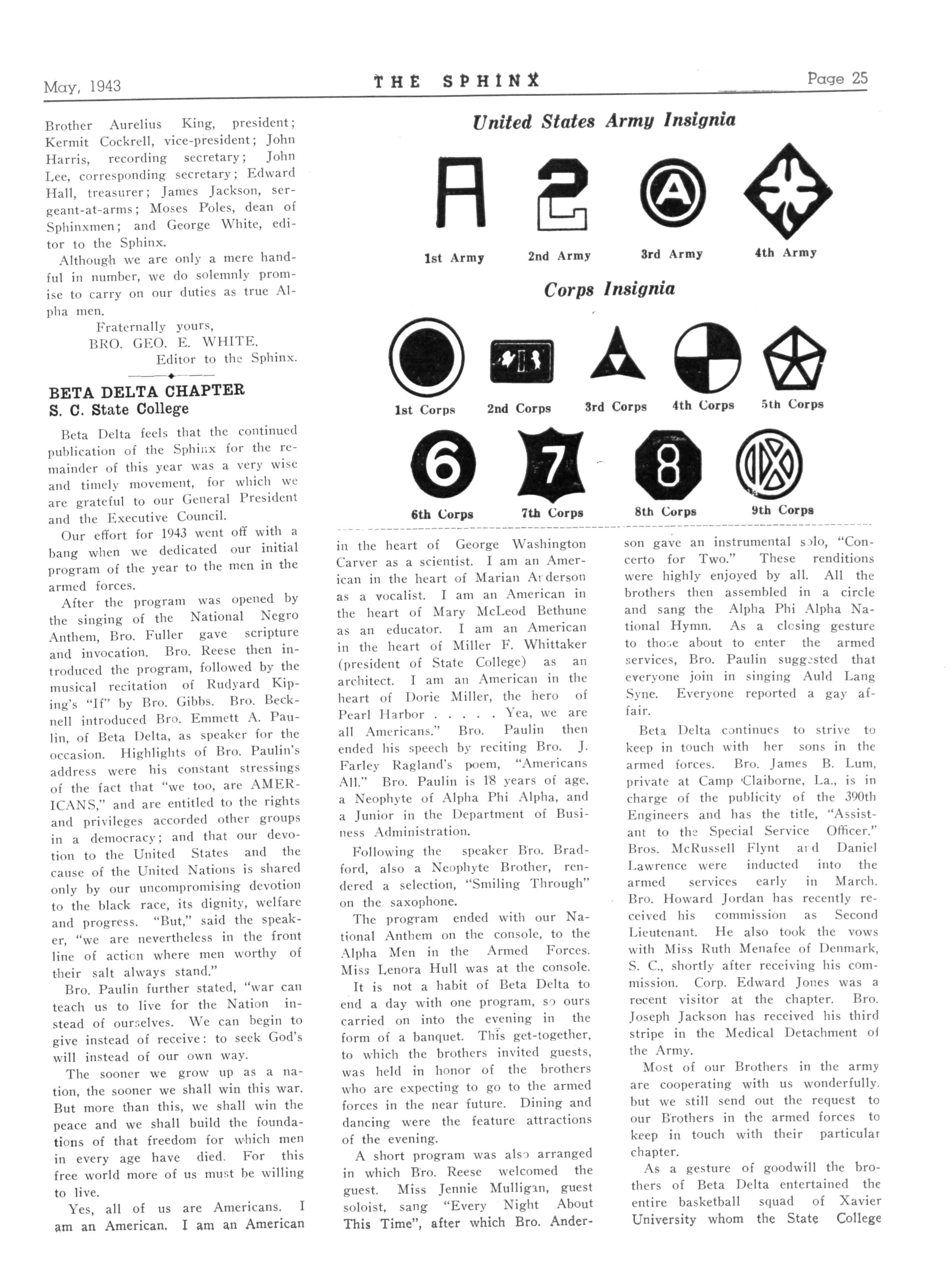 Honor guests at this time were First Lieutenant Samuel Evans, of the R O T C, West Virginia State College; Second Lieutenant James Kidd, Engineer Corps; Second Lieutenant Paul Waller, Quartermaster Corps; Brother Richard Hopson, recently a navy recruit
