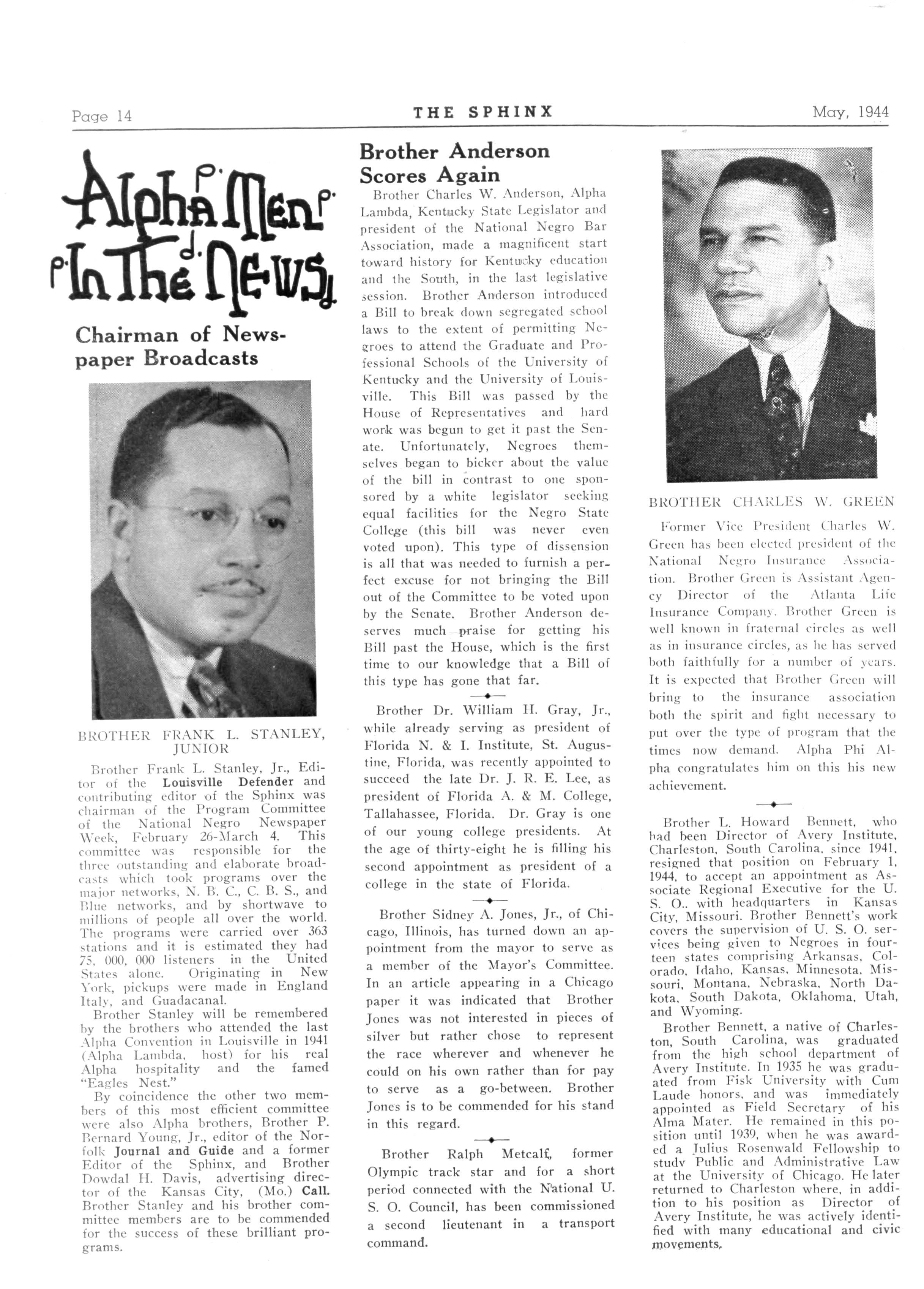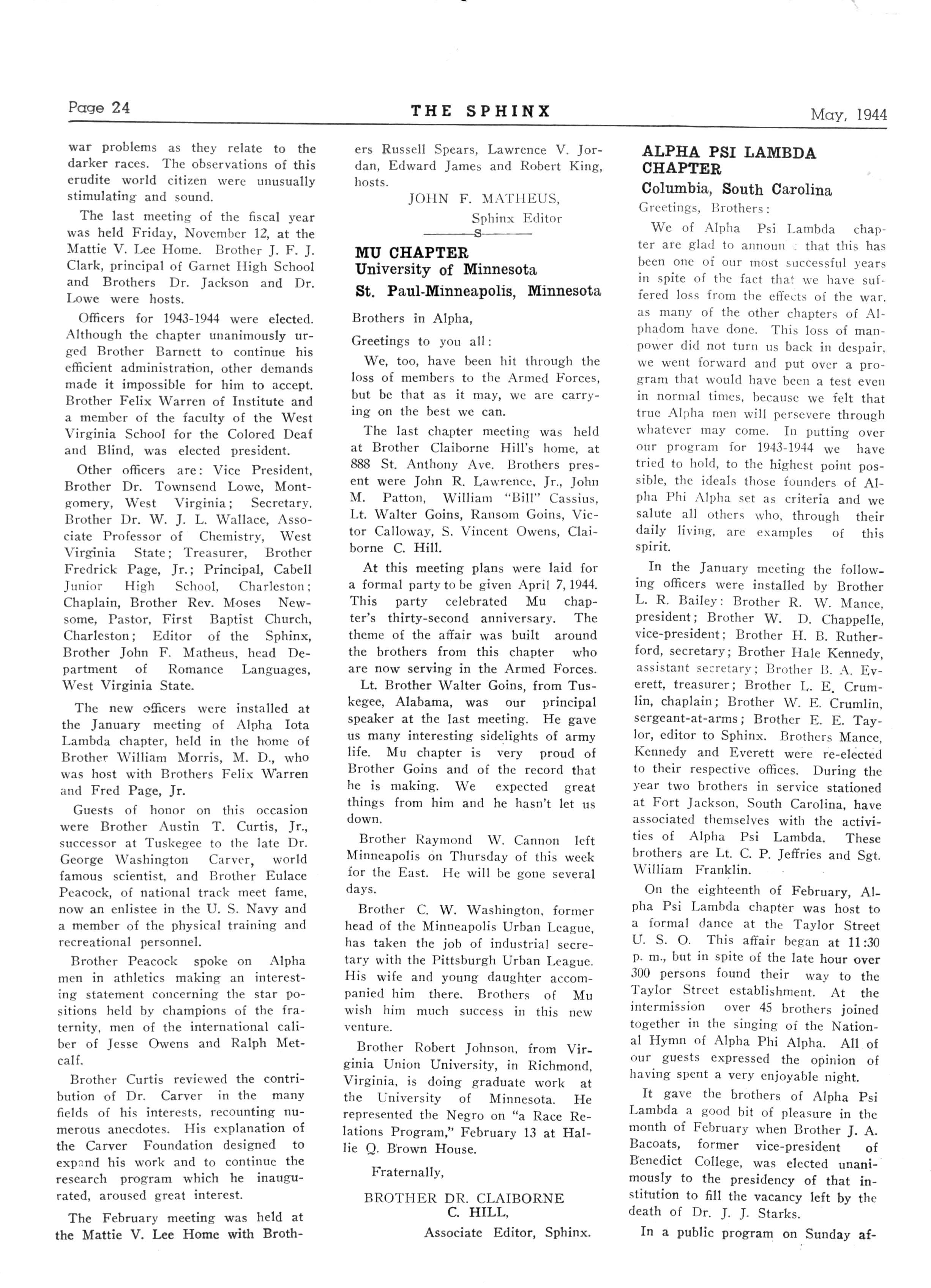 134 ALPHA NU LAMBDA—Tuskegee Institute, Ala.; President,