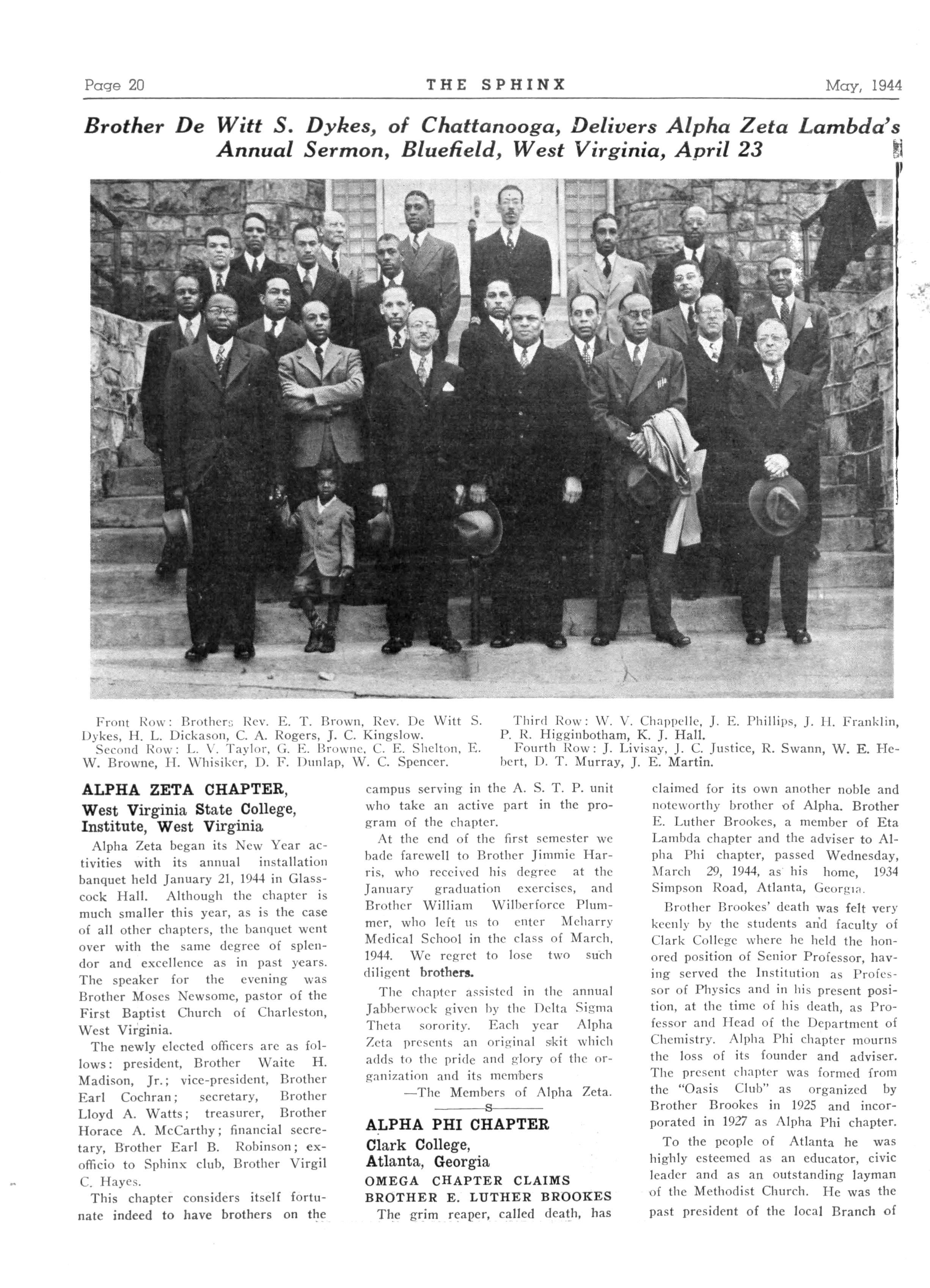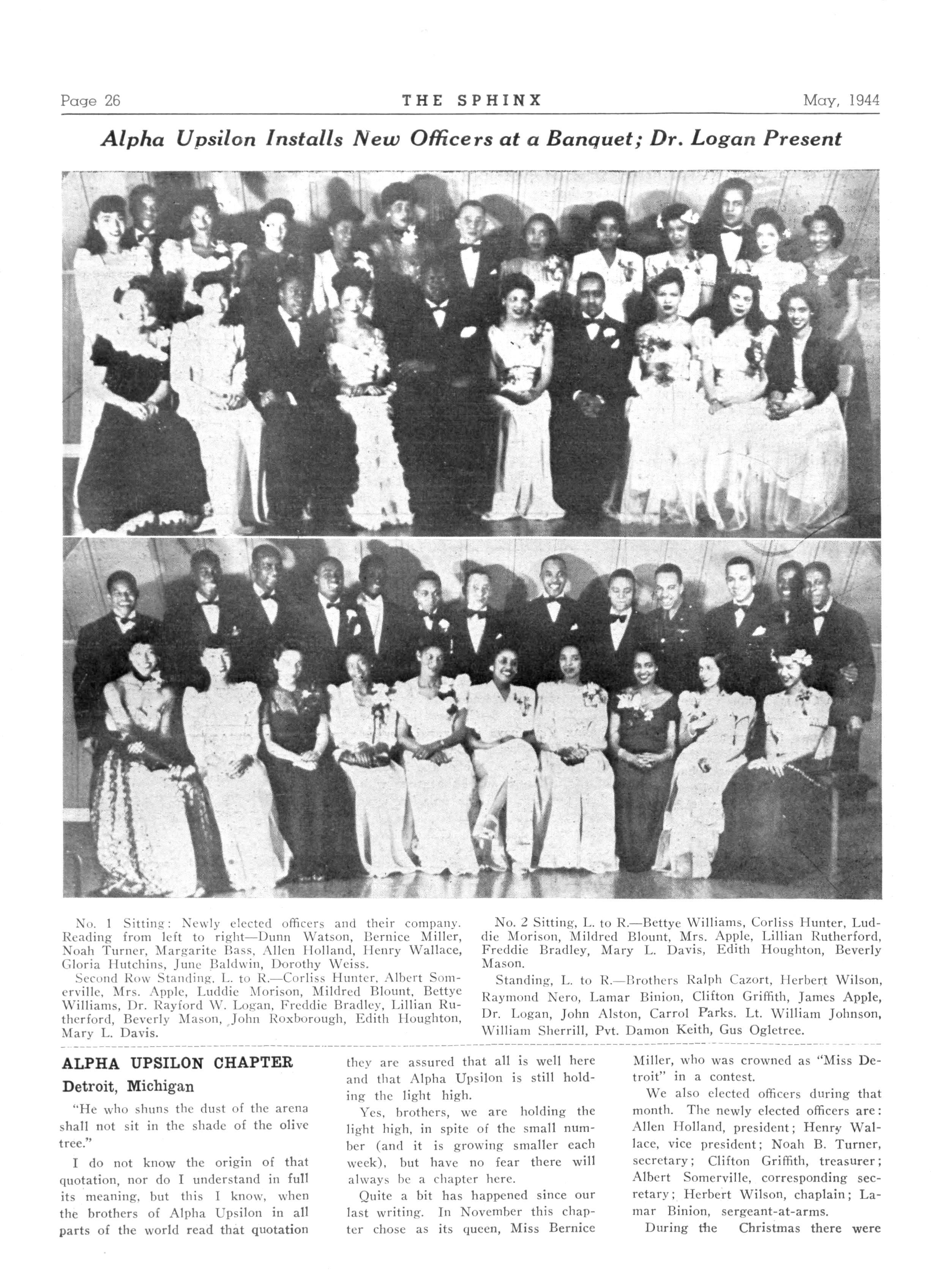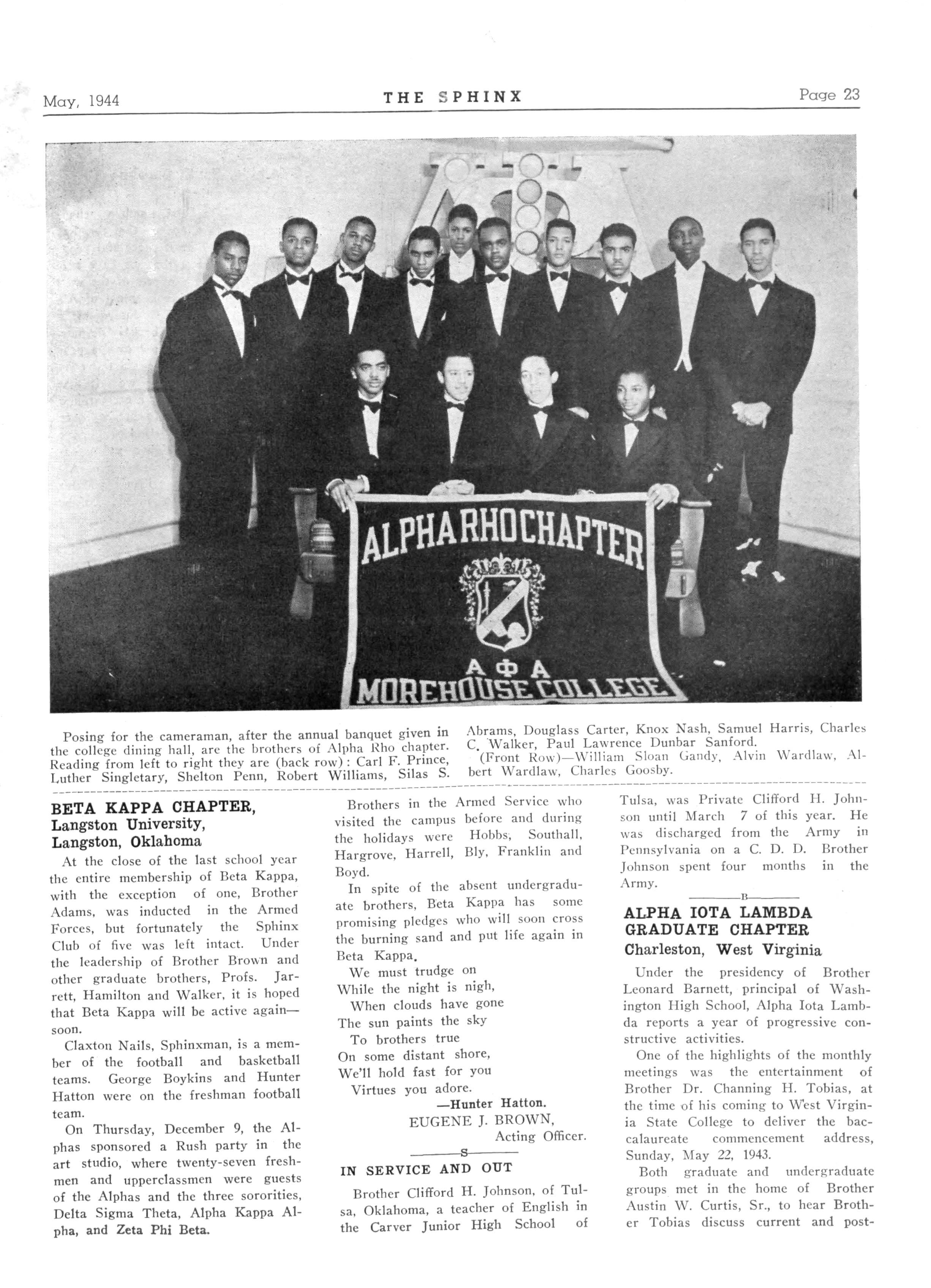 On Tuesday night, January 18, 1944, brothers of the Alpha Chi Lambda chapter of Alpha Phi Alpha Fraternity, Inc., held their annual banquet at the spacious home ol Mr and Mrs Alexander Beasley on Twiggs Street