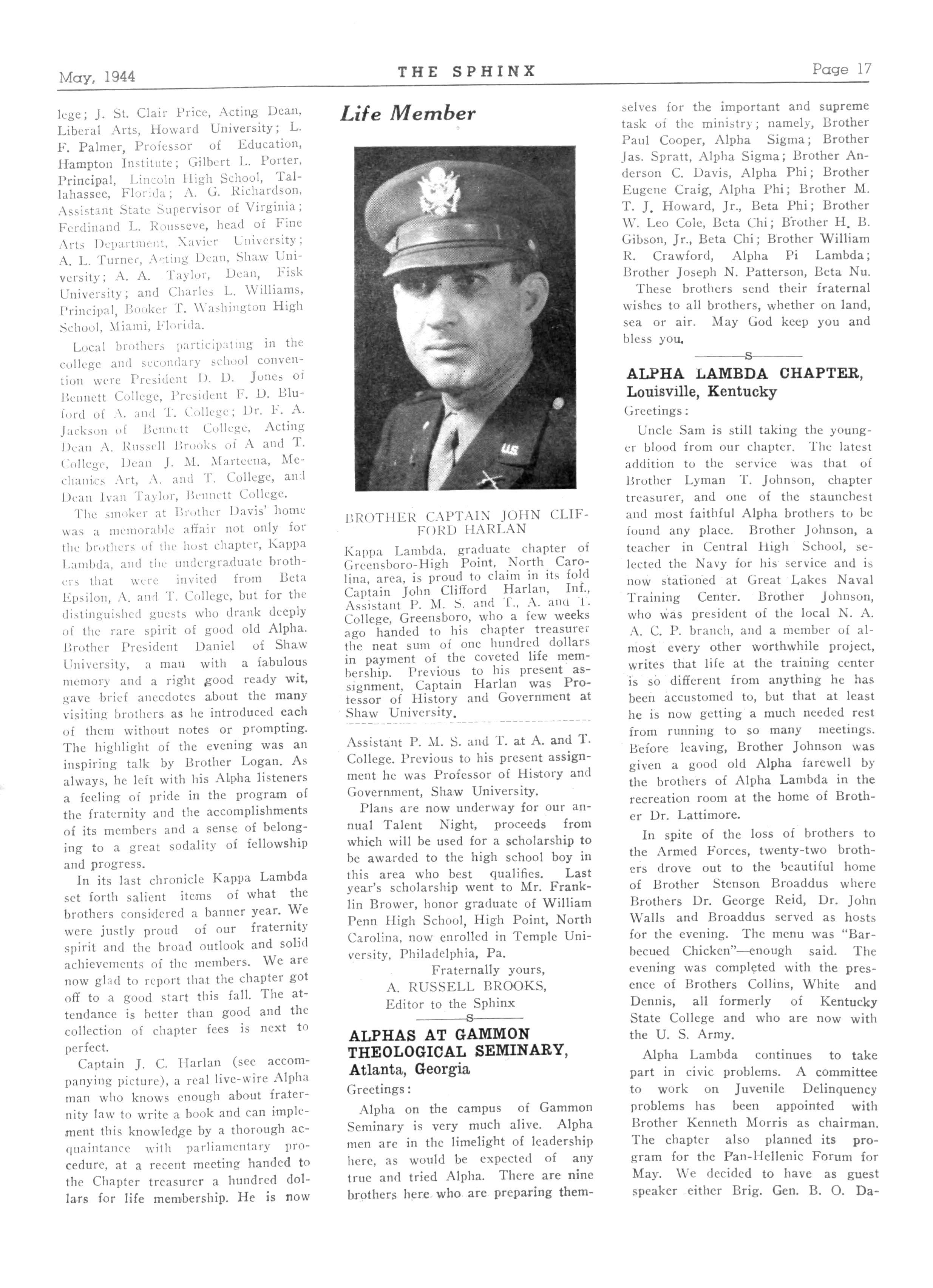 101 ALPHA LAMBDA—Louisville, Kentucky; President C Milton Young, 818S 6th Street; Secretary, Louis J Harper, 1753 W Omsby Street