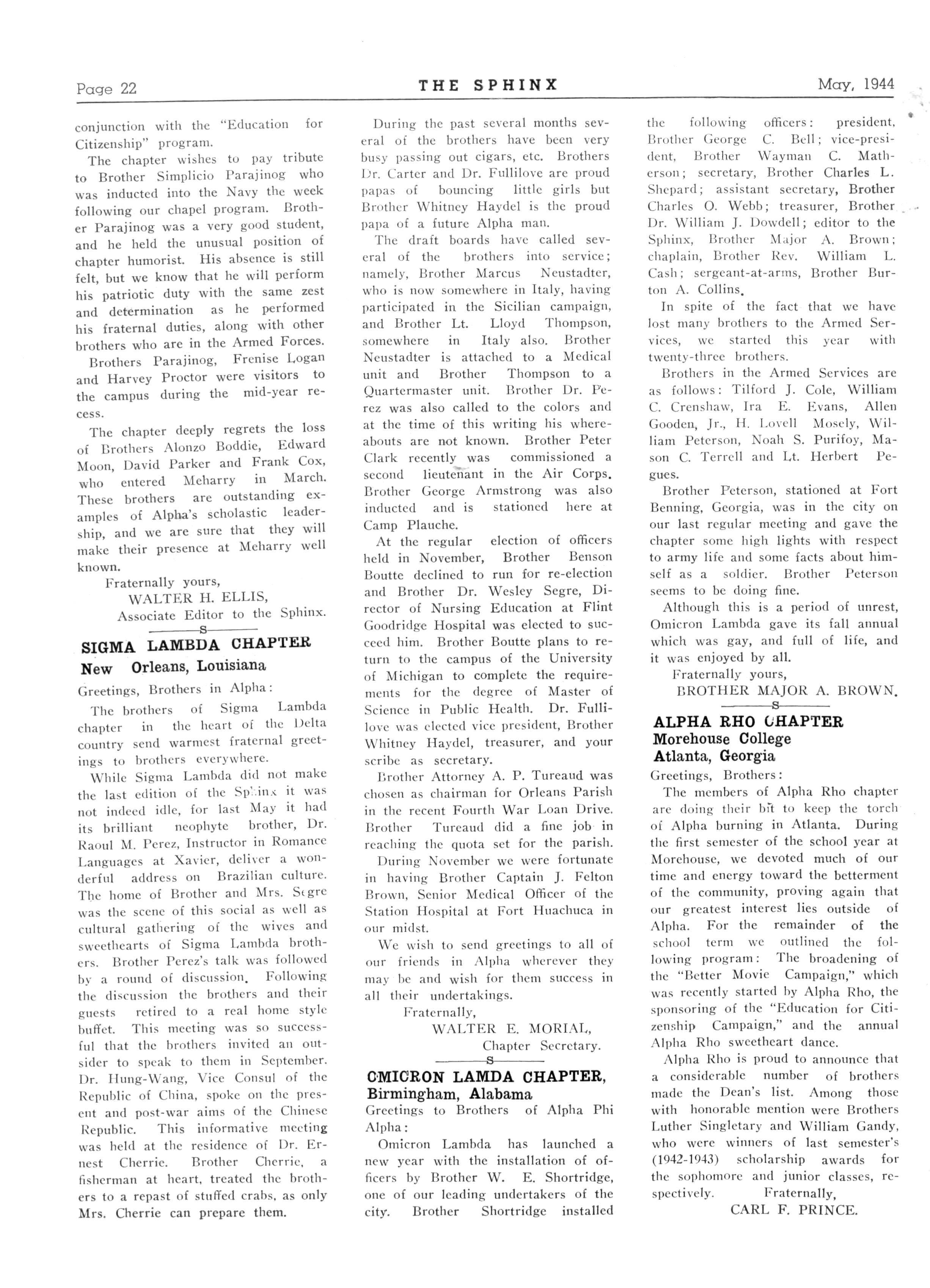 113 XI LAMBDA—Chicago, 111.,President, Dr E K McDonald, 5624 S State Street; Secretary, Alton M•Childs, II, 3653 Calumet Avenue