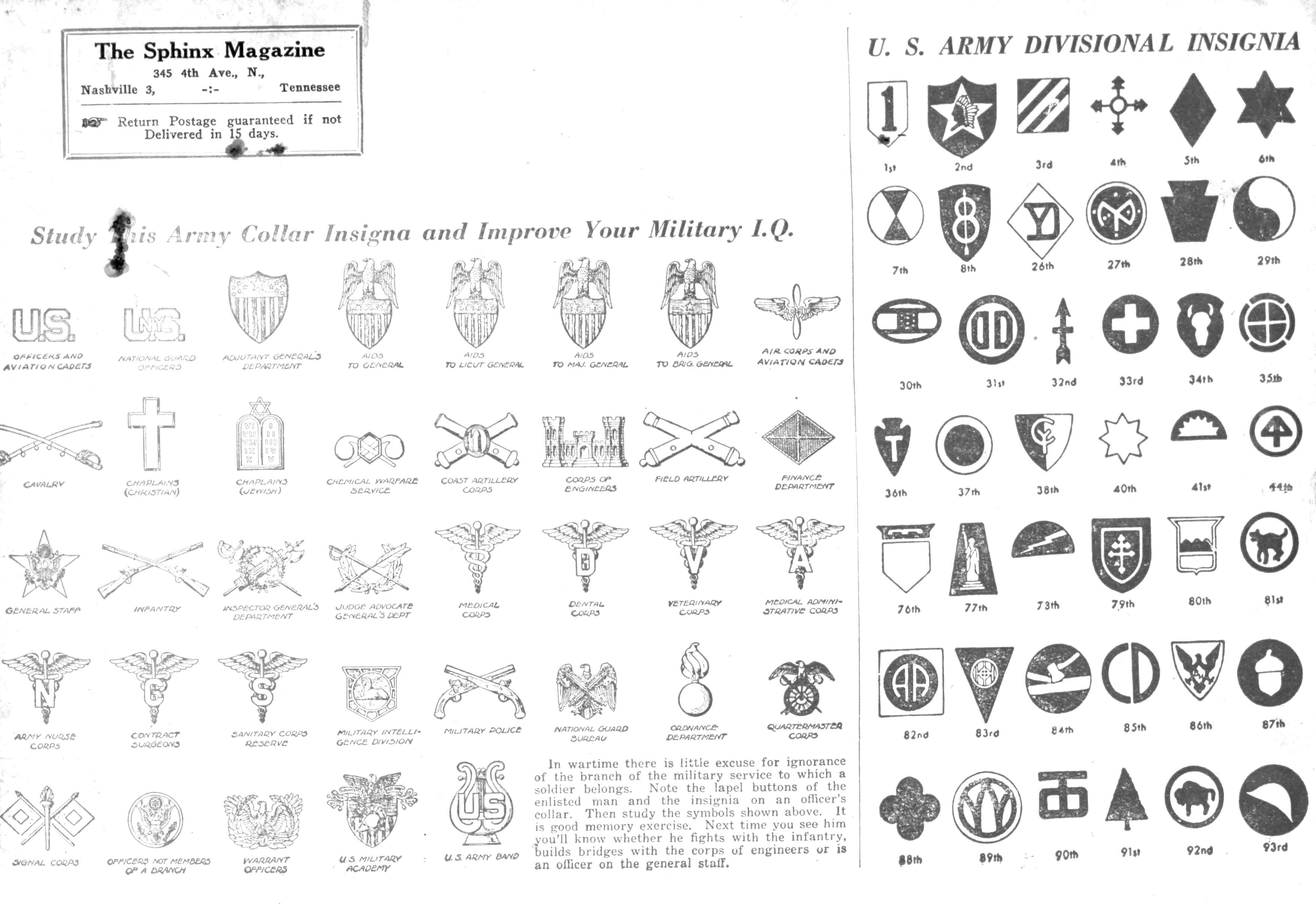 f Study JW*S Army Collar Insigna and Improve Your Military I.Q.