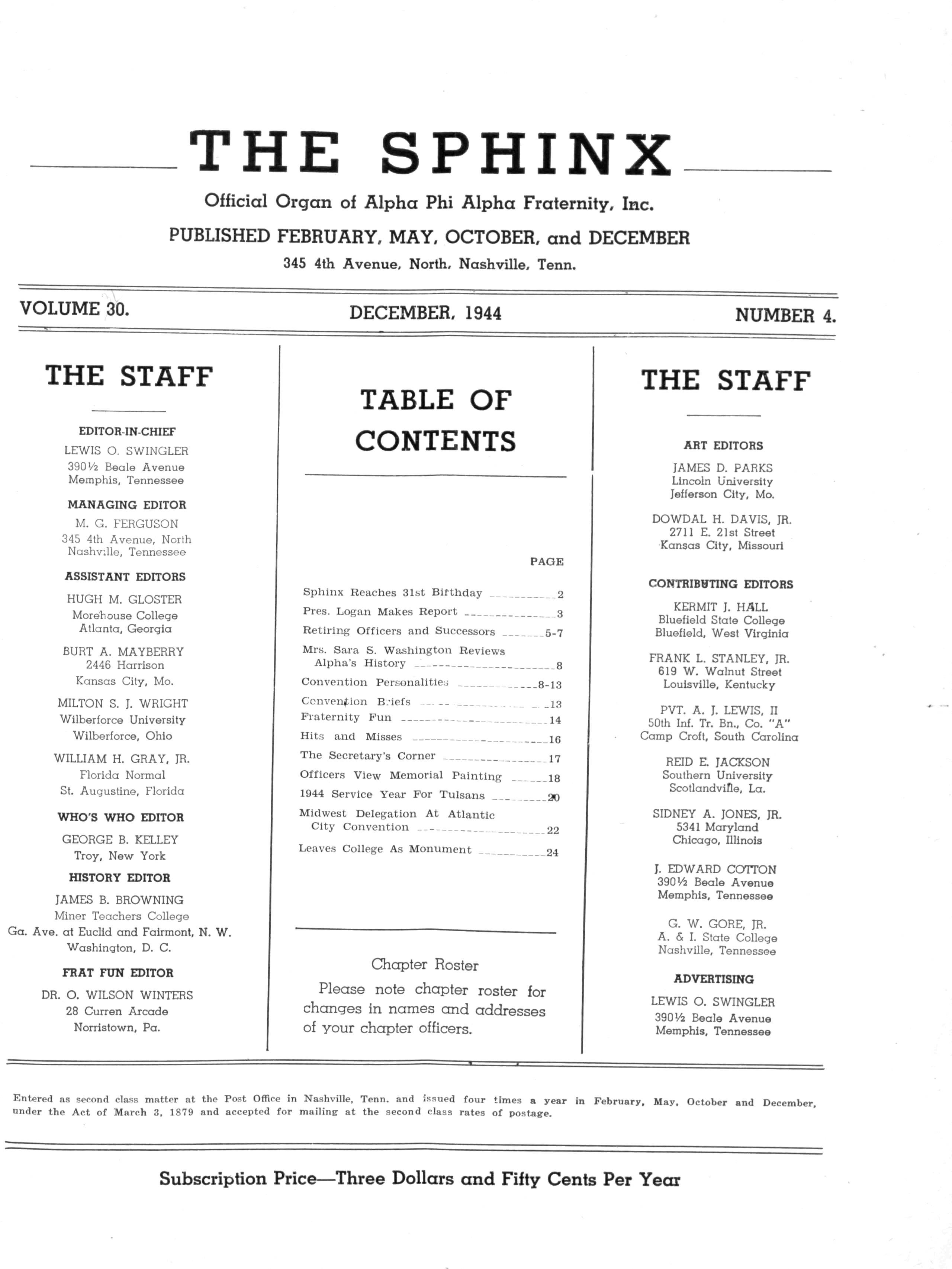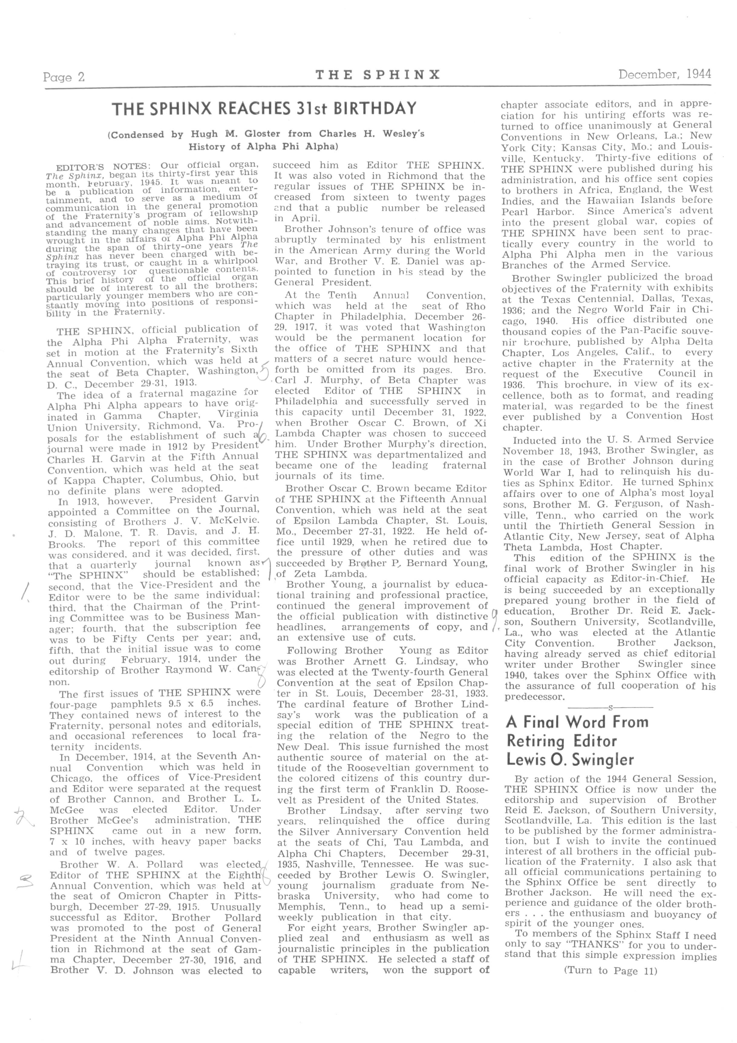 LEWIS O SWINGLER Editor of the Sphini 390Va Beale Avenue, Memphis, Tennessee