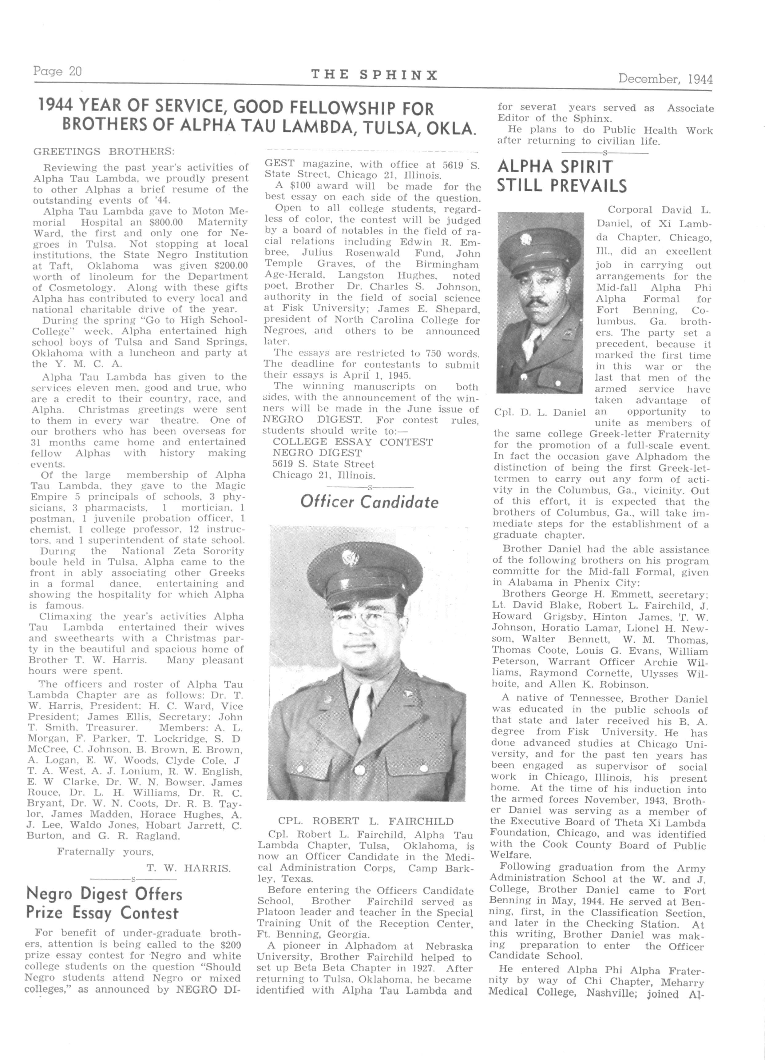 44. ALPHA PSI—Lincoln University, Jefferson City, Mo.; President, Louis K. Harris; Secretary, Thomas C. Brakeen, Jr., Lincoln University, Jefferson City, Mo.