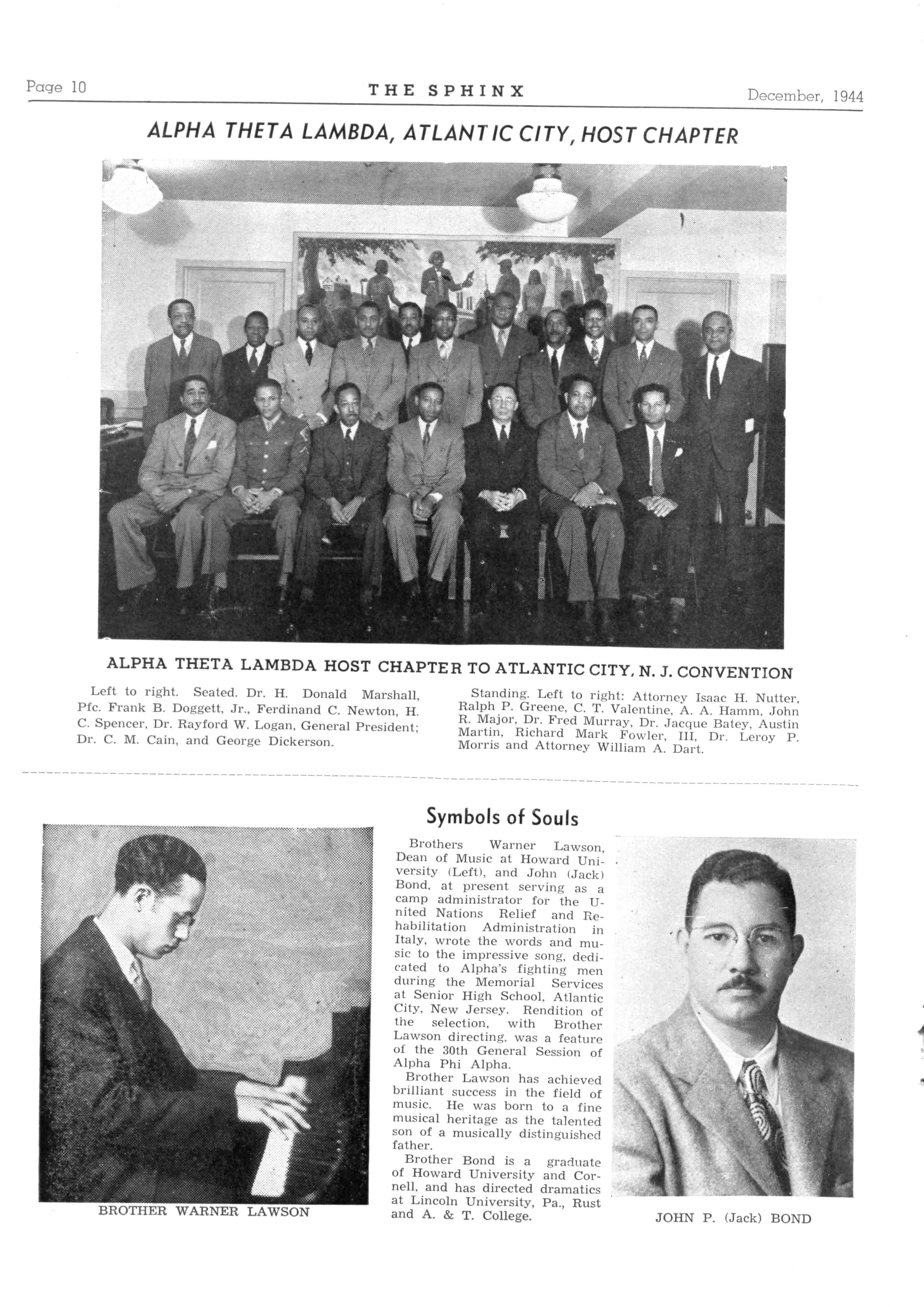 ALPHA THETA LAMBDA—Atlantic City, New Jersey President, F C Newton; Secretary, Richard M Fowler, III, 112 N Indiana Avenue, Atlantic City, New Jersey