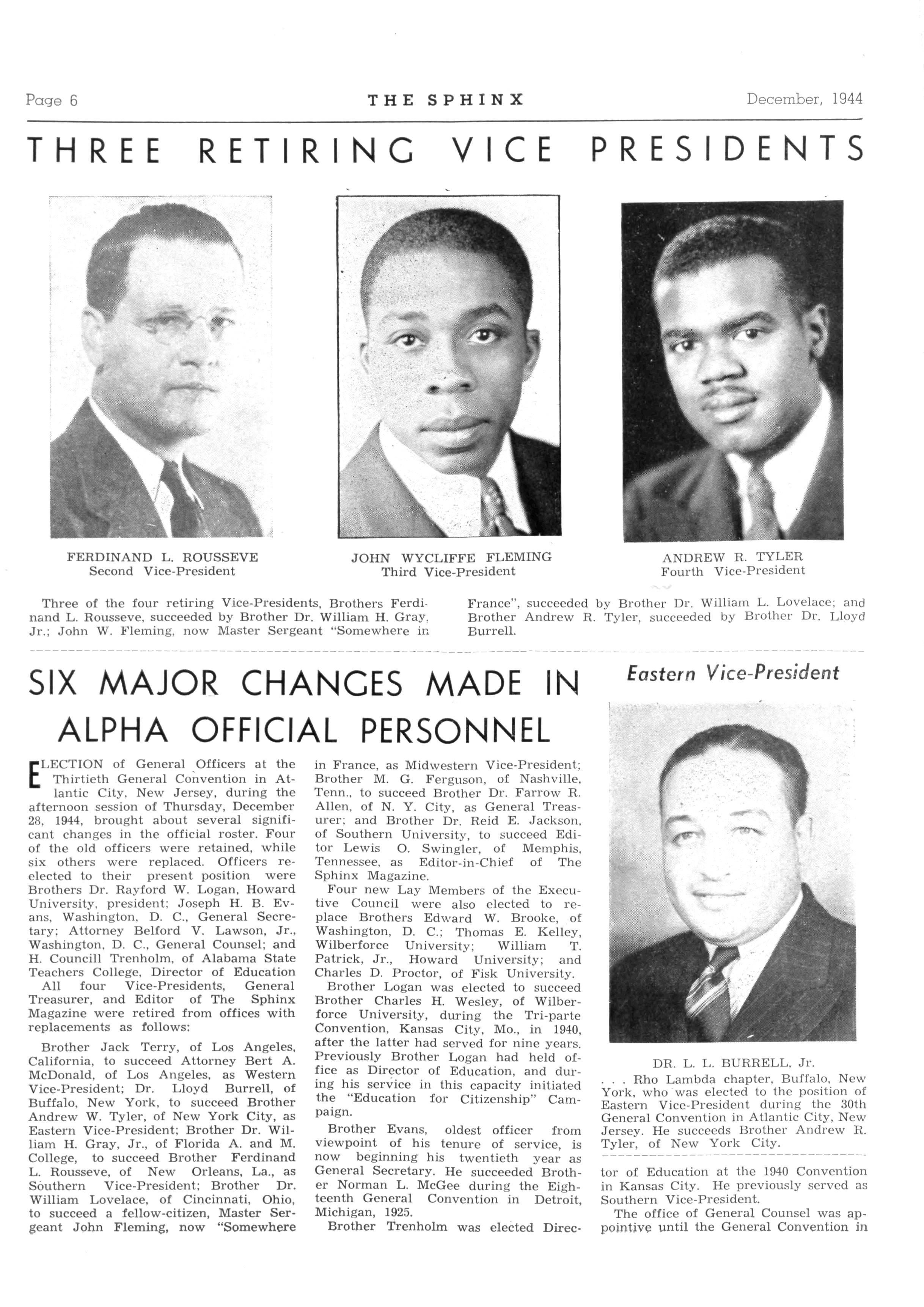 SOUTHERN JURISDICTION—Ferdinand L. Rousseve, Vice-President; Region:—Louisiana, Arkansas, Miss., Southern Vice-President In charge; Harold Lucien, Dillard University, New Orleans, La., Undergraduate Director; C M Roulhac, Jr., 810 E McLemore, Memphis, Tenn.; Andrew J Lewis II, 525 Tatnall St., Atlanta, Ga.t