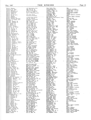 SPHINX New York City Birmingham, Ala. Austin, Texas Jefferson City, Mo. Marianna, Fla. Tulsa 6, Okla. Columbus, Ohio Ambridge, Pa. Washington. D. C. Harrisonburg, Pa. Elm Haven, New Haven, Conn, Chester, Pa. Langston. Okla. Syracuse, N. Y. New Orleans, La. Dayton. Ohio Denver, Colo. Chicago, 111. Hampton, Va. Los Angeles: 7, Calif. Jefferson City, Mo. Atlanta, Ga. Nashville. Tenn. Rockville, Maryland Baton Rouge, La. Tulsa 6, Okla. Ardmore. Oklahoma Detroit 1. Mich. Atlanta, Ga. Atlanta, Ga. Omaha, Neb. Detroit 26. Mich. Omaha 10, Neb. Toledo 2, Ohio Jackson, Tenn. Indianapolis, Ind. Baltimore. Md. Berkeley, Calif. Columbus 3, Ohio Memphis, Tenn. Pennsylvania Nashville, Tenn. Talladega, Ala. Detroit, Mich. New Orleans, La. New Orleans. La. New Orleans. La. Cleveland 6. Ohio Niagara Falls. N. Y. Cincinnati. Ohio Wilberforce, Ohio Beckley, W. Va. Durham, N. C. Chicago, 111. Memphis. Tenn. Memphis. Tenn. Institute, W. Va. Birmingham. Ala. Charleston, S. C. Humphrey. Ark. Chicago, 111. Georgia Columbus. Ohio Berkeley. Calif. Huntington. W. V. Chicago. III. Cincinnati. Ohio Montgomery, Ala. Chicago. 111. Madison, Wisconsin Bluefield. W. Va. Chicago 15. Til. Bluefield. Va Cincinnati, Ohio Los Angeles 7, Calif. Cleveland 8. Ohio Roanoke, Va. Detroit, Mich. Atlanta, Ga. Brooklyn. N Y. Detroit, Mich. Columbus. Ohio Nashville, Tenn. Knoxville. Tenn. Atlanta, Ga. Richmond. Va. Chicago, HI. Houston 4, Texas Atlanta. Ga. Chester, Pa. Richmond, Va. Atlanta, Ga. New York City Nashville 8. Tenn. Dover, Delaware Iowa City, Iowa Cincinnati, Ohio Louisville, Tenn. Little Rock, Ark. Xenla, Ohio Bessemer City, N. C. Pennsylvania Philadelphia. Pa. Philadelphia. Pa. Newark. N. J. Akron 4. Ohio New York City Oakland. Calif. Kansas City. Kansas Toledo. Ohio Atlantic City, N. J.Columbia. S. C. Los Angeles, Calif.