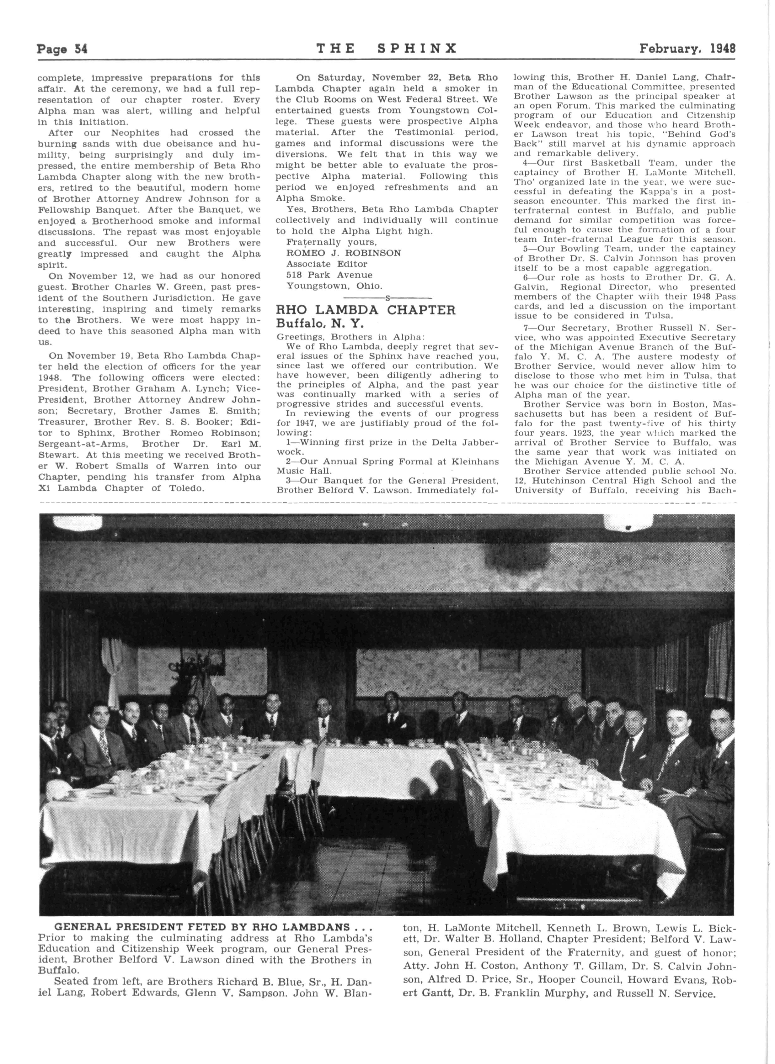 BETA RHOLAMBDA—Youngstown, Ohio; President Gra5n=m £yn , C c-. 52£ Kenmor e Ave.; Secretary, James E Smith 2953 Karl St. Youngstown Ohio
