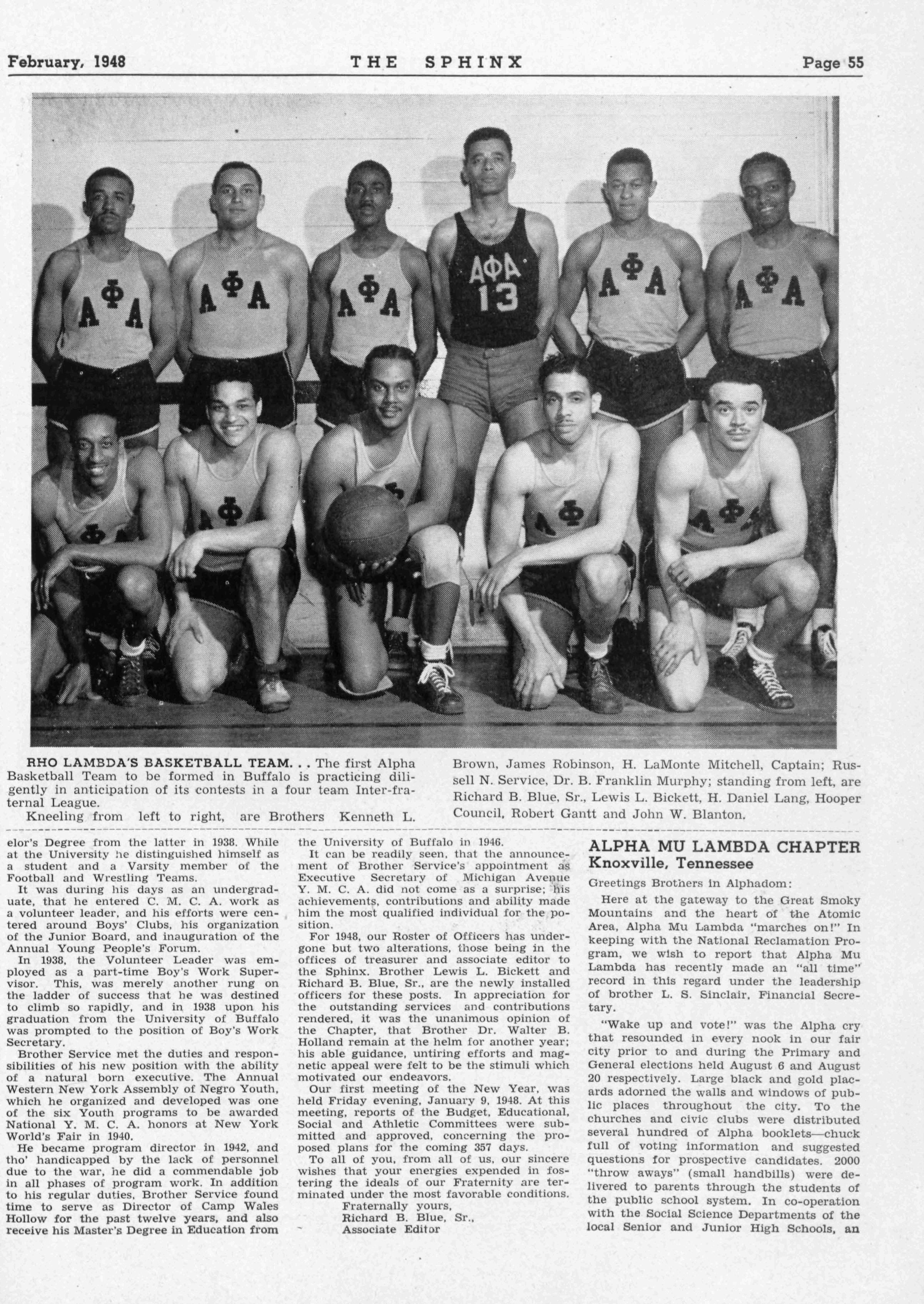 ALPHA MU LAMBDA—Knoxville, Tenn.; President, OtU T Hogue 217 South Chestnut, Knoxville, Tenn.; Secretary, J Claude Woods, Jr., 22J Deadrick Ave.,Knoxville, Tenn