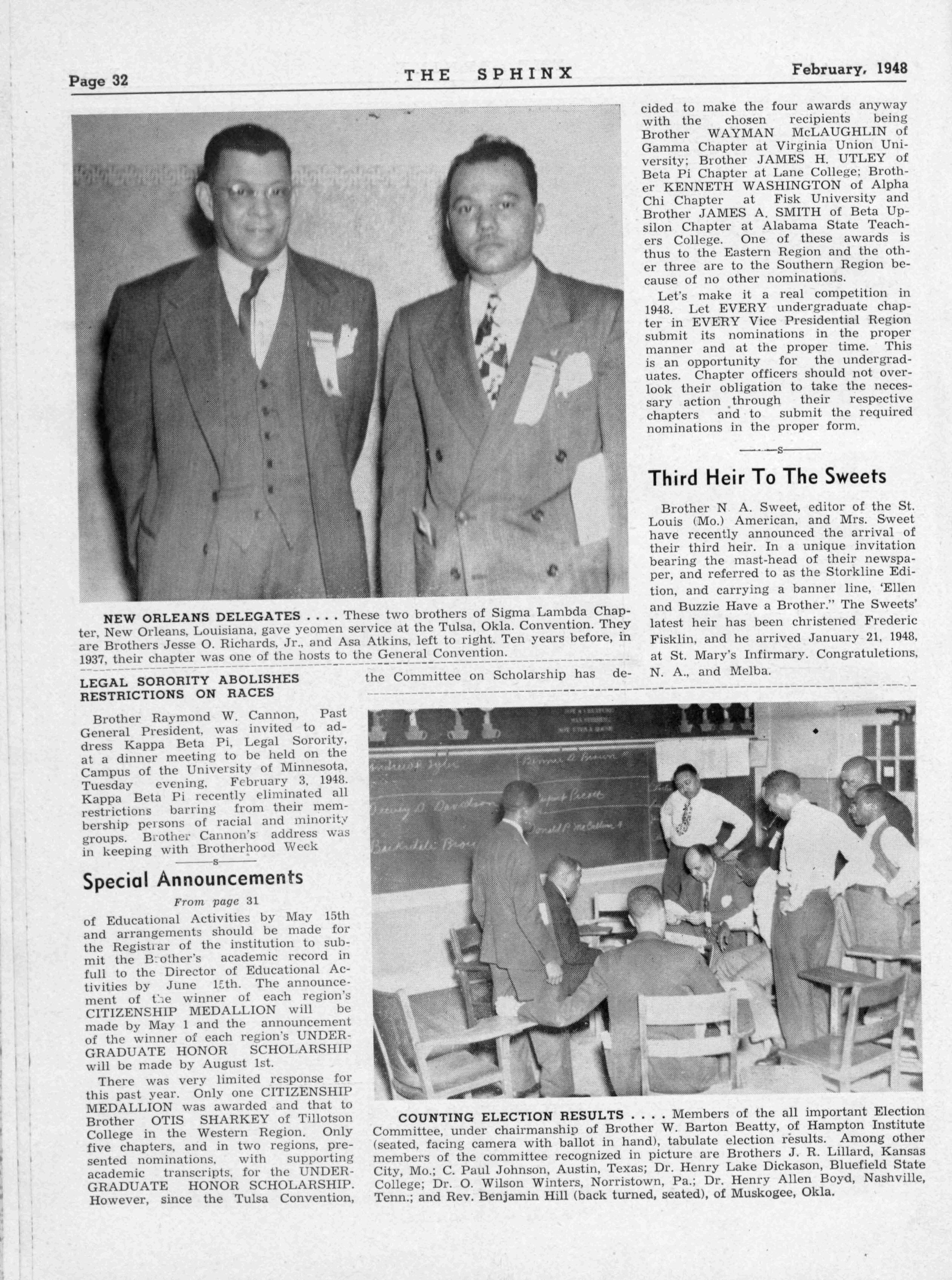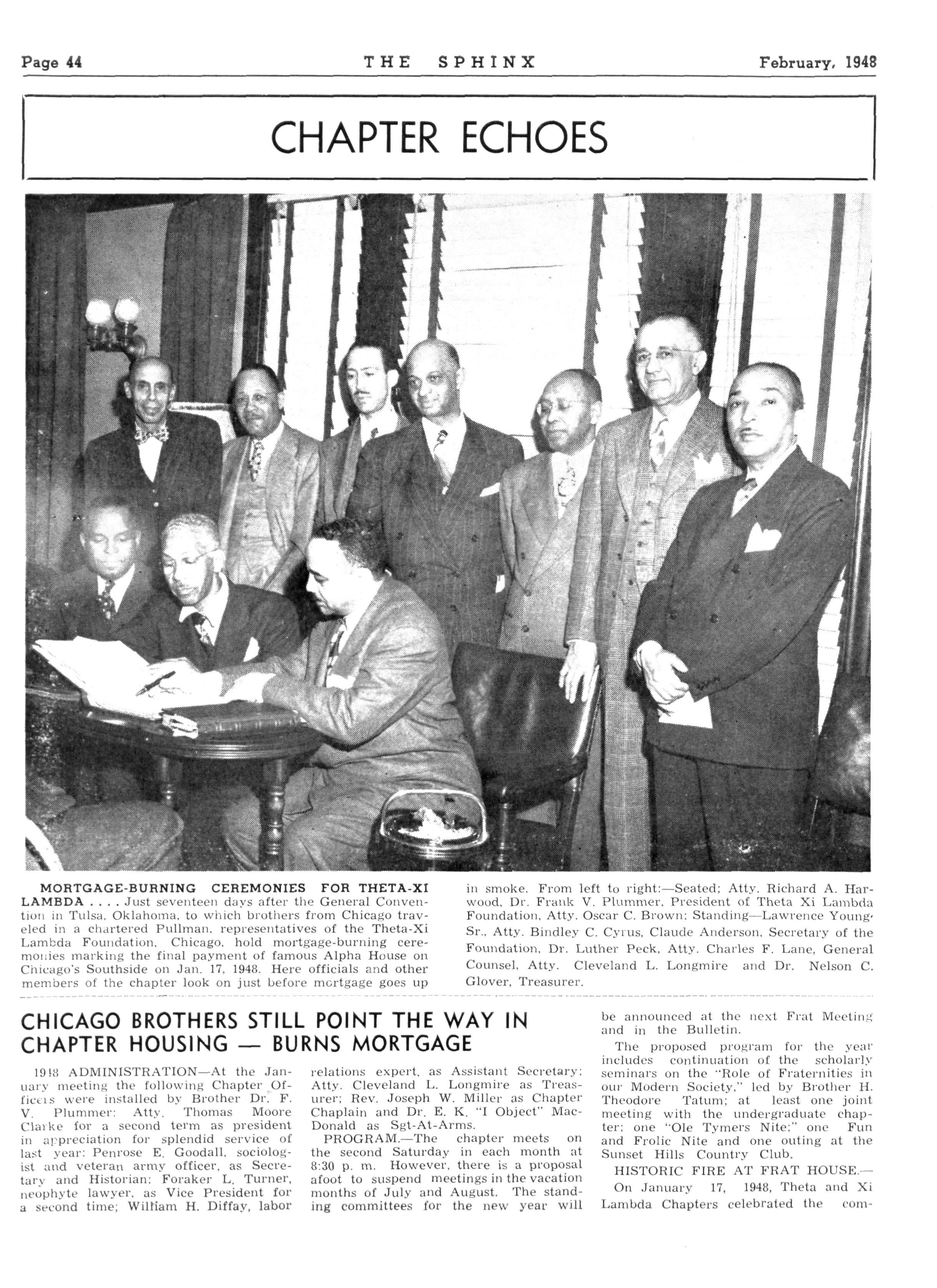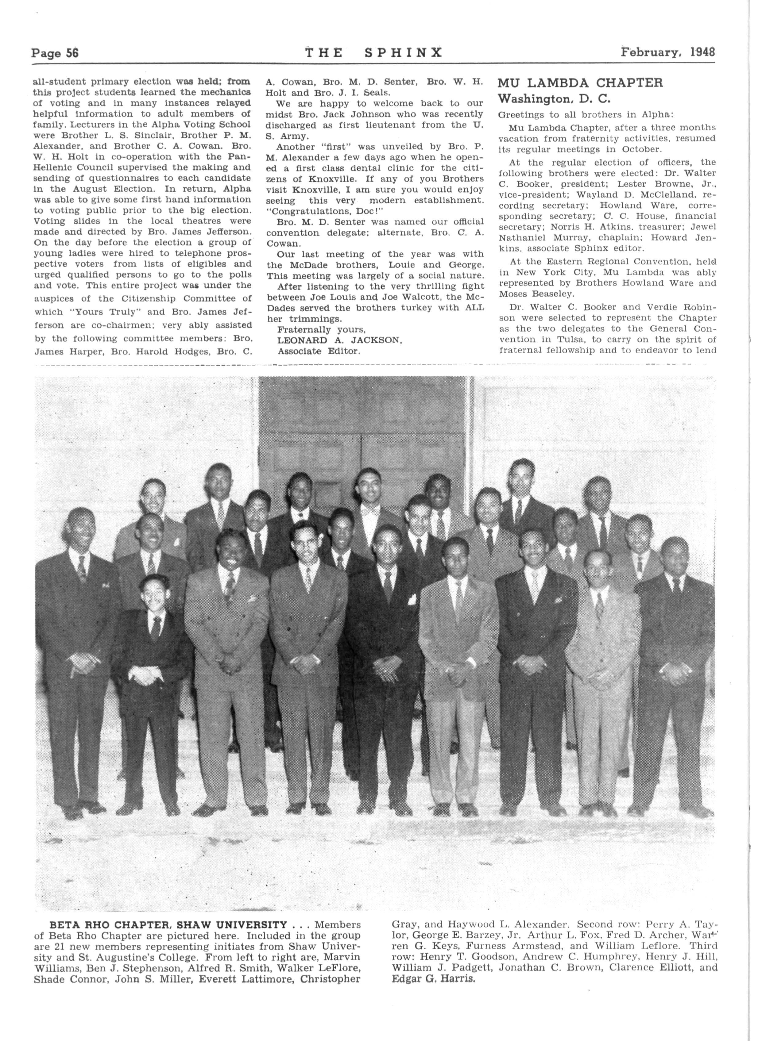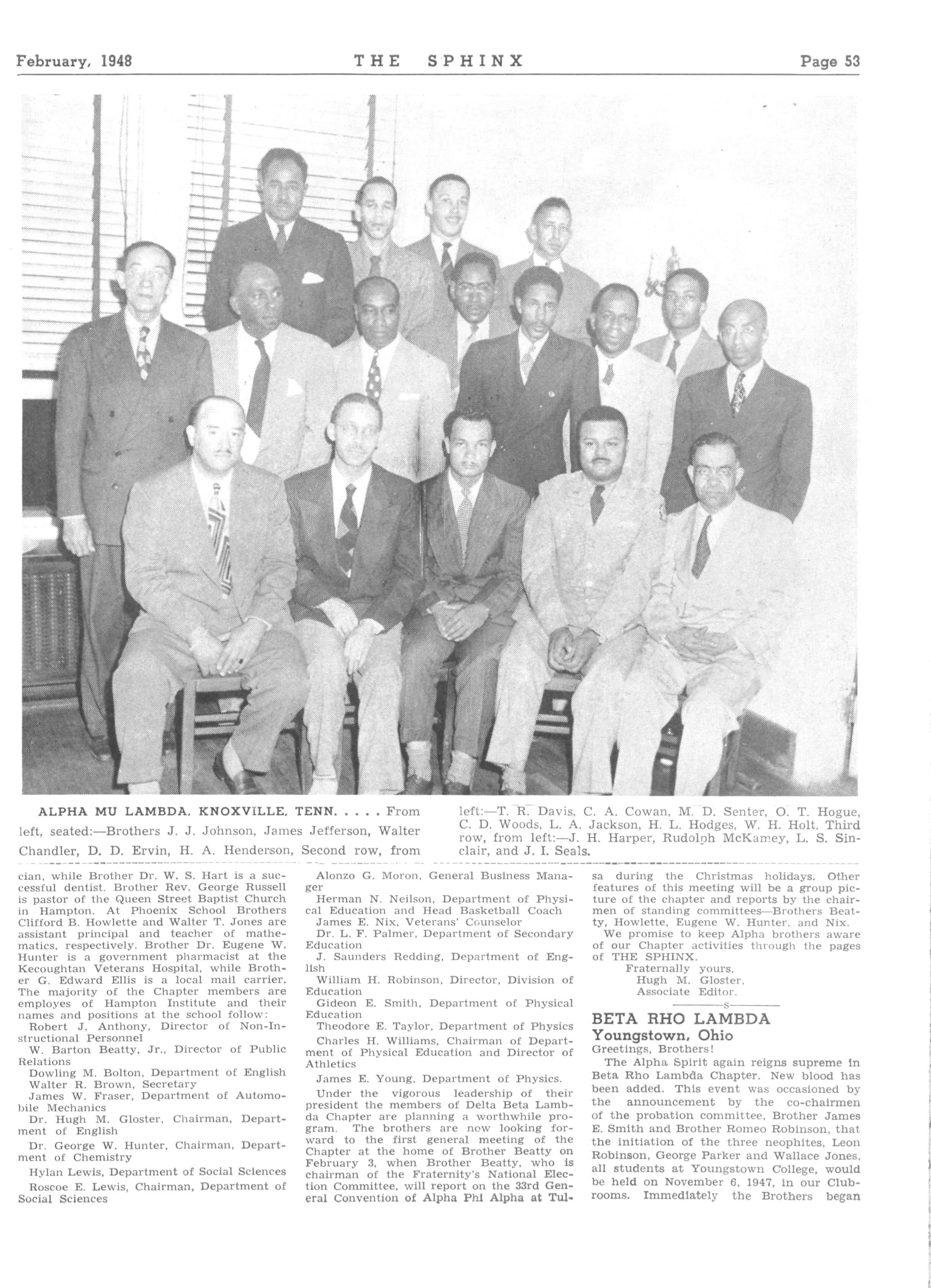 BETA ZETA LAMBDA—Jefferson City, Missouri; President, G Robert Cotton Lincoln University, Jefferson City, Missouri; Secretary, H H Hartshorn, Lincoln University, Jefferson City, Missouri