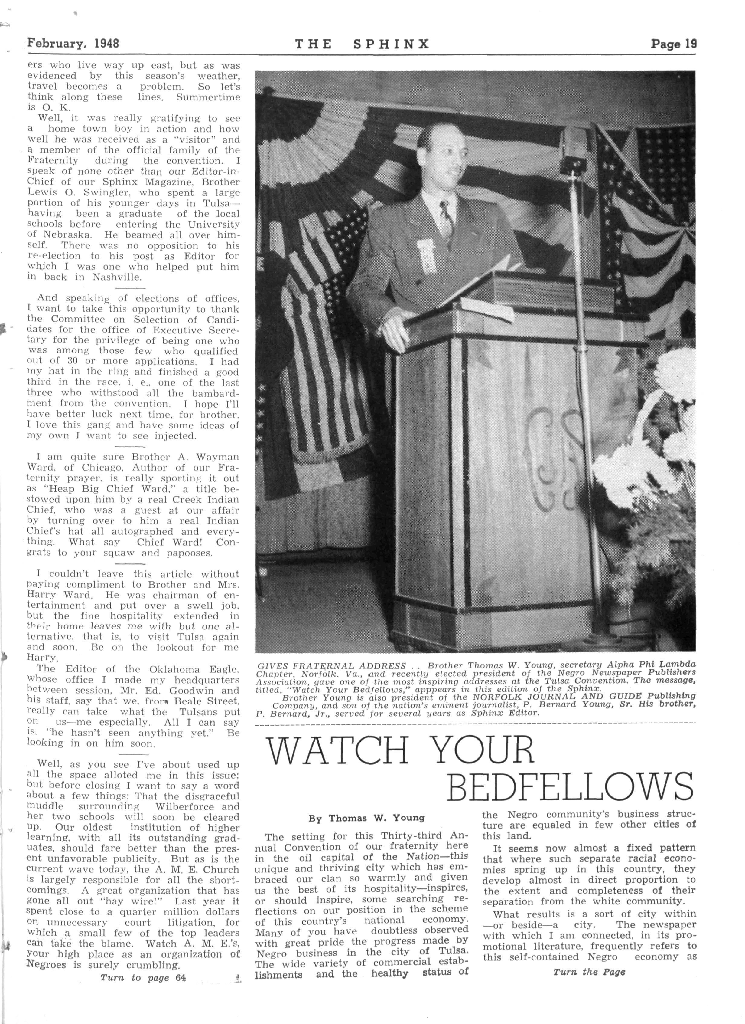BETA ETA LAMBDA—Oklahoma City, Okla.; President, R P Perry, 916 N E 7th St. Oklahoma Citv Okla.; Secretary, Otis A Freeman, 531 N Kelham St., Oklahoma City 4 Okla